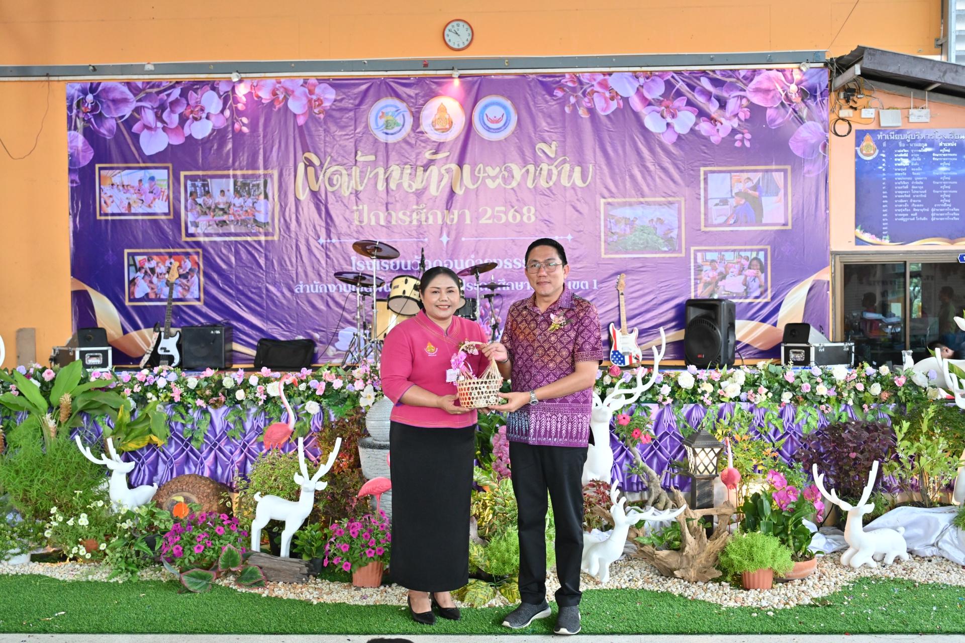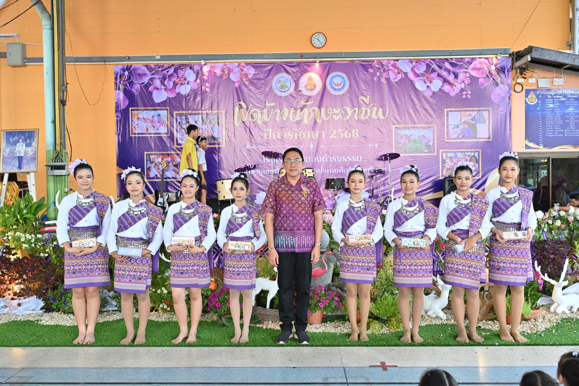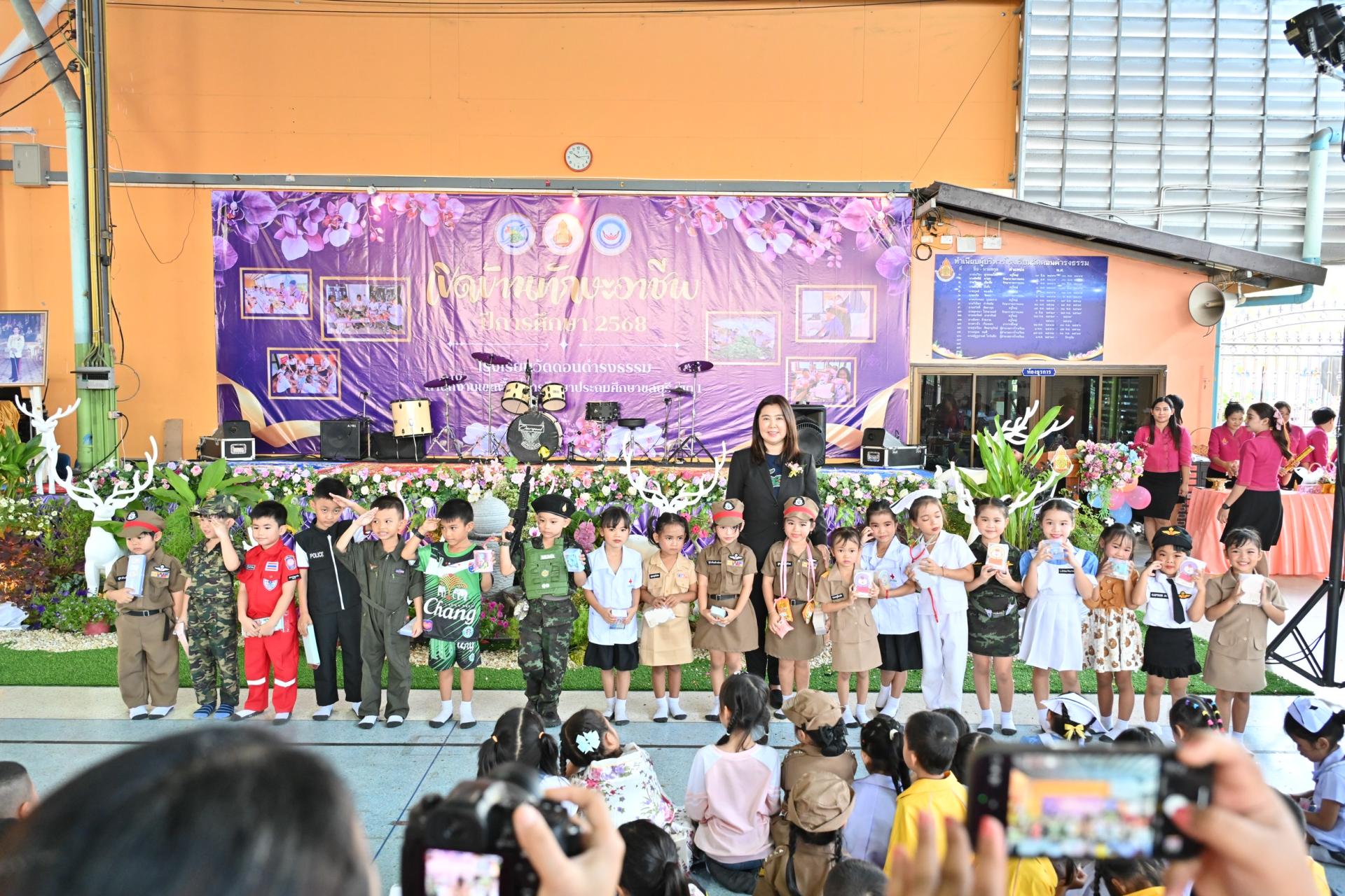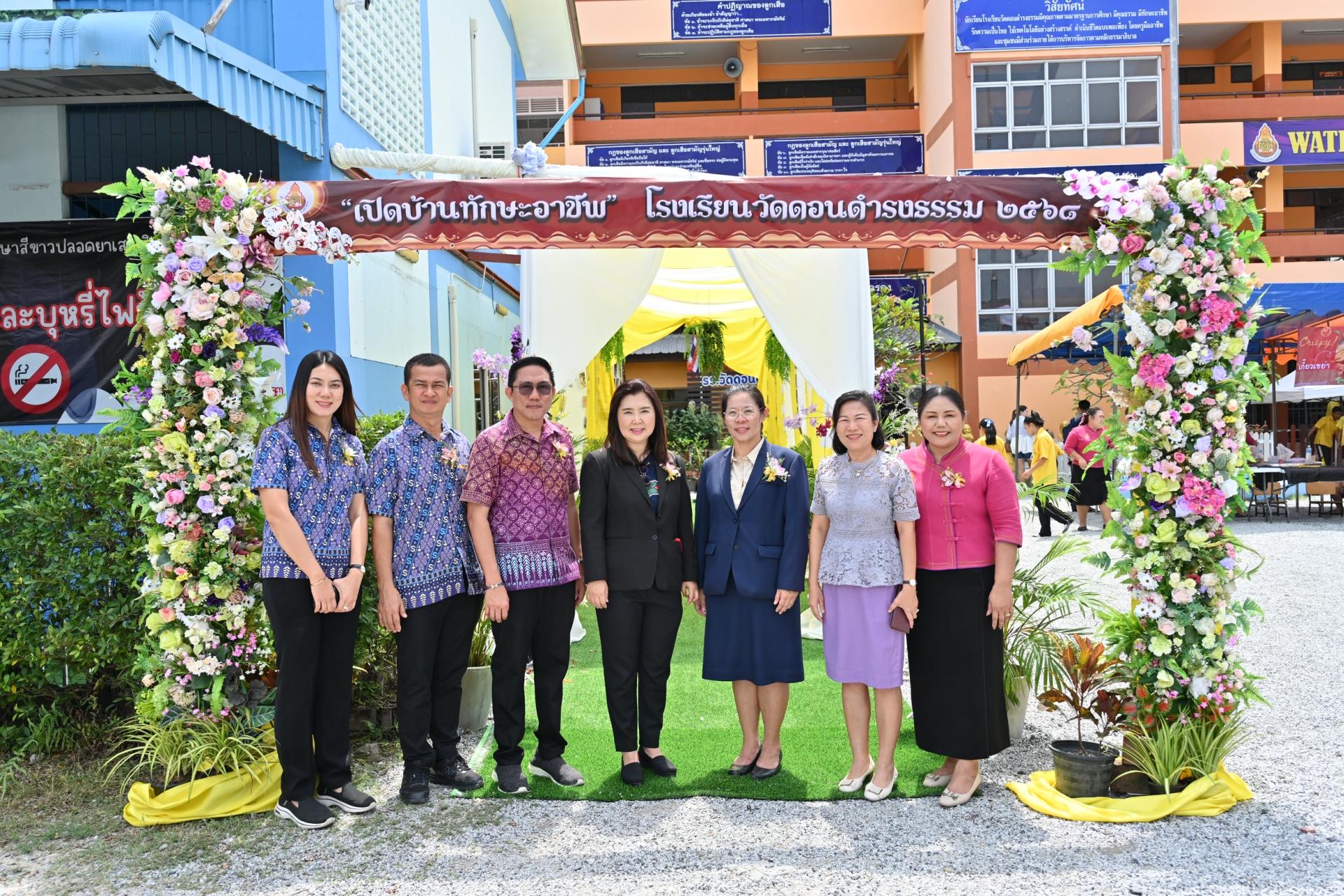 นายไมตรี ประเสริฐ นายกเทศมนตรีเมืองดอนหัวฬ่อ พร้อมด้วยนายวิวัฒนชัย บัวรุ่งสวัสดิ์ เลขานุการนายกเทศมนตรี สมาชิกสภาเทศบาล เข้าร่วมกิจกรรมเปิดบ้านทักษะอาชีพ โรงเรียนวัดดอนดำรงธรรม ประจำปีการศึกษา 2568 โดยมี ดร.ดารณี กีรติปกรณ์ รองผู้อำนวยการสำนักงานเขตพื้นที่การศึกษาประถมศึกษาชลบุรี เขต 1 เป็นประธานในพิธี นางณัฏฐกานต์ โกจันทึก ผู้อำนวยการโรงเรียนวัดดอนดำรงธรรม กล่าวรายงาน ณ อาคารอเนกประสงค์ โรงเรียนวัดดอนดำรงธรรม