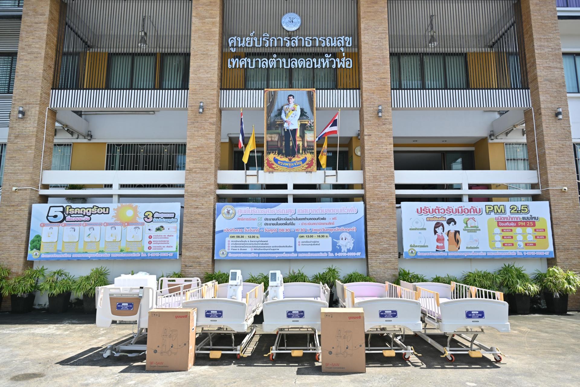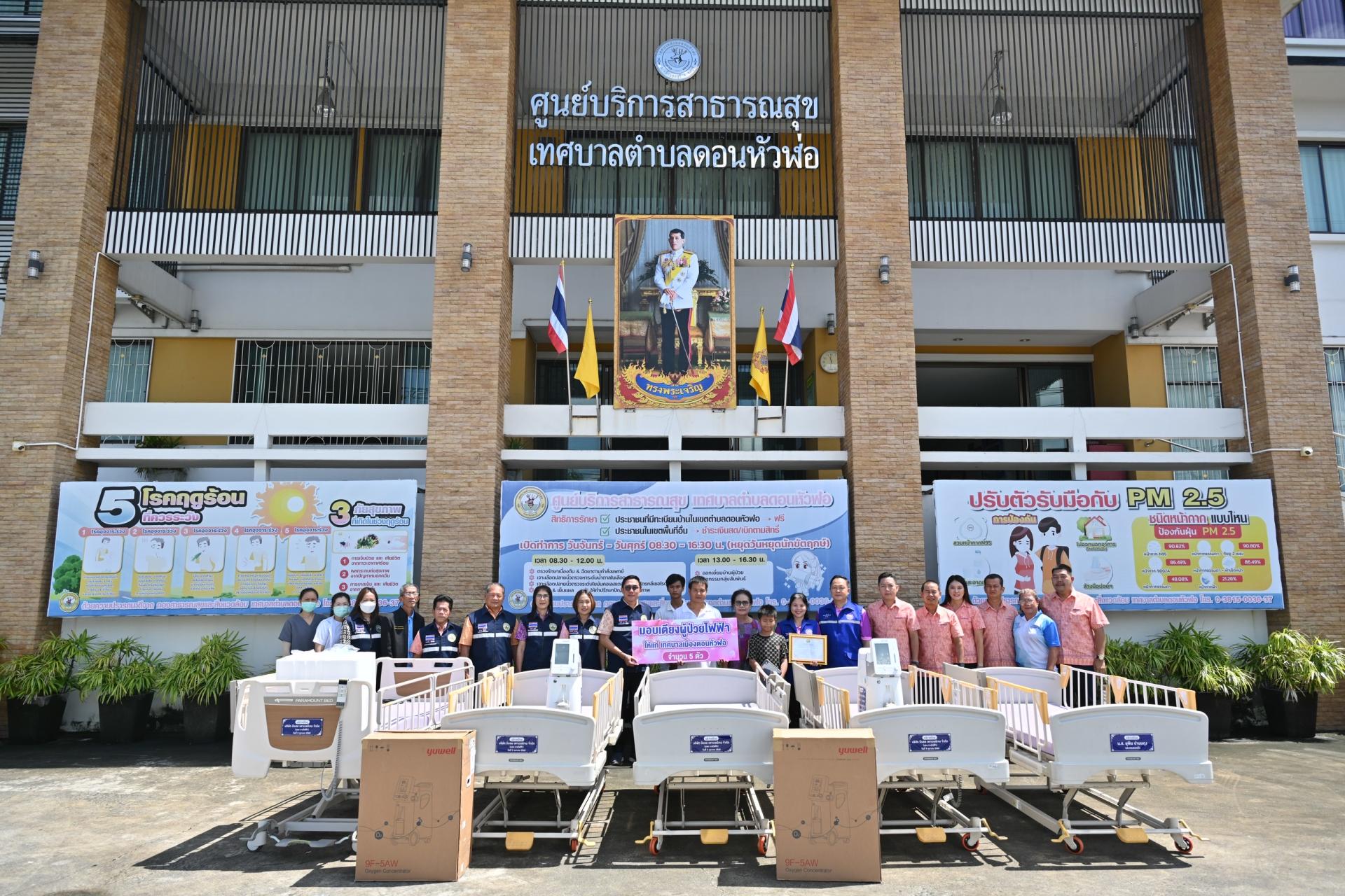 เทศบาลเมืองดอนหัวฬ่อ นำโดย นายไมตรี ประเสริฐ นายกเทศมนตรีเมืองดอนหัวฬ่อ พร้อมด้วยคณะผู้บริหาร สมาชิกสภาเทศบาล ปลัดเทศบาล ผู้อำนวยการกองสาธารณสุขและสิ่งแวดล้อม และผู้อำนวยการโรงพยาบาลส่งเสริมสุขภาพตำบลดอนหัวฬ่อ ร่วมรับมอบ เตียงผู้ป่วยไฟฟ้า จำนวน 5 เตียง และถังออกซิเจน จำนวน 2 ถัง จาก นายปิยะพงษ์ ราชสาร และครอบครัว เพื่อมอบให้แก่ ศูนย์บริการสาธารณสุขเทศบาลเมืองดอนหัวฬ่อ
