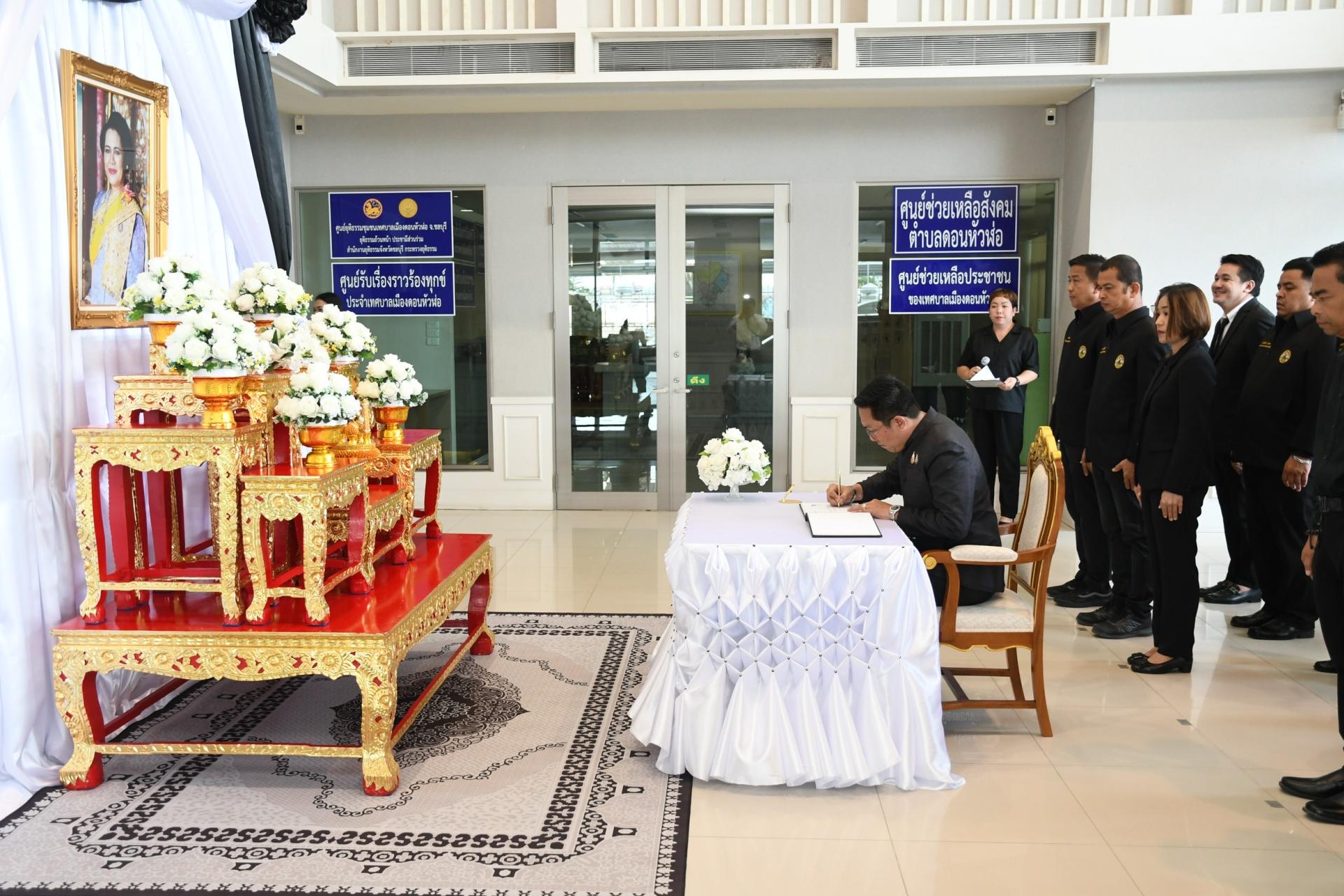 เทศบาลเมืองดอนหัวฬ่อ จัดพิธีน้อมรำลึกในพระมหากรุณาธิคุณ และลงนามถวายความอาลัย แด่ สมเด็จพระนางเจ้าสิริกิติ์ พระบรมราชินีนาถ พระบรมราชชนนีพันปีหลวง นำโดย นายไมตรี ประเสริฐ นายกเทศมนตรีเมืองดอนหัวฬ่อ เป็นประธานในพิธีฯ พร้อมด้วย คณะผู้บริหาร สมาชิกสภาเทศบาล ปลัดเทศบาล รองปลัดเทศบาล หัวหน้าส่วนราชการ และพนักงานเทศบาลเมืองดอนหัวฬ่อ เข้าร่วมพิธีอย่างพร้อมเพรียง ณ อาคารสำนักงานเทศบาลเมืองดอนหัวฬ่อ ชั้น 1