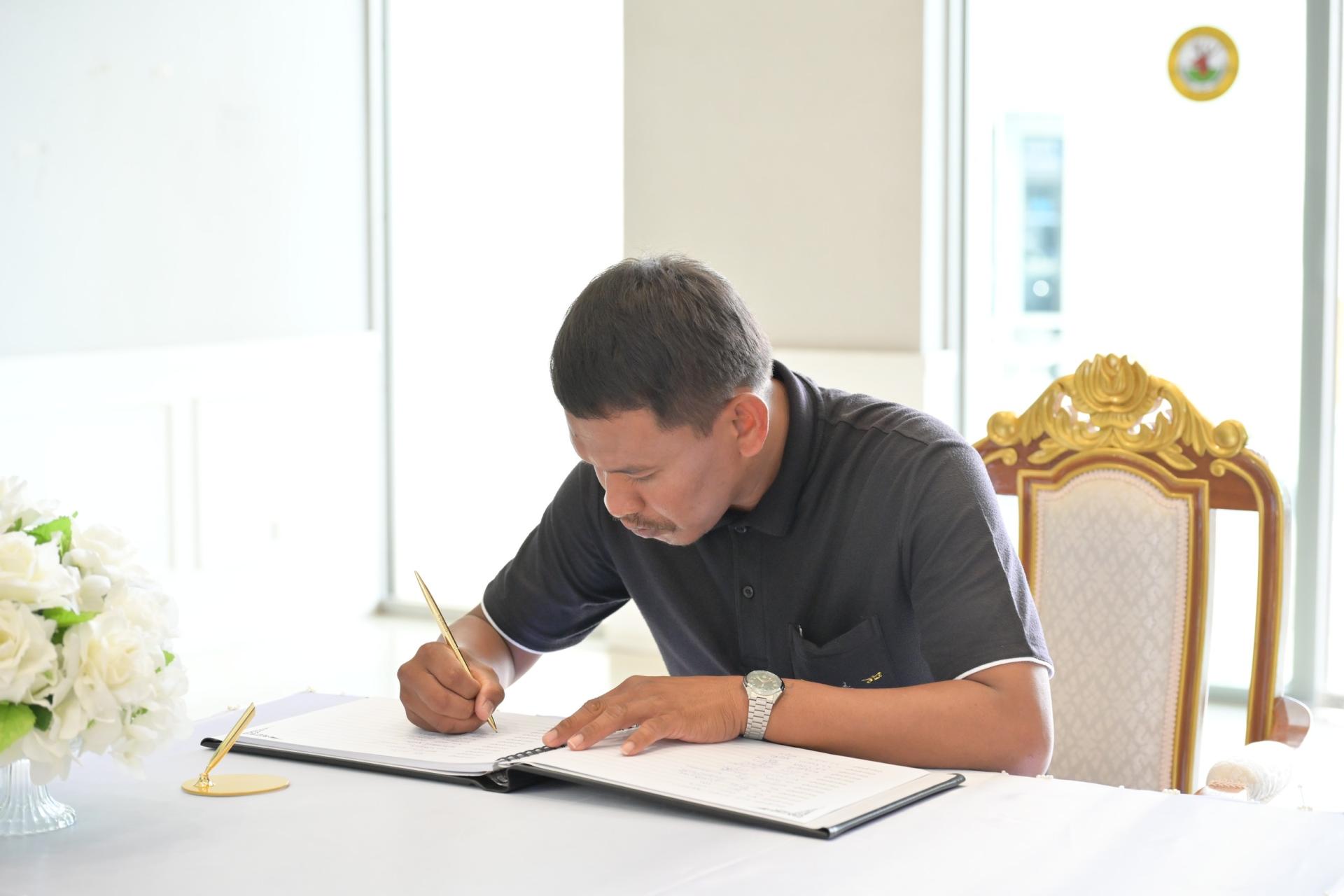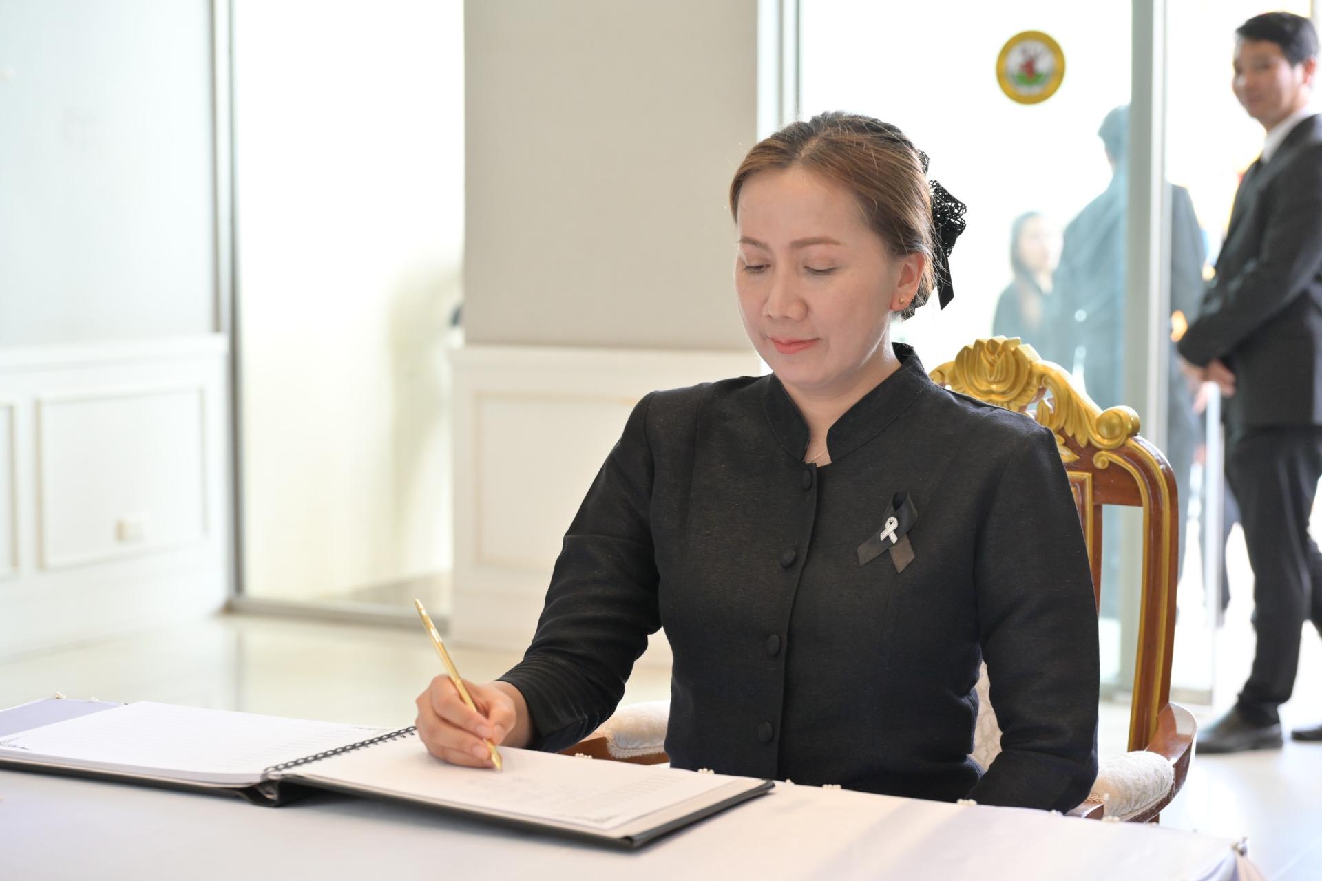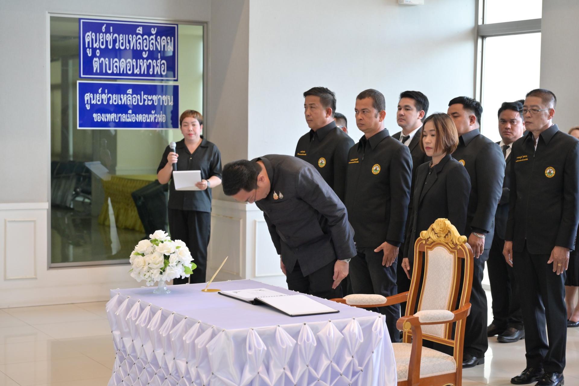 ❖ ในโอกาสนี้ นายไมตรี ประเสริฐ นายกเทศมนตรีเมืองดอนหัวฬ่อ ได้นำผู้ร่วมพิธีทั้งหมด ยืนสงบนิ่งเป็นเวลา 93 วินาที จากนั้นได้ร่วมกันลงนามถวายความอาลัยแด่สมเด็จพระนางเจ้าสิริกิติ์ พระบรมราชินีนาถ พระบรมราชชนนีพันปีหลวง เพื่อน้อมรำลึกในพระมหากรุณาธิคุณอันหาที่สุดมิได้