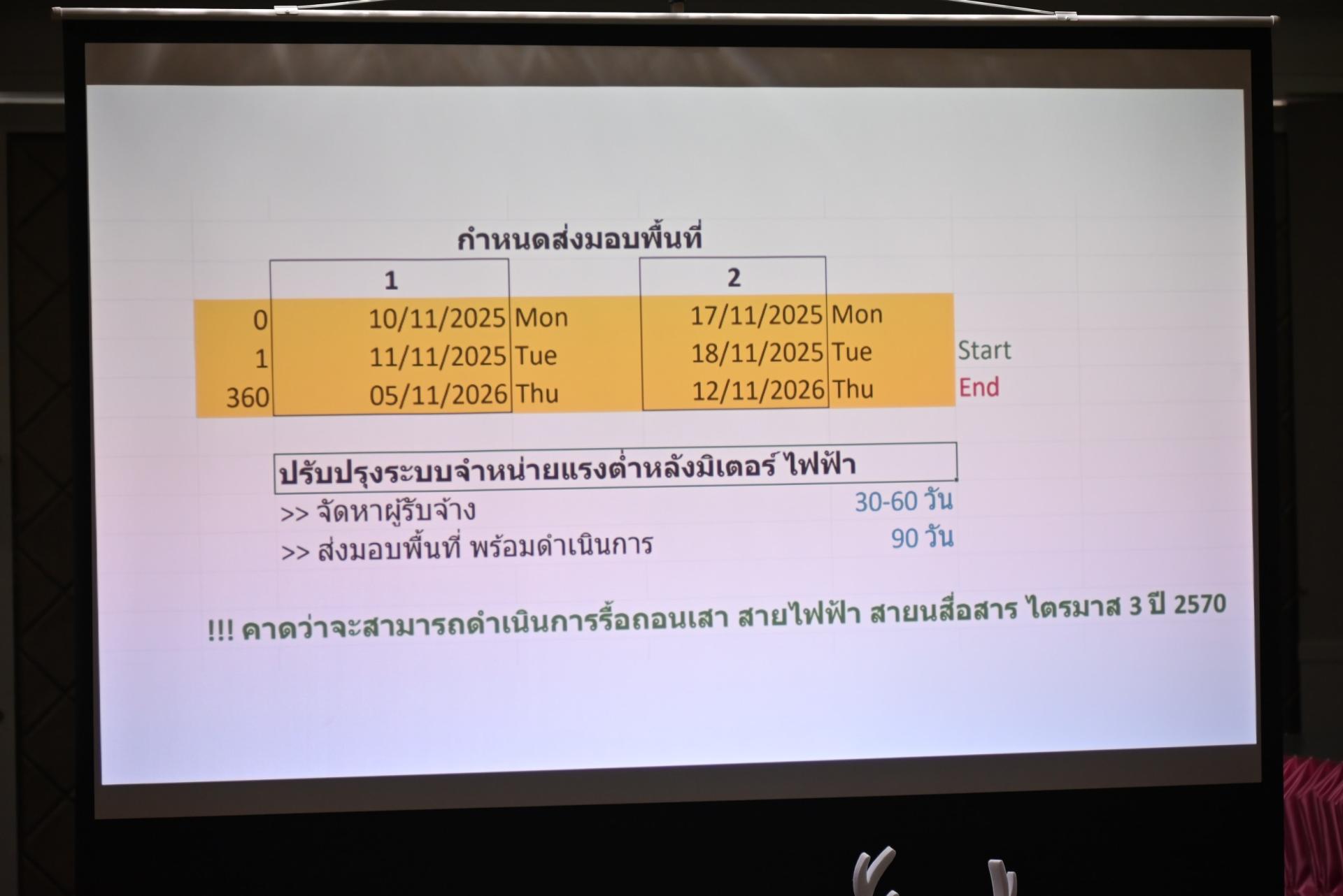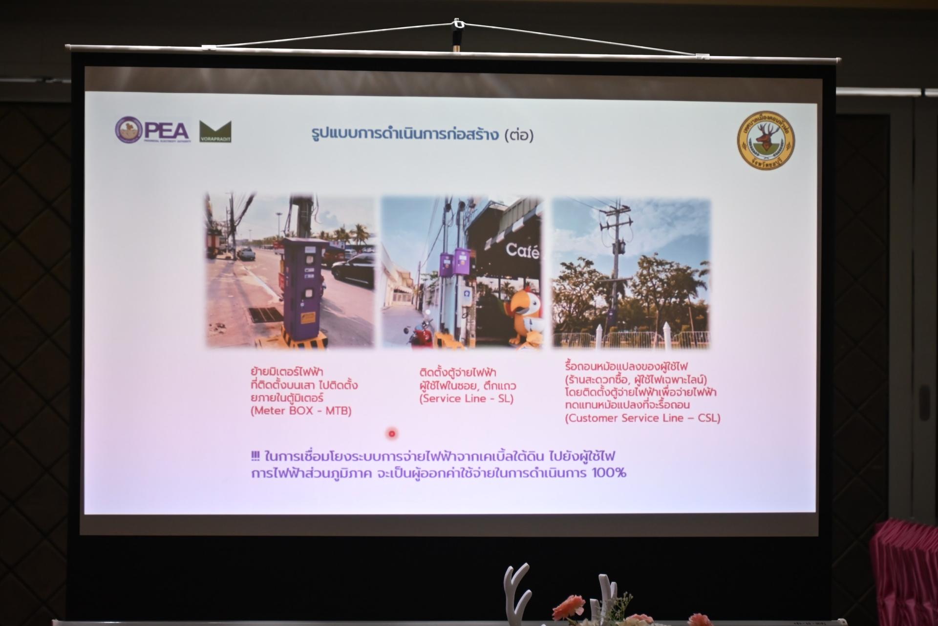 การไฟฟ้าส่วนภูมิภาคเขต 2 (ภาคกลาง) จังหวัดชลบุรี ได้จัดการประชุมชี้แจงแผนการดำเนินการเพื่อเตรียมส่งมอบพื้นที่งานก่อสร้างเคเบิลใต้ดิน บริเวณถนนดอนหัวฬ่อ - บ้านเก่า (บ้านเก่า 5) ระยะที่ 1 และระยะที่ 2 โดยมี นายไมตรี ประเสริฐ นายกเทศมนตรีเมืองดอนหัวฬ่อ เป็นประธานในการประชุม พร้อมด้วยปลัดเทศบาล ผู้อำนวยการกองช่าง และมีหน่วยงานที่เกี่ยวข้องเข้าร่วม ดังนี้