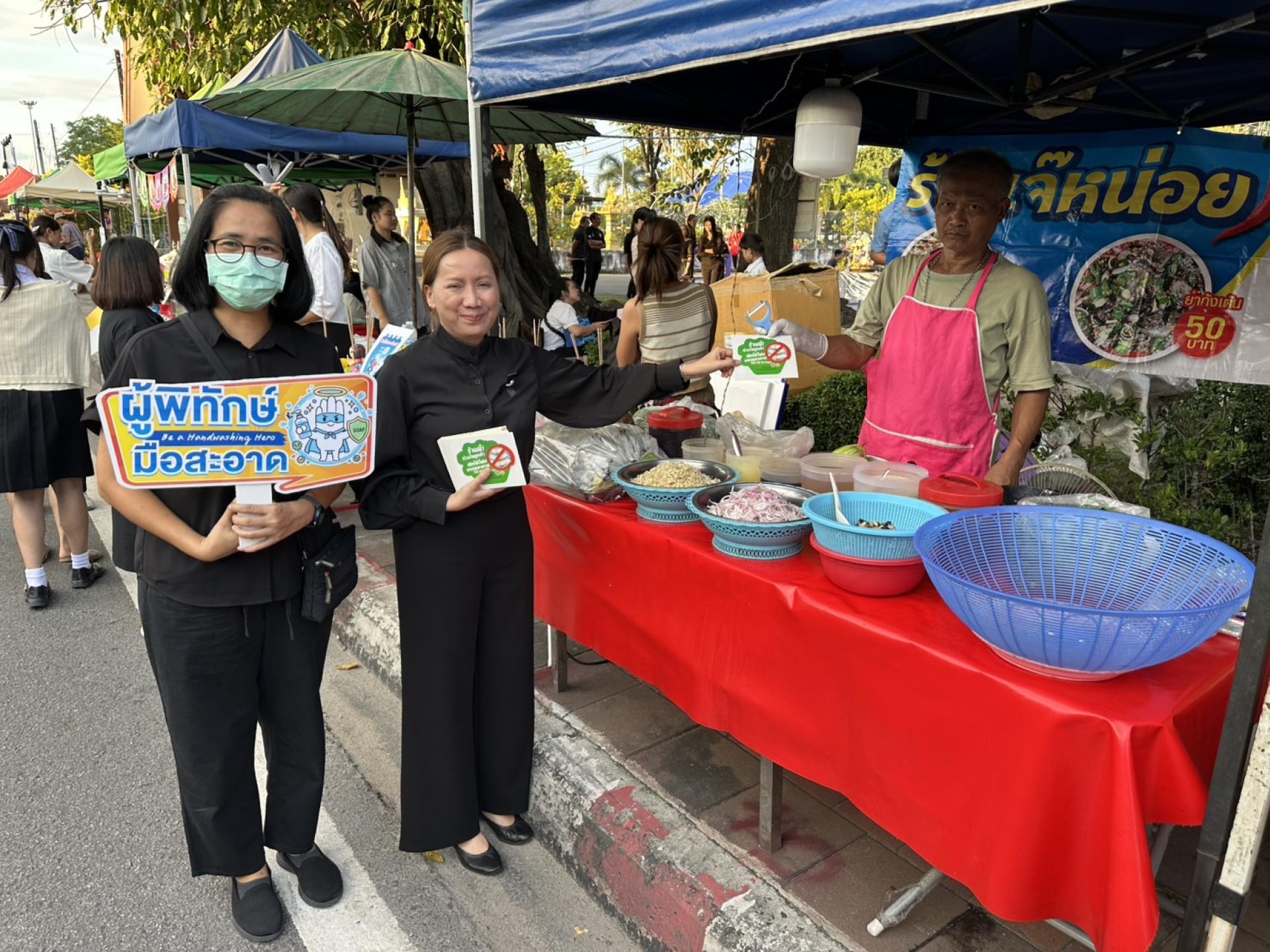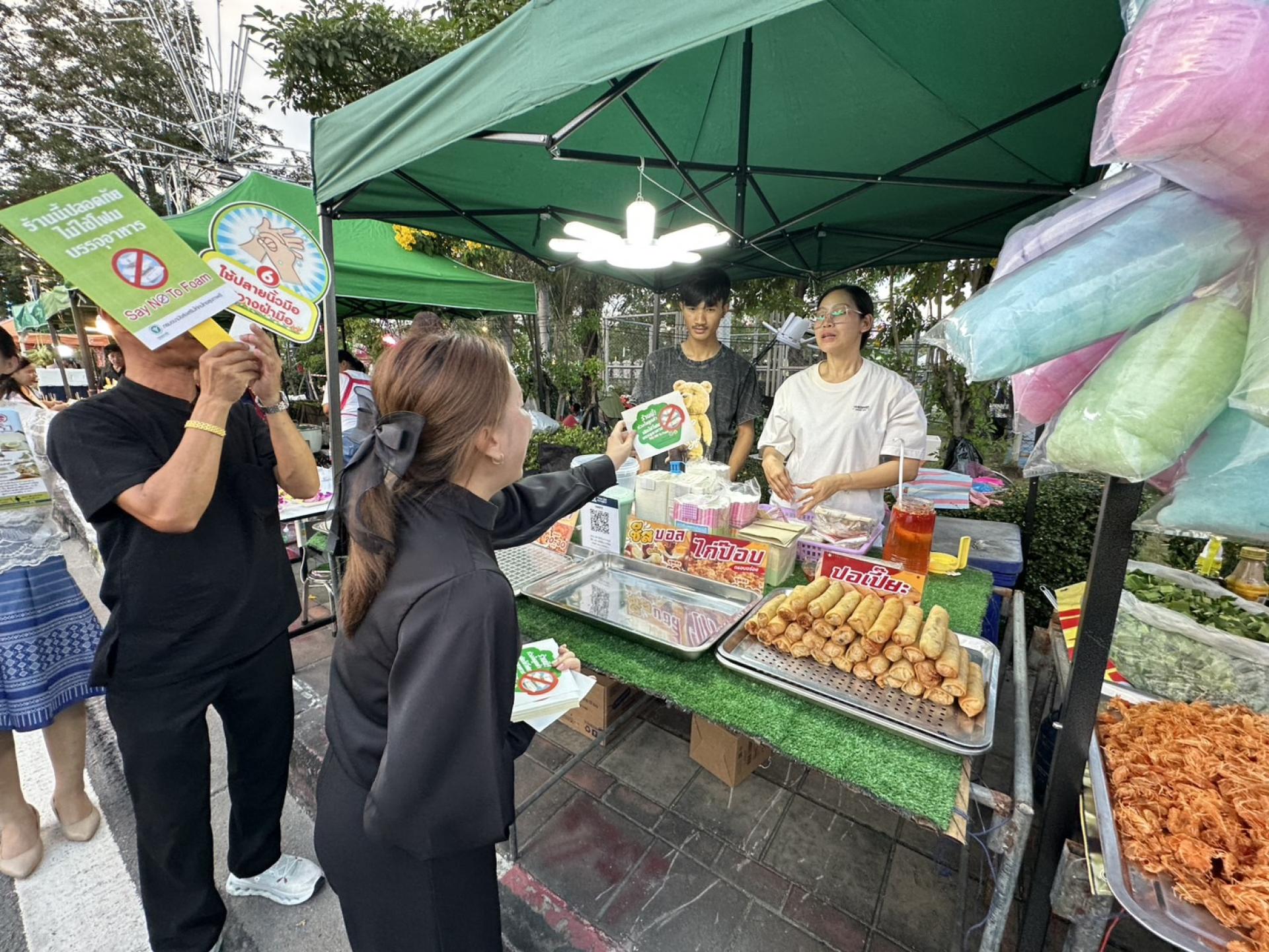 เทศบาลเมืองดอนหัวฬ่อ โดยกองสาธารณสุขและสิ่งแวดล้อม นำโดย ผู้อำนวยการกองสาธารณสุขและสิ่งแวดล้อม ดำเนินการประชาสัมพันธ์ สำหรับร้านค้าร้านอาหาร "ร้านนี้ปลอดภัย ไม่ใช้โฟมบรรจุอาหาร“ ให้กับร้านค้าภายในงาน สืบสานประเพณีลอยกระทง ประจำปี พ.ศ. 2568 ณ สวนสุขภาพหมู่ที่ 4