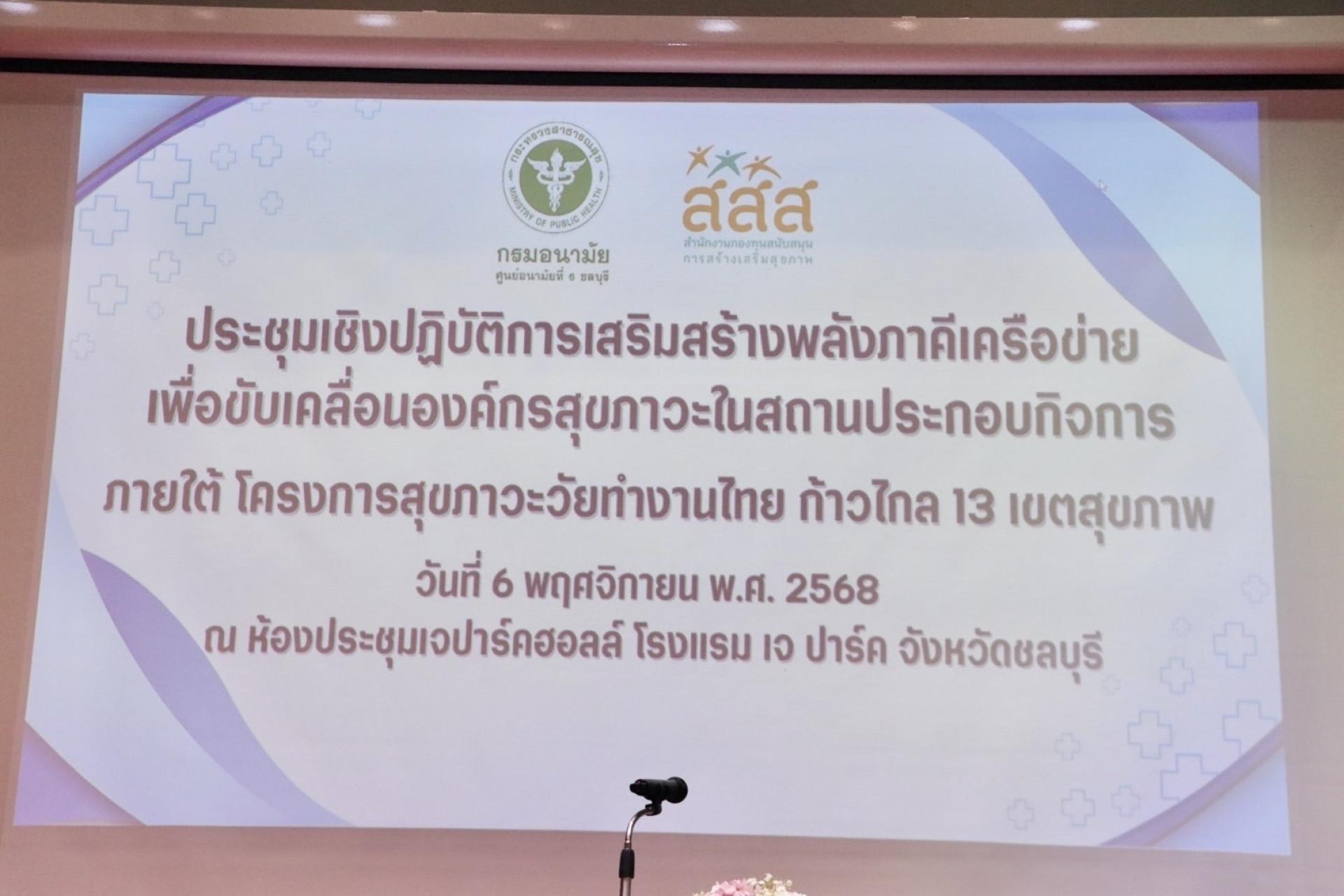 เจ้าหน้าที่กองสาธารณสุขและสิ่งแวดล้อม เข้าร่วมประชุมเชิงปฏิบัติการของภาคีเครือข่าย เพื่อขับเคลื่อนองค์กรในสถานประกอบกิจการภายใต้ โครงการสุขภาวะวัยทำงานไทย ก้าวไกล 13 เขตสุขภาพ ณ โรงแรมเจปาร์ค จังหวัดชลบุรี