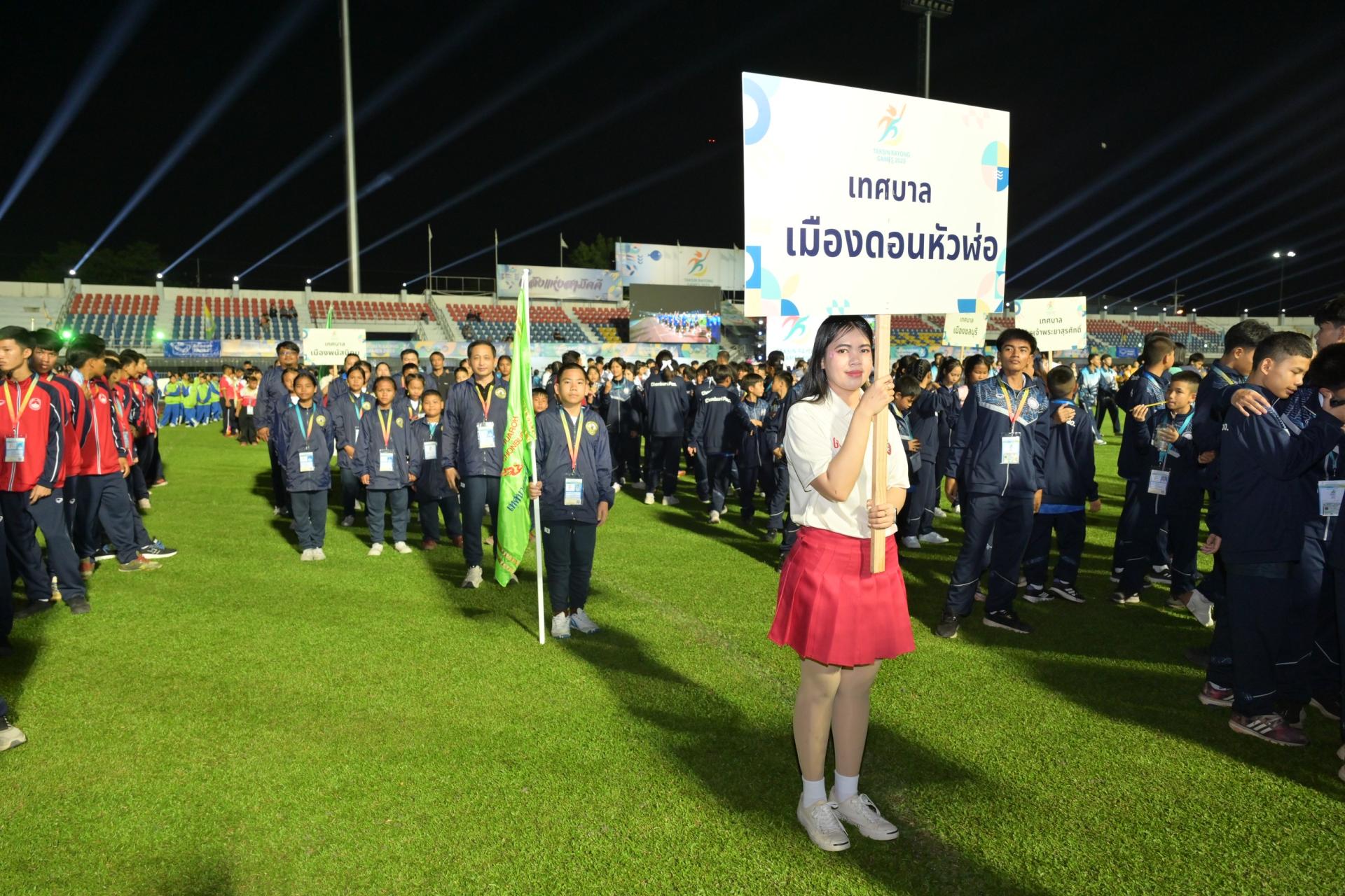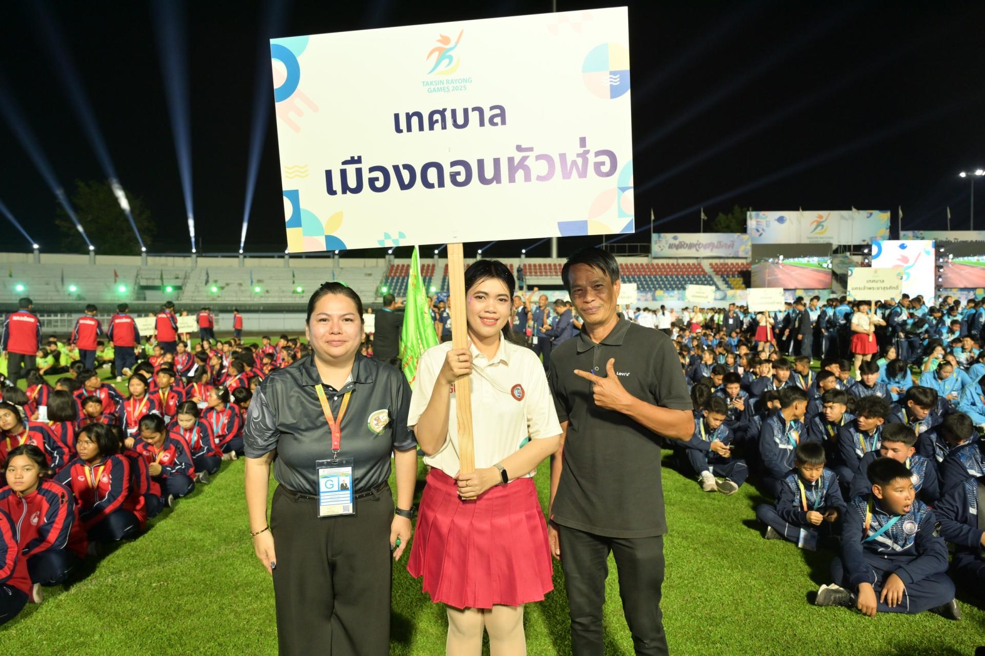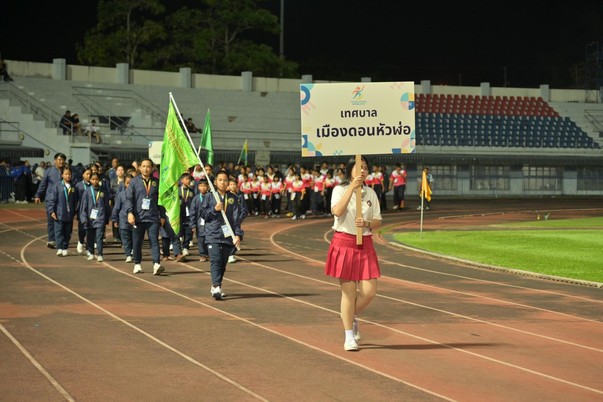 เทศบาลเมืองดอนหัวฬ่อ นำโดยนางสาวสุพิชฌาย์ ปานผดุง รองนายกเทศมนตรีเมืองดอนหัวฬ่อ พร้อมด้วยคณะผู้บริหาร คณะครู และนักเรียนเข้าร่วมพิธีเปิดการแข่งขันกีฬานักเรียนองค์กรปกครองส่วนท้องถิ่นแห่งประเทศไทย ครั้งที่ 40 ประจำปีงบประมาณ พ.ศ. 2569 ระดับภาคตะวันออก “ตากสินระยองเกมส์” ณ สนามกีฬากลางจังหวัดระยอง