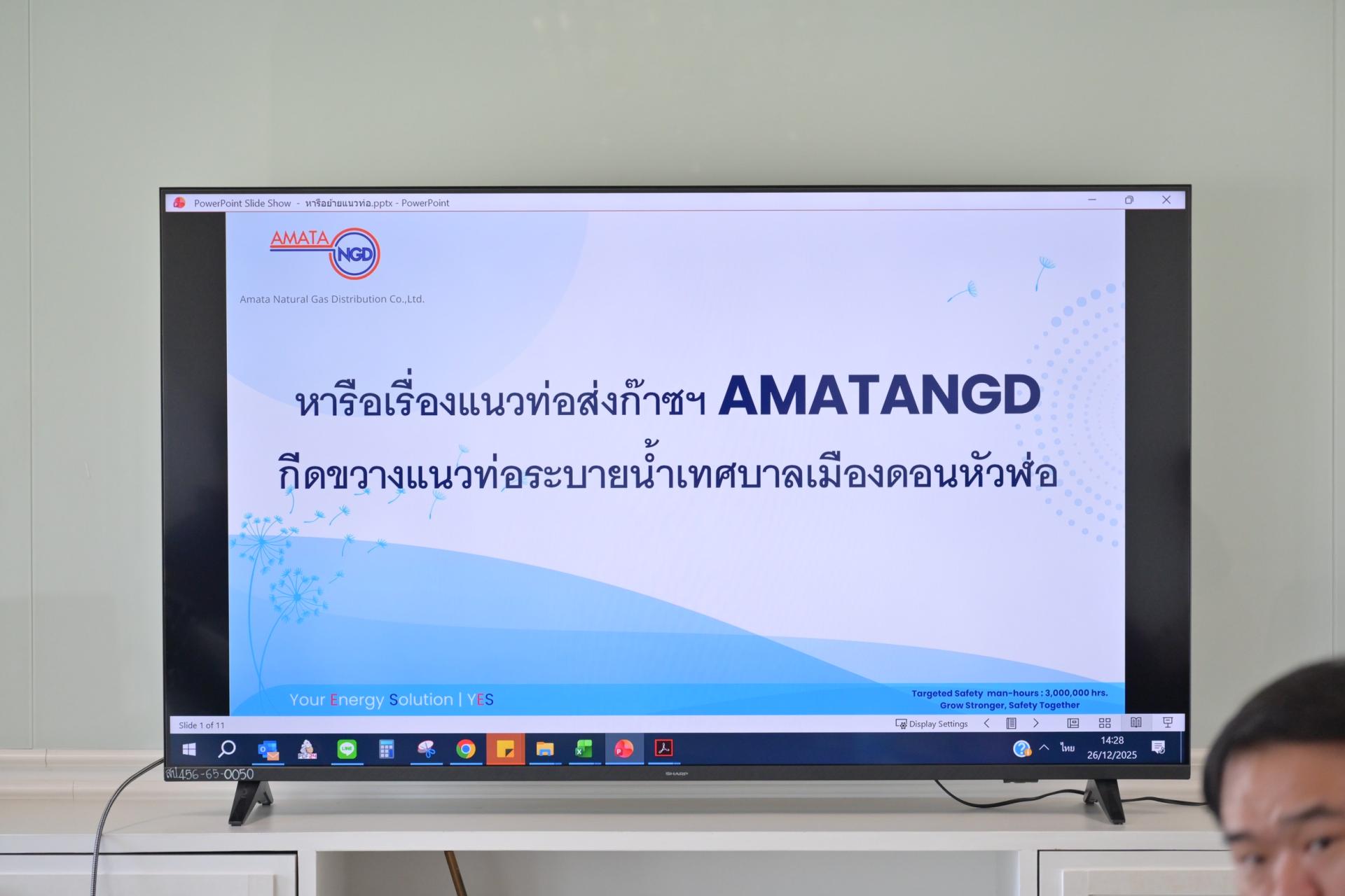 นายไมตรี ประเสริฐ นายกเทศมนตรีเมืองดอนหัวฬ่อ พร้อมด้วยคณะผู้บริหาร ผู้อำนวยการกองช่าง และผู้แทนจากบริษัท อมตะ จัดจำหน่ายก๊าซธรรมชาติ จำกัด ร่วมประชุมหารือเกี่ยวกับแนวท่อส่งก๊าซธรรมชาติ (AMATANGD) ซึ่งกีดขวางแนวท่อระบายน้ำของเทศบาลเมืองดอนหัวฬ่อ เพื่อหาแนวทางแก้ไขปัญหาบริเวณสี่แยกดอนขุงวัง ณ ห้องประชุมกวางทอง 1 ชั้น 8 สำนักงานเทศบาลเมืองดอนหัวฬ่อ