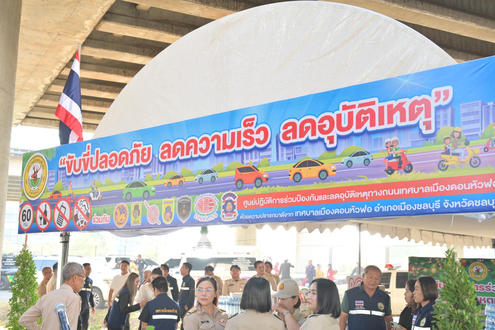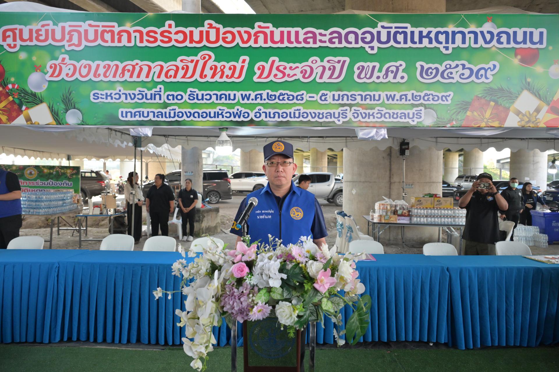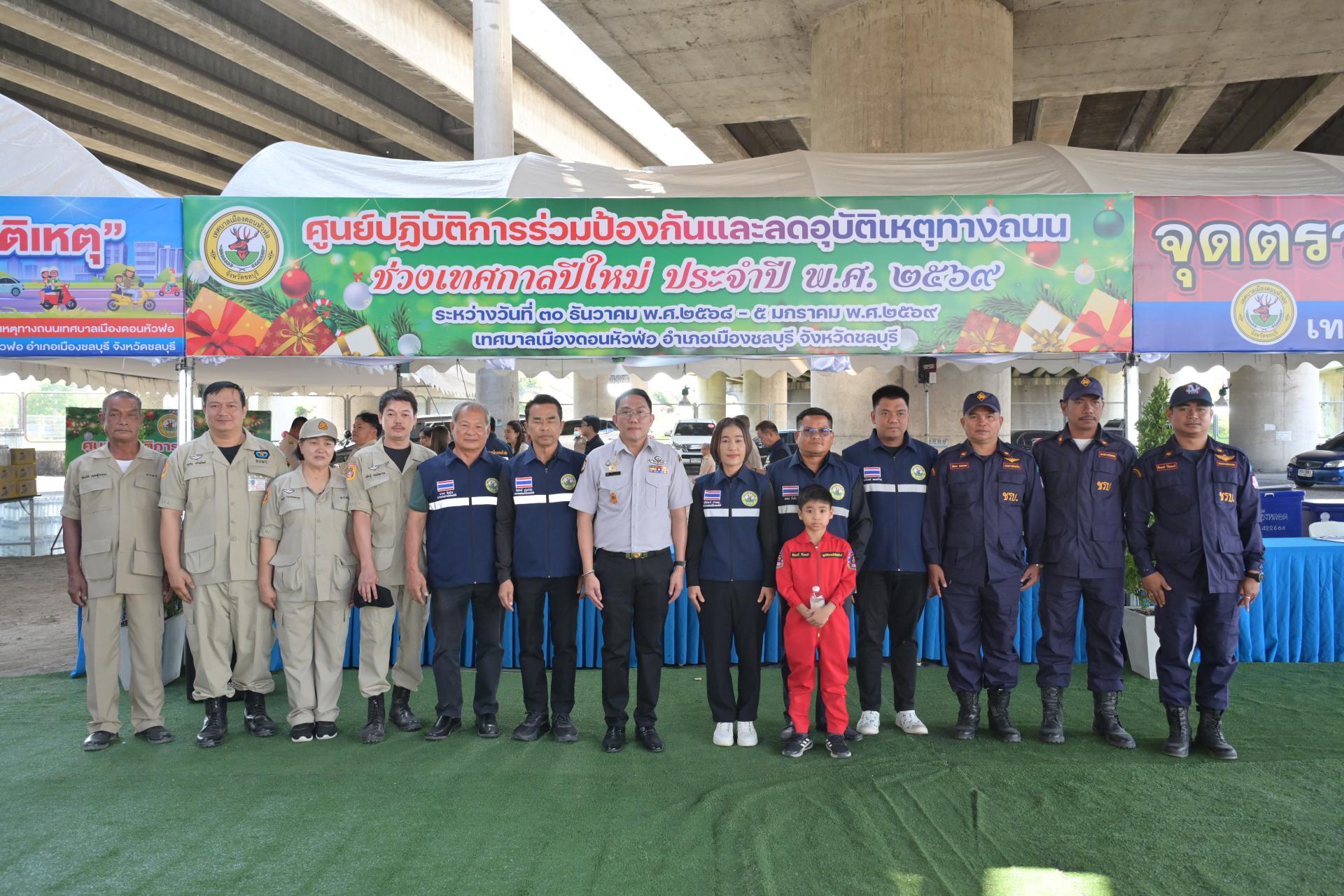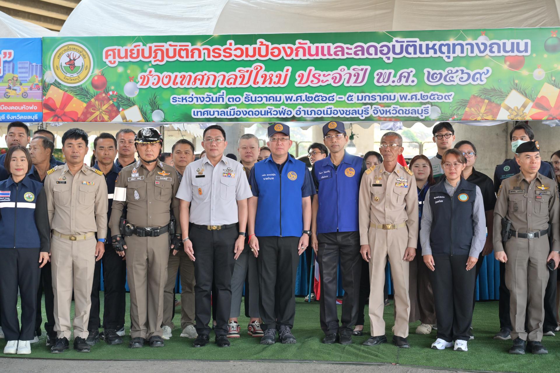 เทศบาลเมืองดอนหัวฬ่อ จัดกิจกรรมเปิดศูนย์ปฏิบัติการร่วมป้องกันและลดอุบัติเหตุทางถนน ช่วงเทศกาลปีใหม่ ประจำปี พ.ศ. 2568 ระหว่างวันที่ 30 ธันวาคม 2568 - วันที่ 5 มกราคม 2569 ณ บริเวณถนนศุขประยูร ฝั่งขาเข้าเมืองชลบุรี (ใต้สะพานต่างระดับมอเตอร์เวย์) ตรงข้ามสถานีดับเพลิงเทศบาลเมืองดอนหัวฬ่อ