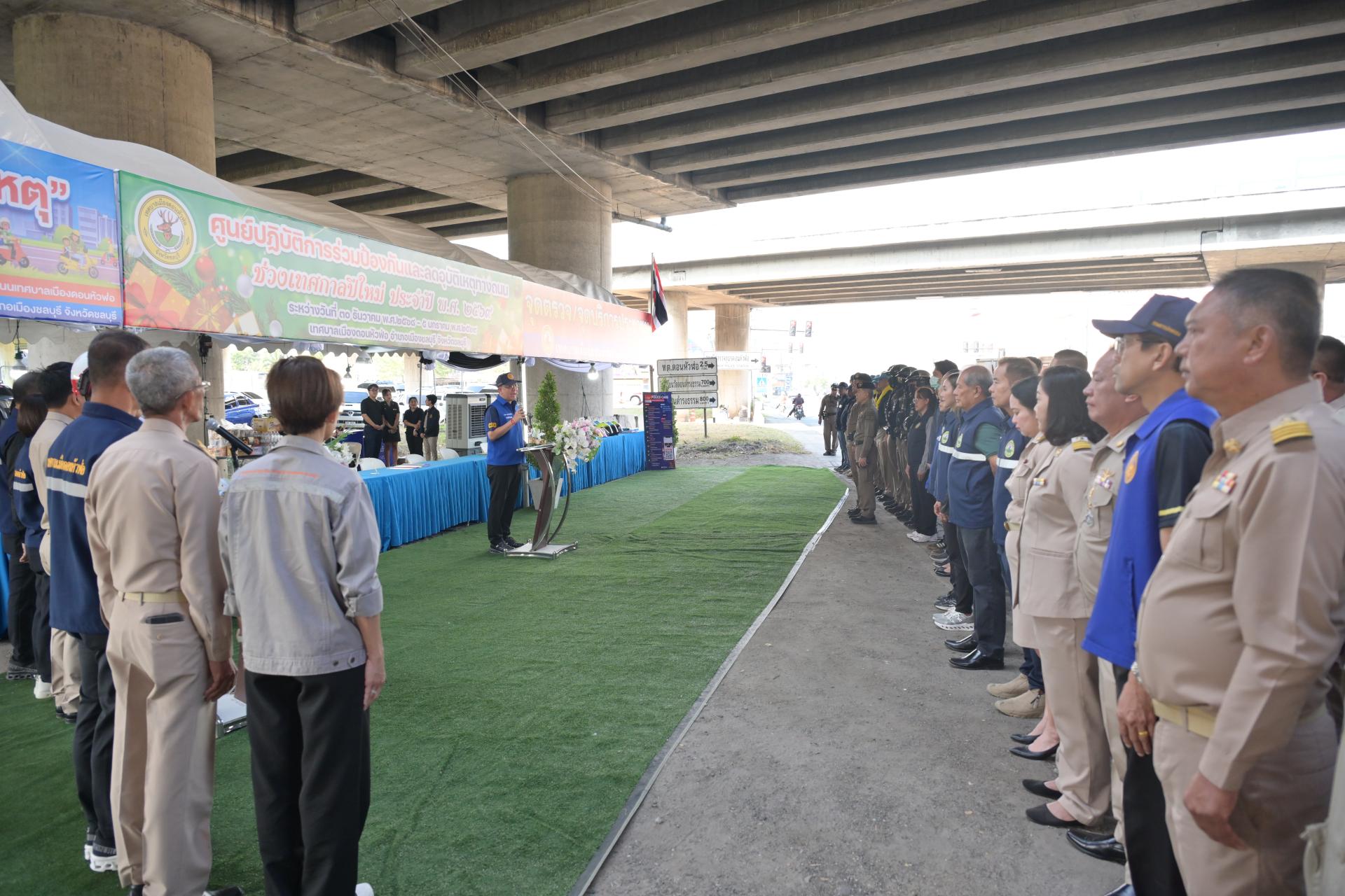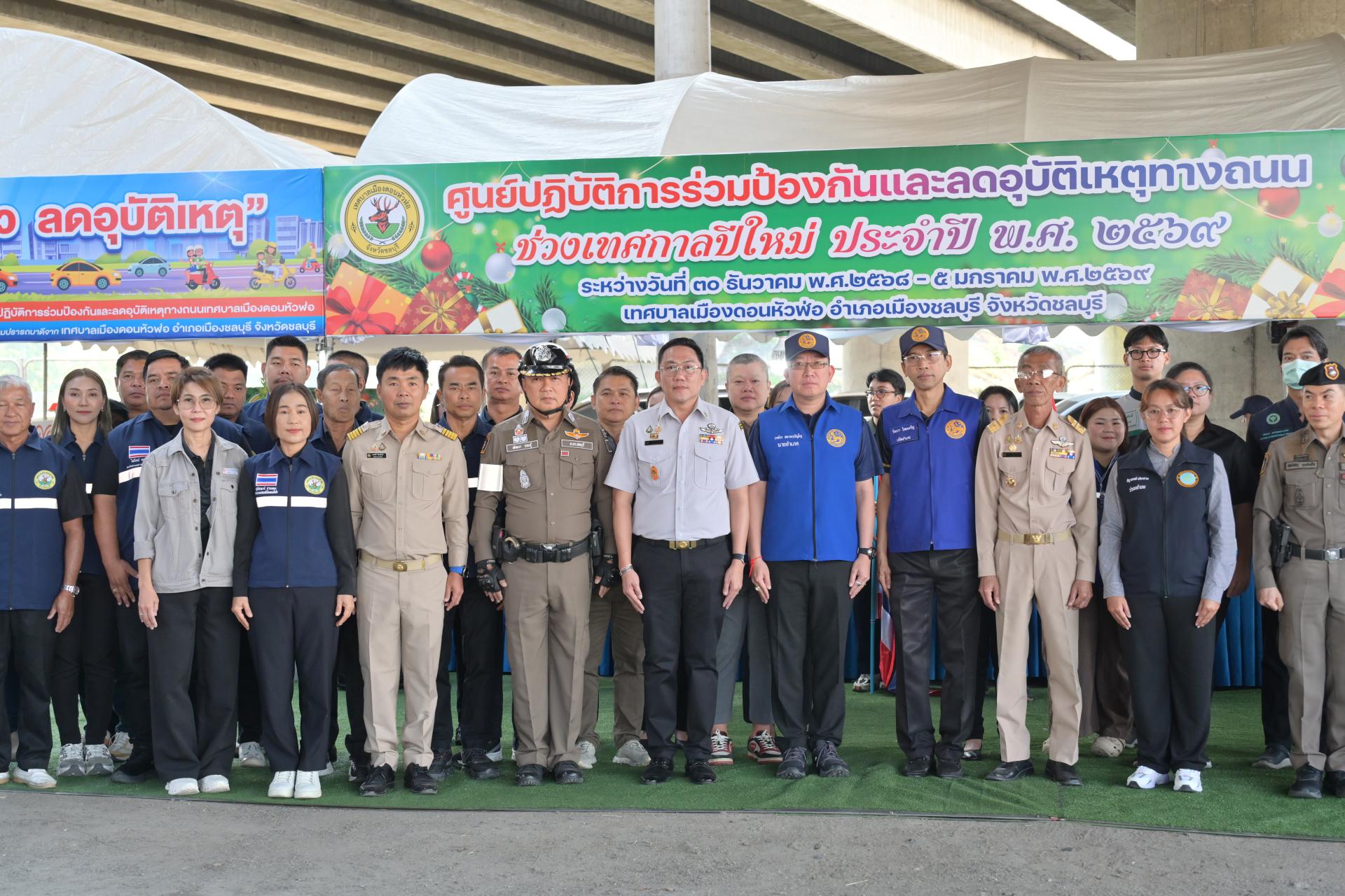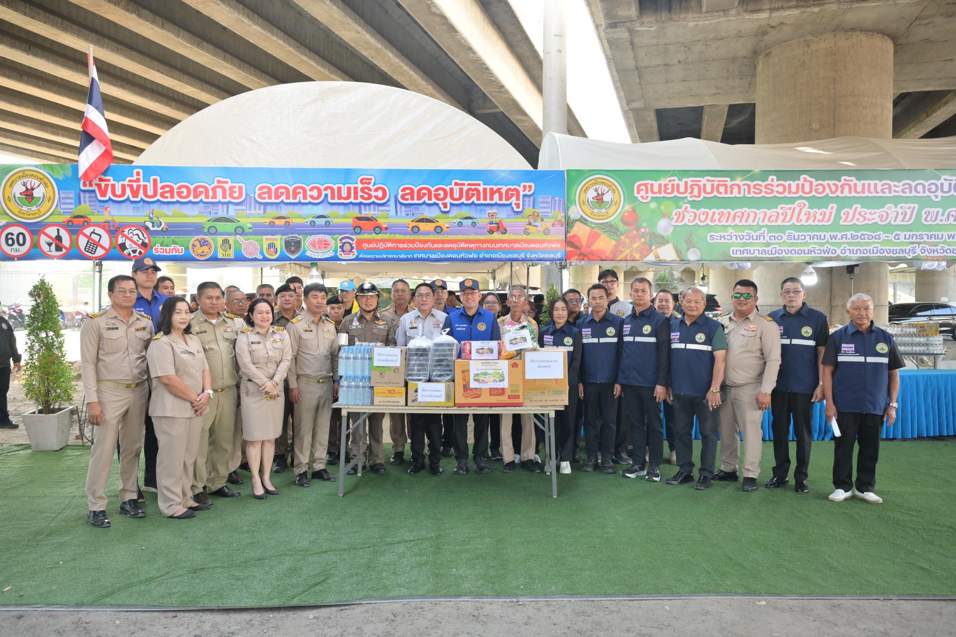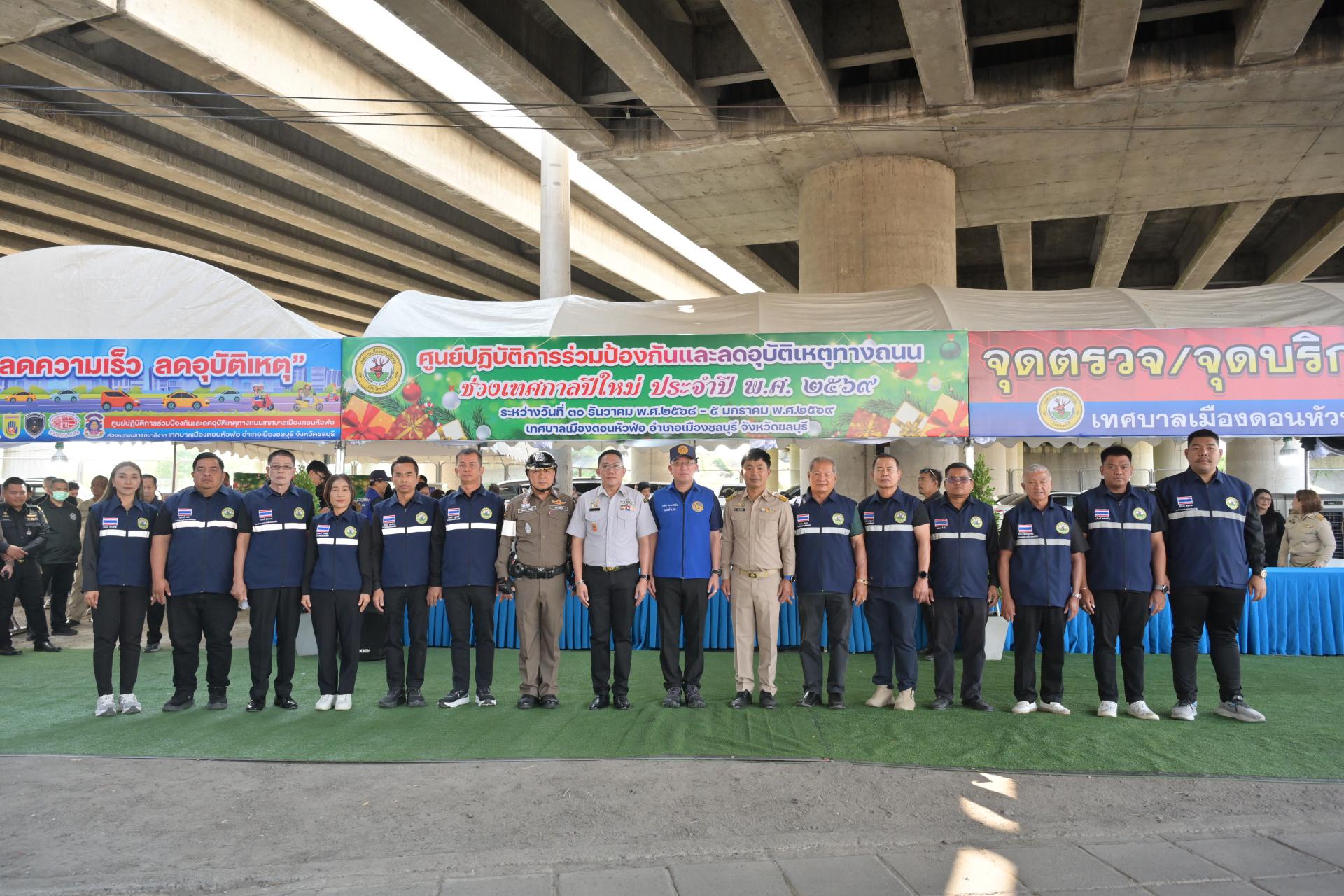 เทศบาลเมืองดอนหัวฬ่อ จัดกิจกรรมเปิดศูนย์ปฏิบัติการร่วมป้องกันและลดอุบัติเหตุทางถนน ช่วงเทศกาลปีใหม่ ประจำปี พ.ศ. 2568 ระหว่างวันที่ 30 ธันวาคม 2568 - วันที่ 5 มกราคม 2569 ณ บริเวณถนนศุขประยูร ฝั่งขาเข้าเมืองชลบุรี (ใต้สะพานต่างระดับมอเตอร์เวย์) ตรงข้ามสถานีดับเพลิงเทศบาลเมืองดอนหัวฬ่อ