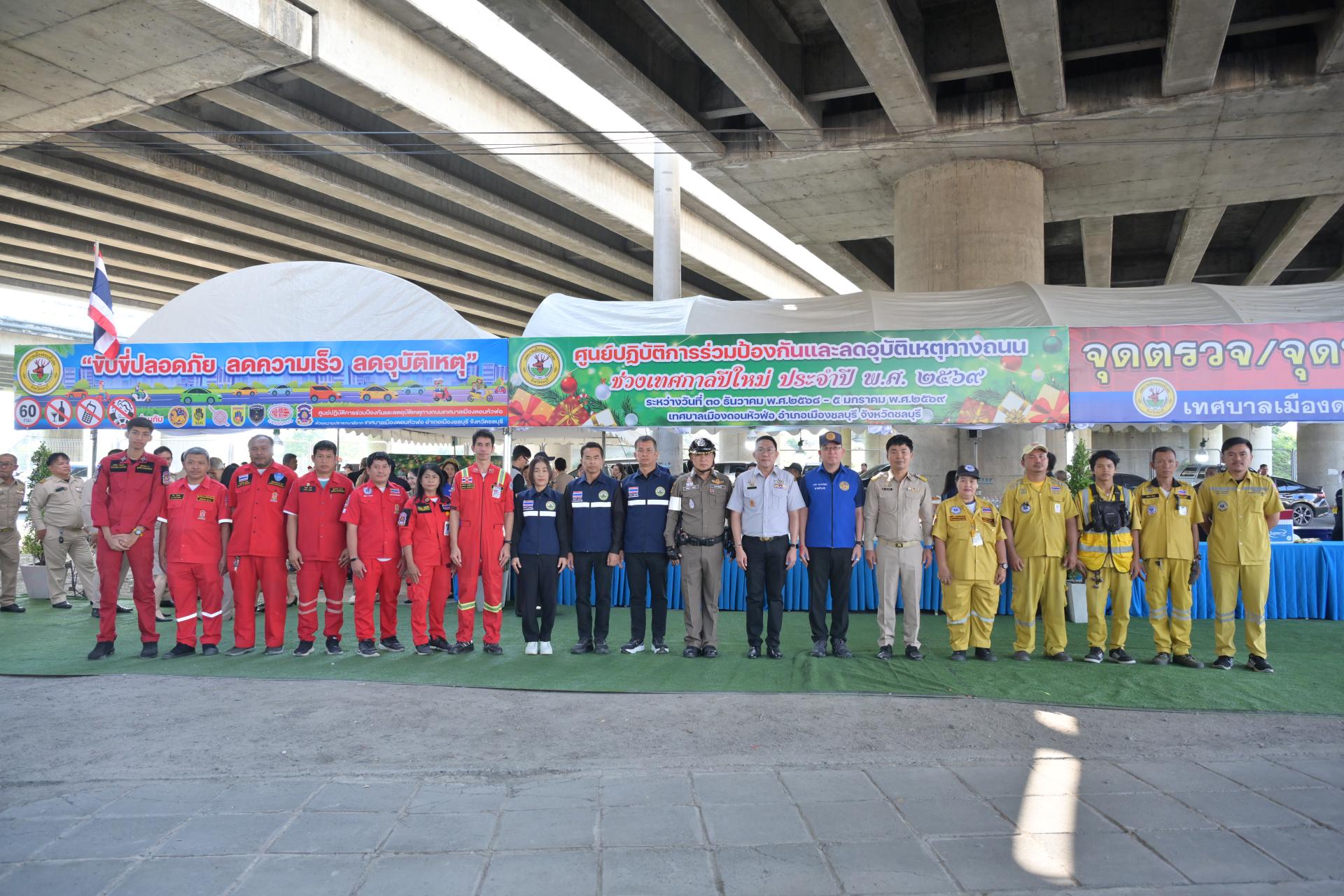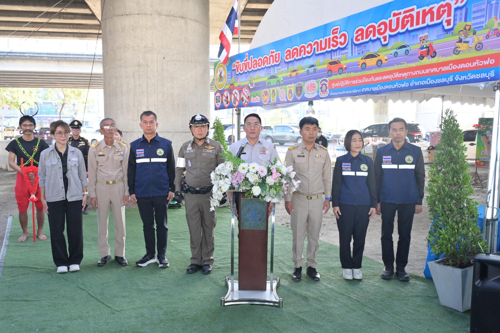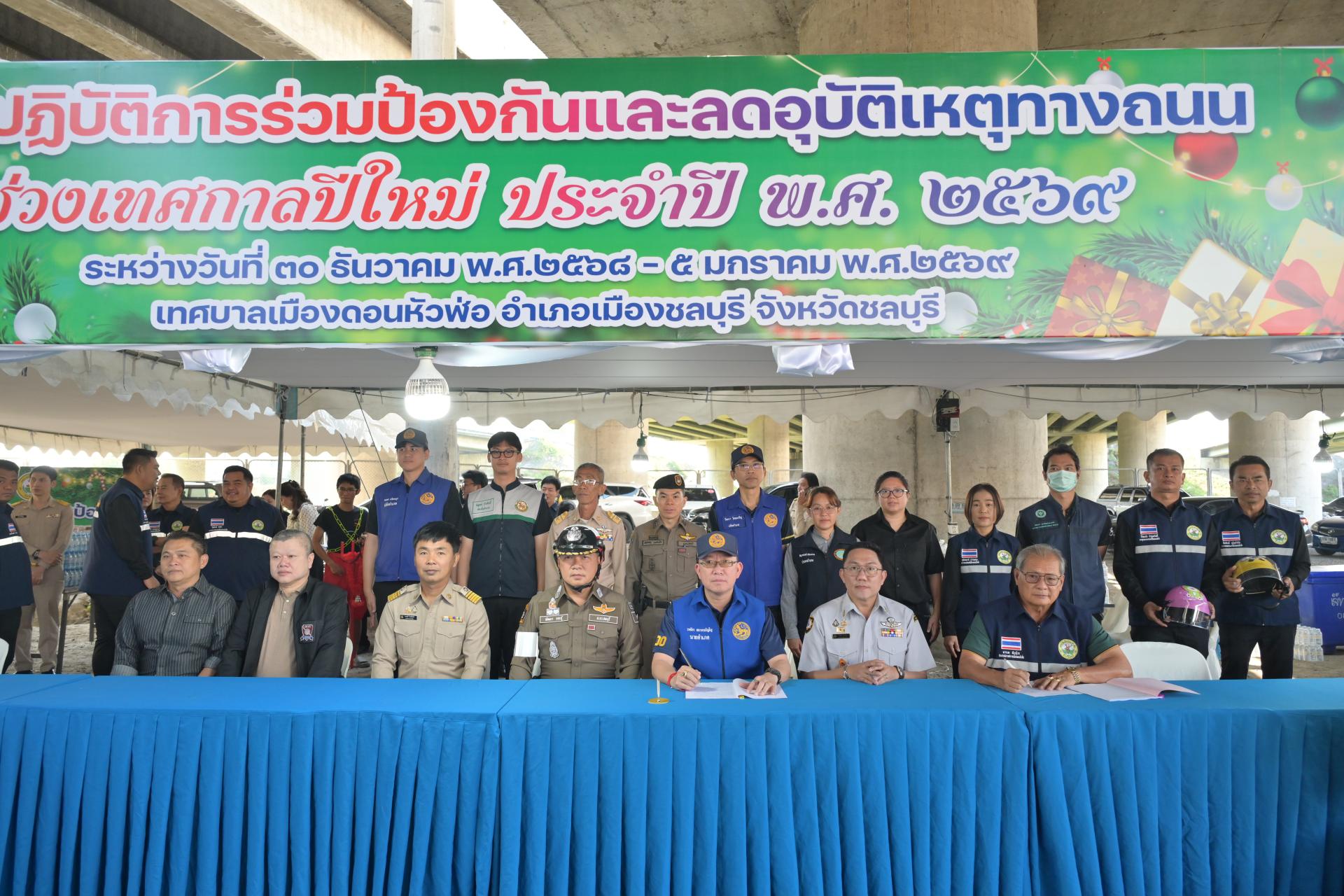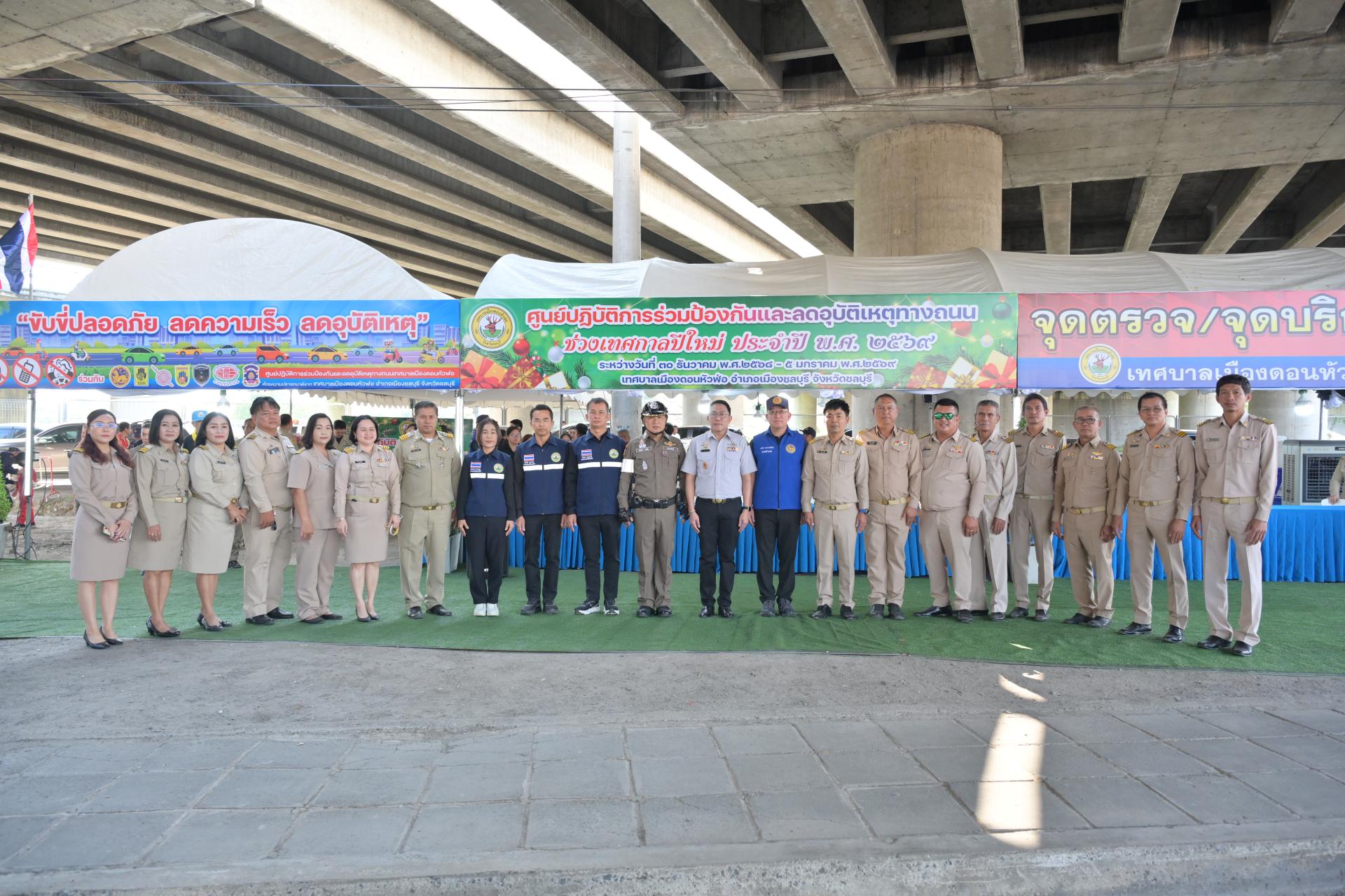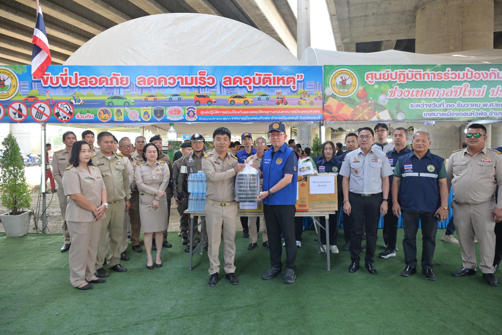 เทศบาลเมืองดอนหัวฬ่อ จัดกิจกรรมเปิดศูนย์ปฏิบัติการร่วมป้องกันและลดอุบัติเหตุทางถนน ช่วงเทศกาลปีใหม่ ประจำปี พ.ศ. 2568 ระหว่างวันที่ 30 ธันวาคม 2568 - วันที่ 5 มกราคม 2569 ณ บริเวณถนนศุขประยูร ฝั่งขาเข้าเมืองชลบุรี (ใต้สะพานต่างระดับมอเตอร์เวย์) ตรงข้ามสถานีดับเพลิงเทศบาลเมืองดอนหัวฬ่อ