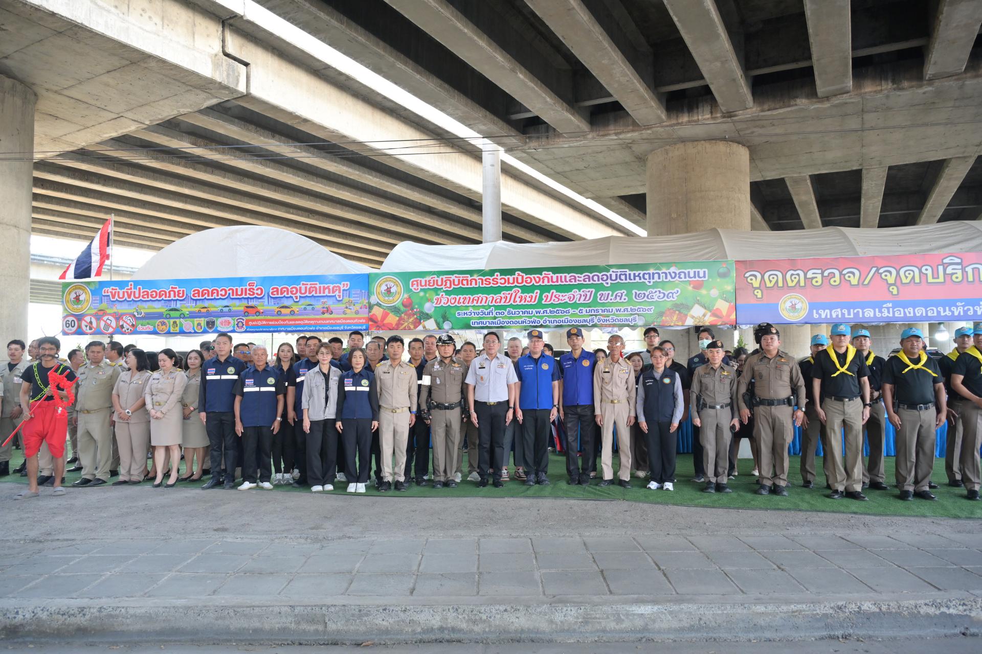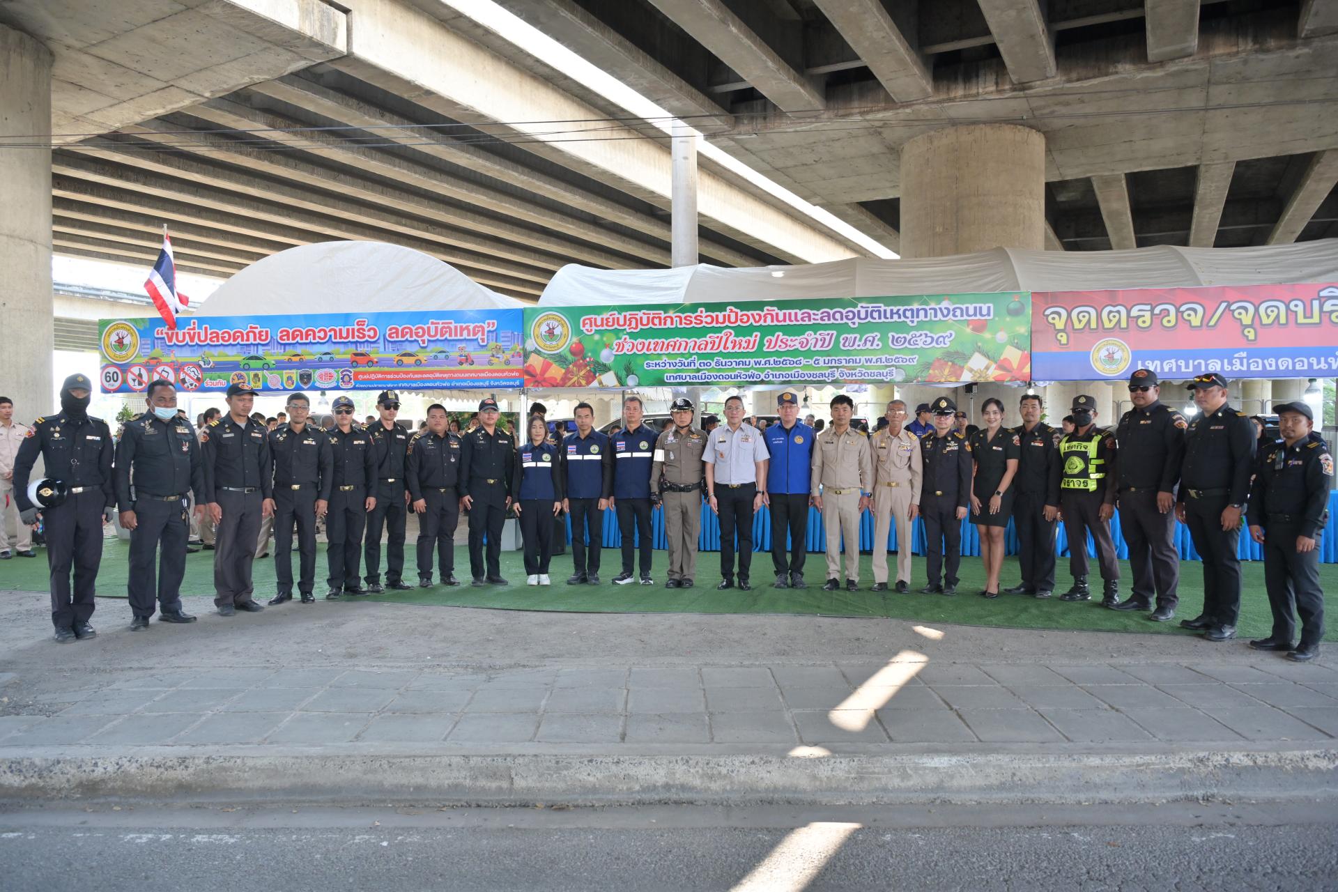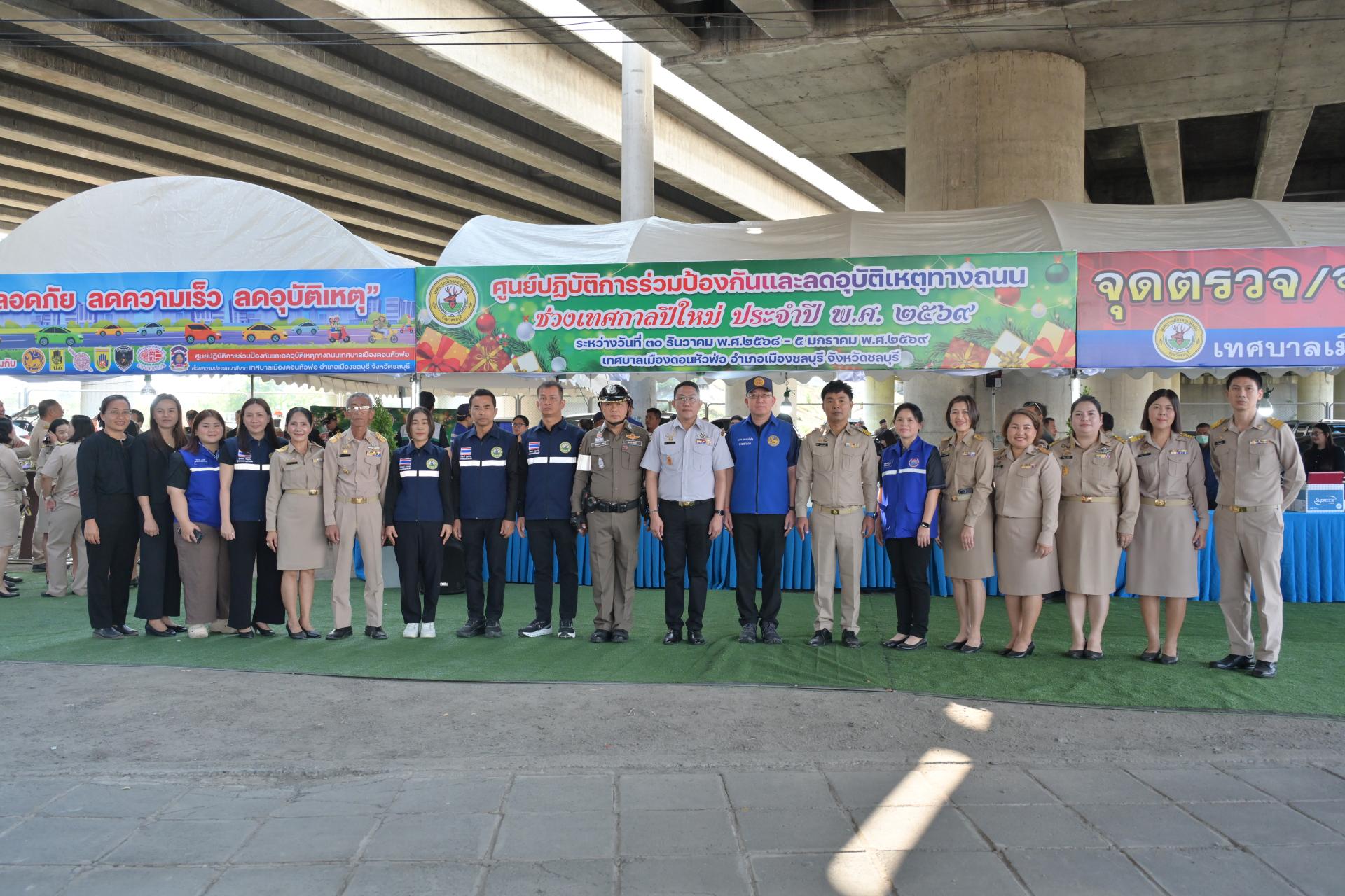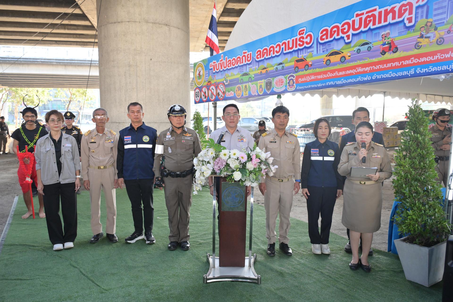 เทศบาลเมืองดอนหัวฬ่อ จัดกิจกรรมเปิดศูนย์ปฏิบัติการร่วมป้องกันและลดอุบัติเหตุทางถนน ช่วงเทศกาลปีใหม่ ประจำปี พ.ศ. 2568 ระหว่างวันที่ 30 ธันวาคม 2568 - วันที่ 5 มกราคม 2569 ณ บริเวณถนนศุขประยูร ฝั่งขาเข้าเมืองชลบุรี (ใต้สะพานต่างระดับมอเตอร์เวย์) ตรงข้ามสถานีดับเพลิงเทศบาลเมืองดอนหัวฬ่อ