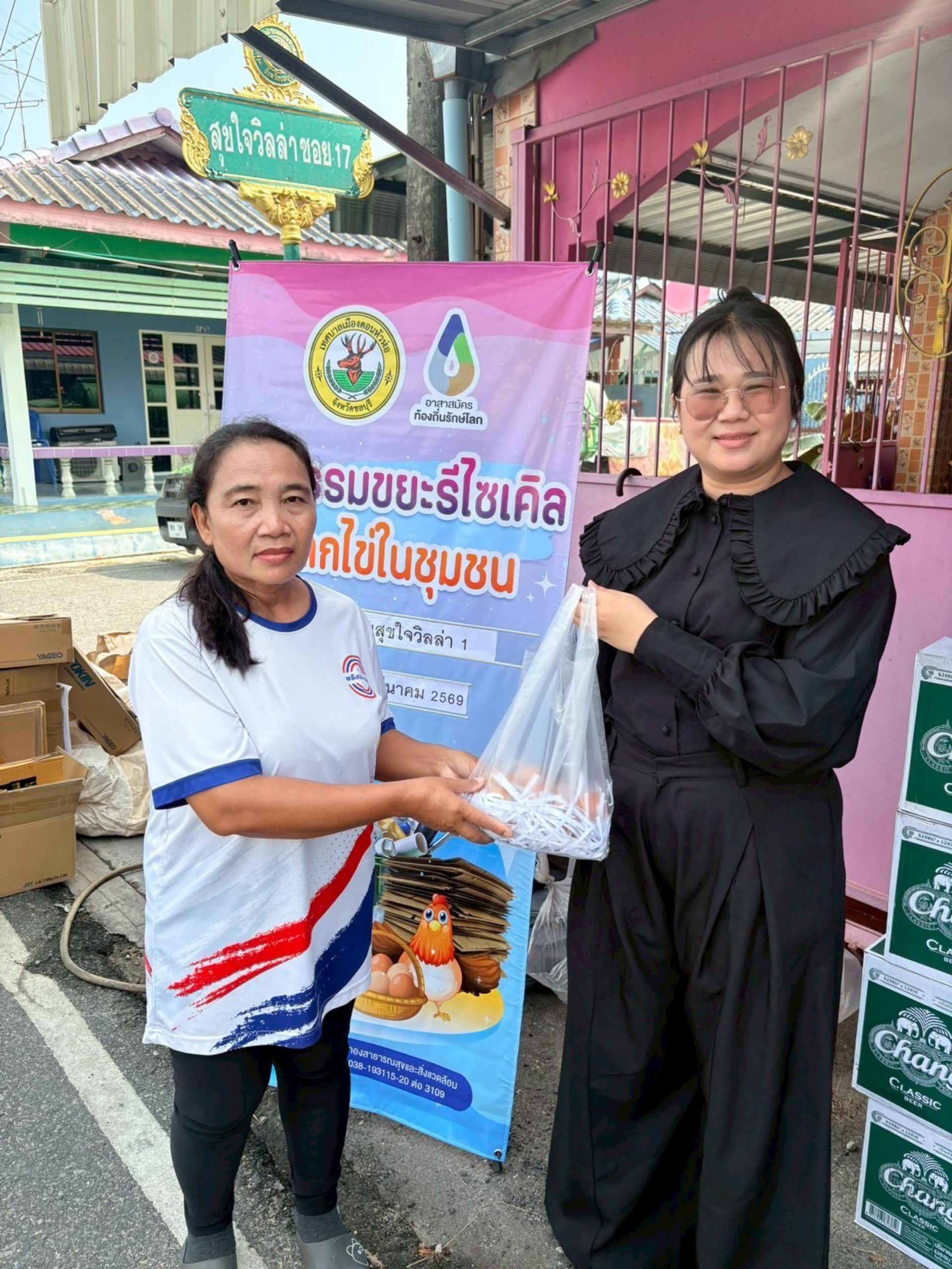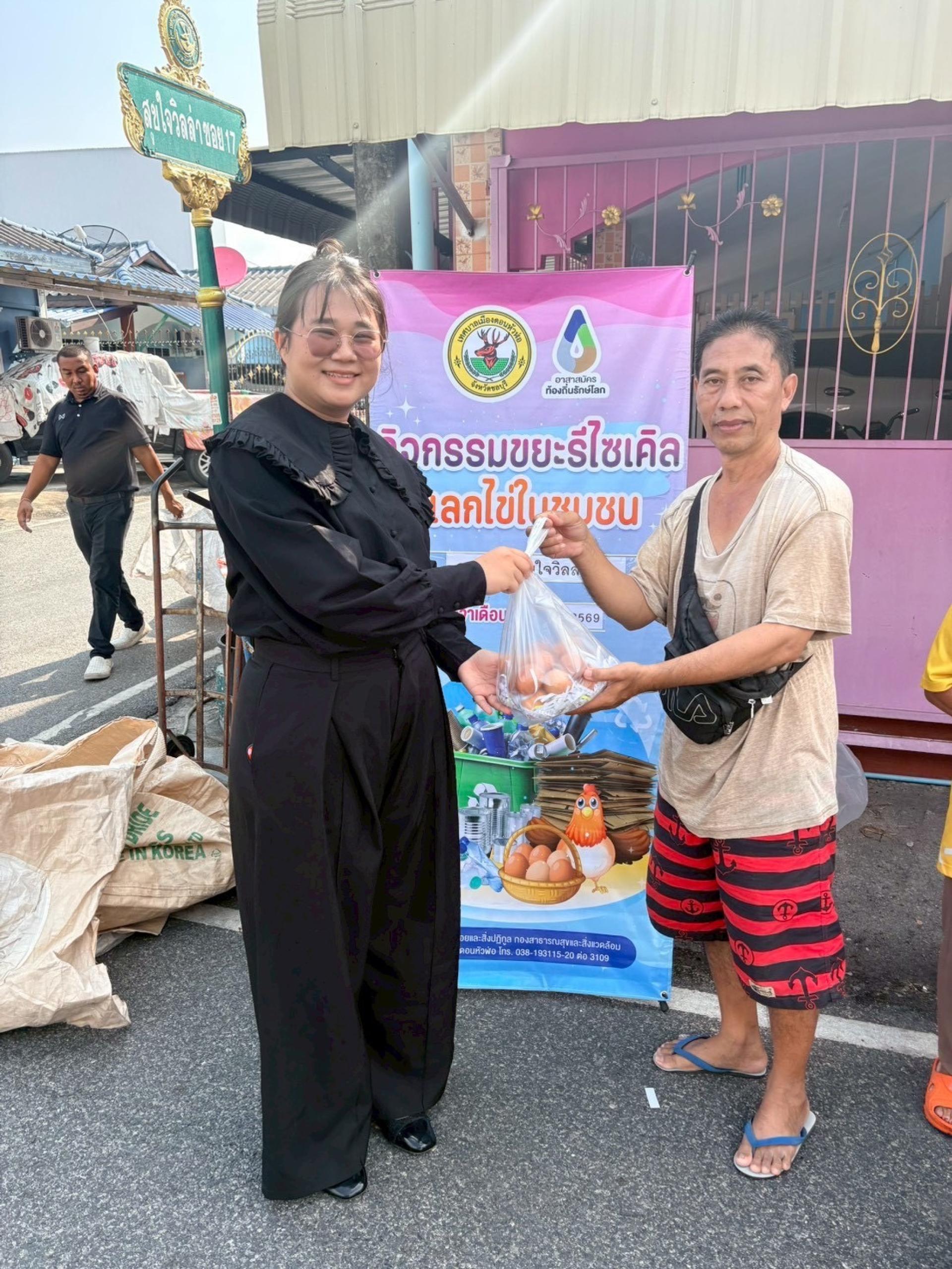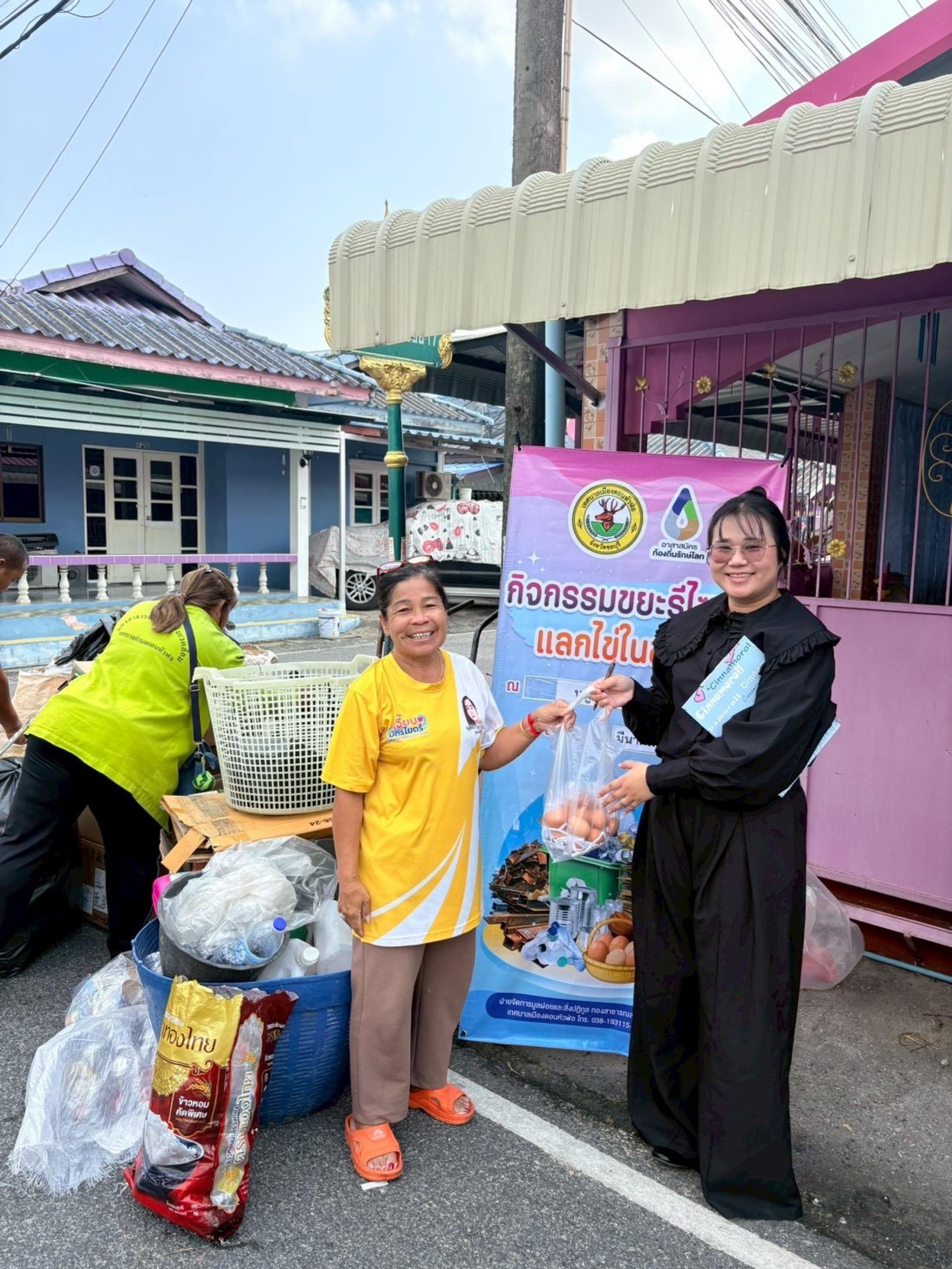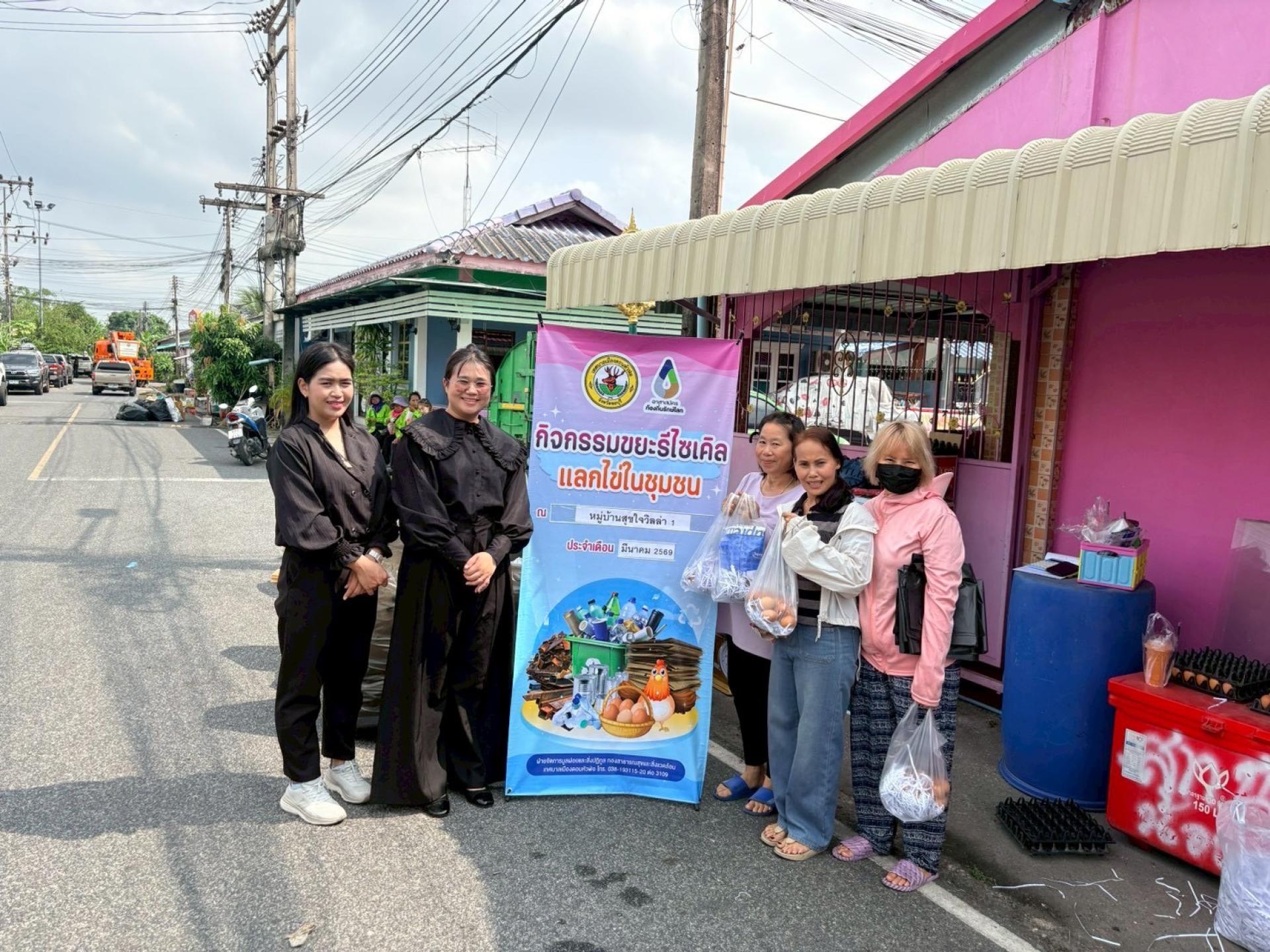 กองสาธารณสุขและสิ่งแวดล้อม ฝ่ายจัดการมูลฝอยและสิ่งปฏิกูล ดำเนินกิจกรรมขยะรีไซเคิลแลกไข่ในชุมชน ณ หมู่บ้านสุขใจวิลล่า 1 จำนวนน้ำหนักขยะรวม 462.30 กิโลกรัม เพื่อเสริมสร้างจิตสำนึกที่ดีในการแยกขยะก่อนทิ้งให้แก่ประชาชนในเขตเทศบาลเมืองดอนหัวฬ่อ รวมถึงวิธีการลดปริมาณขยะ การคัดแยก การนำกลับมาใช้ใหม่ ภายใต้หลักการ ๓Rs อันจะนำไปสู่การลดขยะจากต้นทาง และร่วมกันรักษาสภาพแวดล้อม ให้ดีขึ้นอย่างยั่งยืนต่อไป