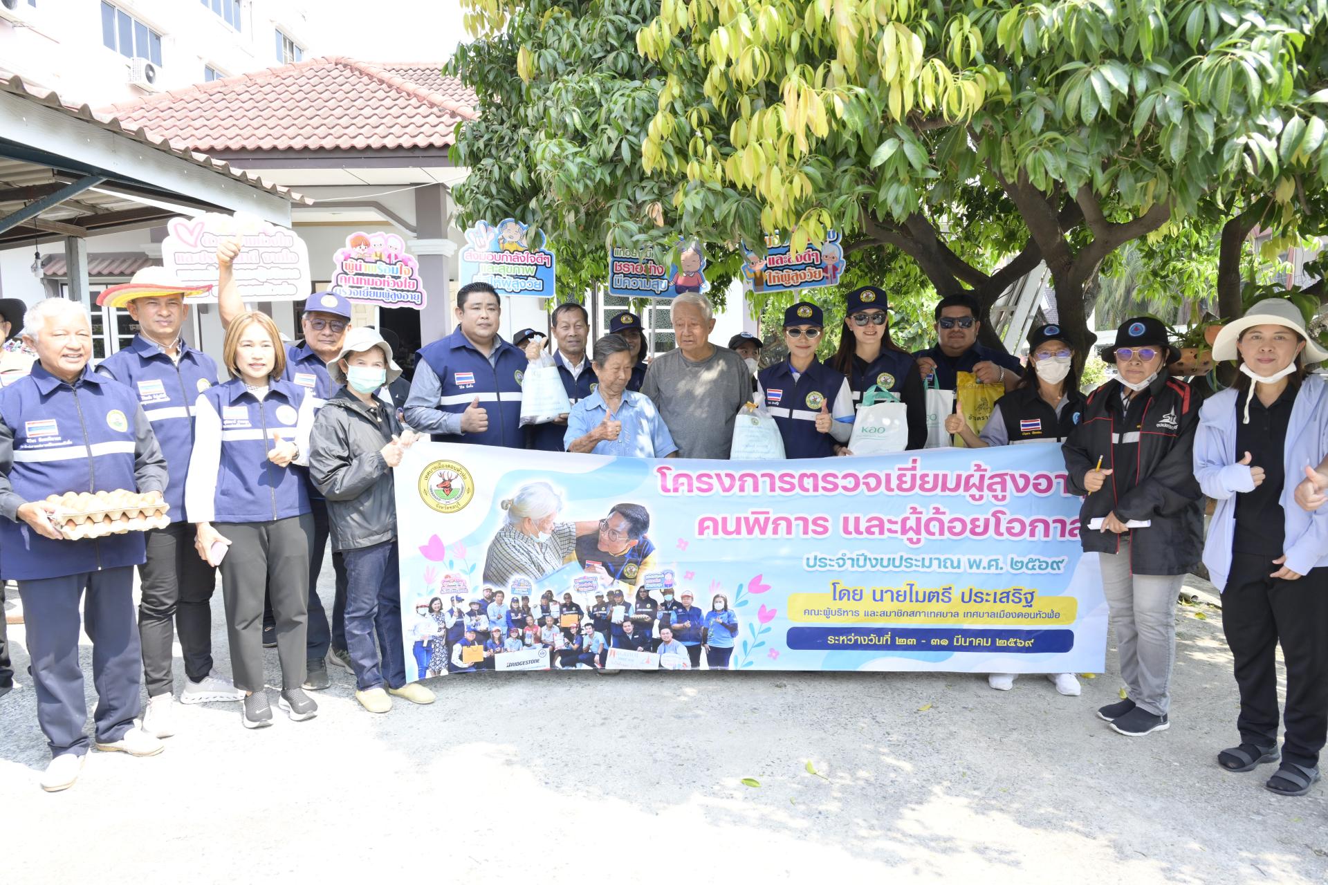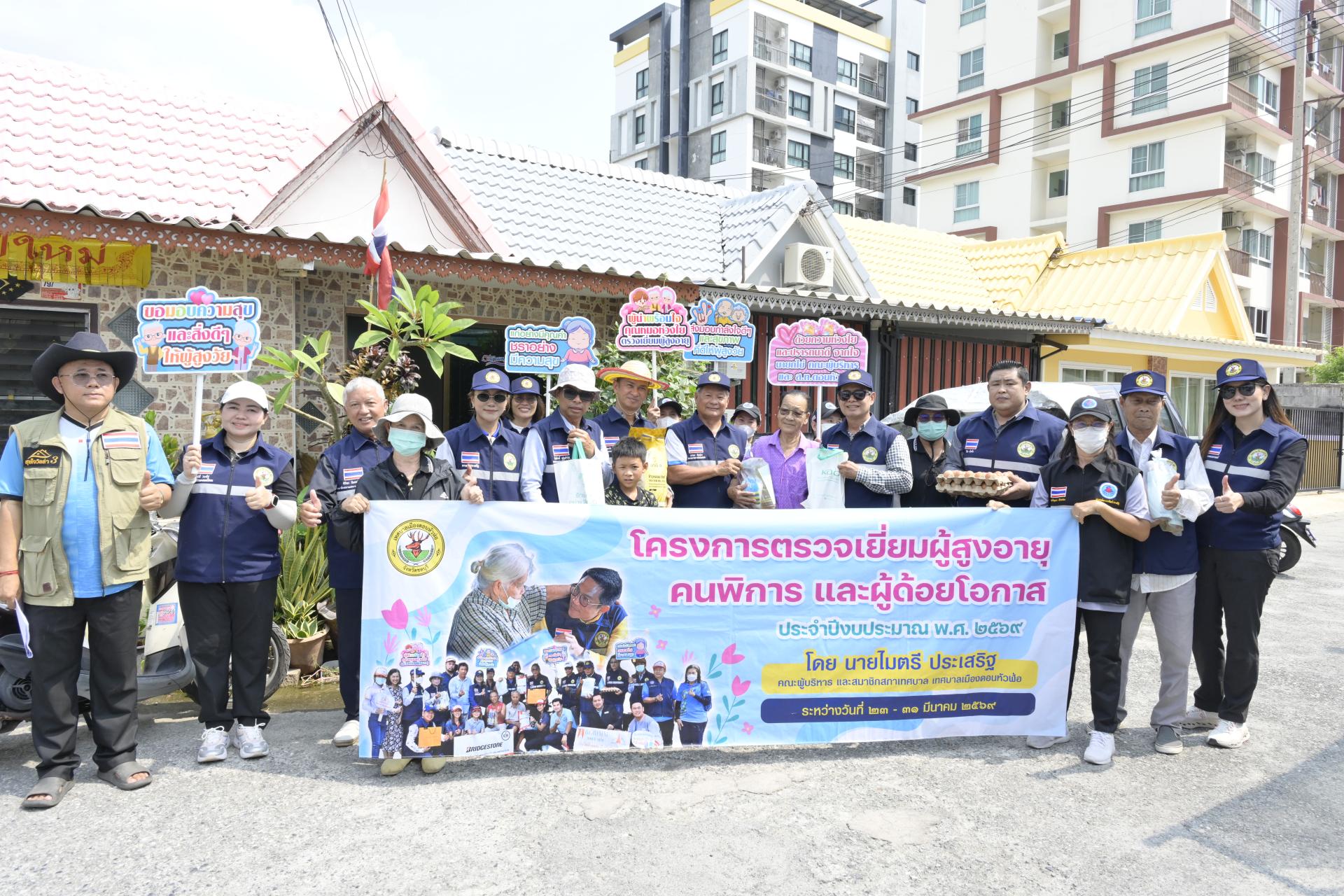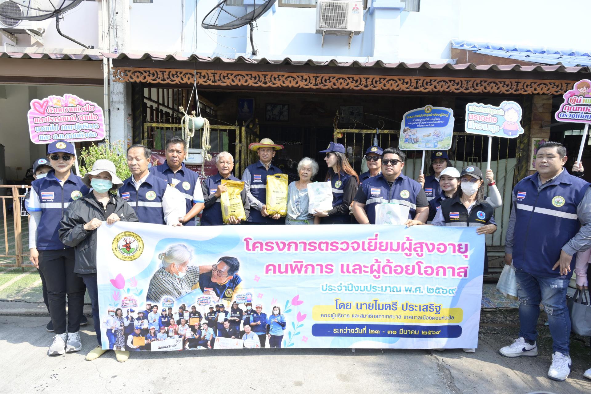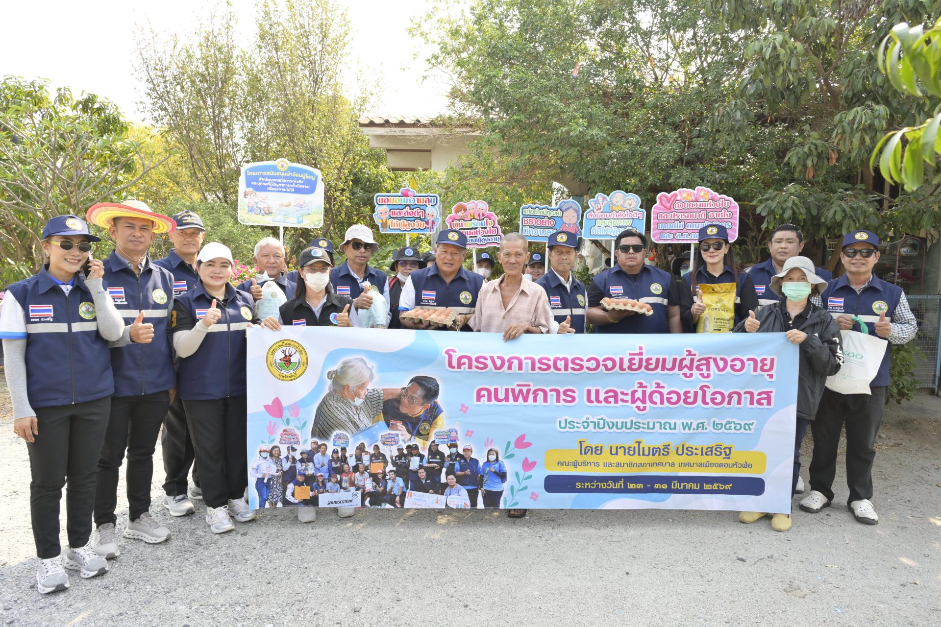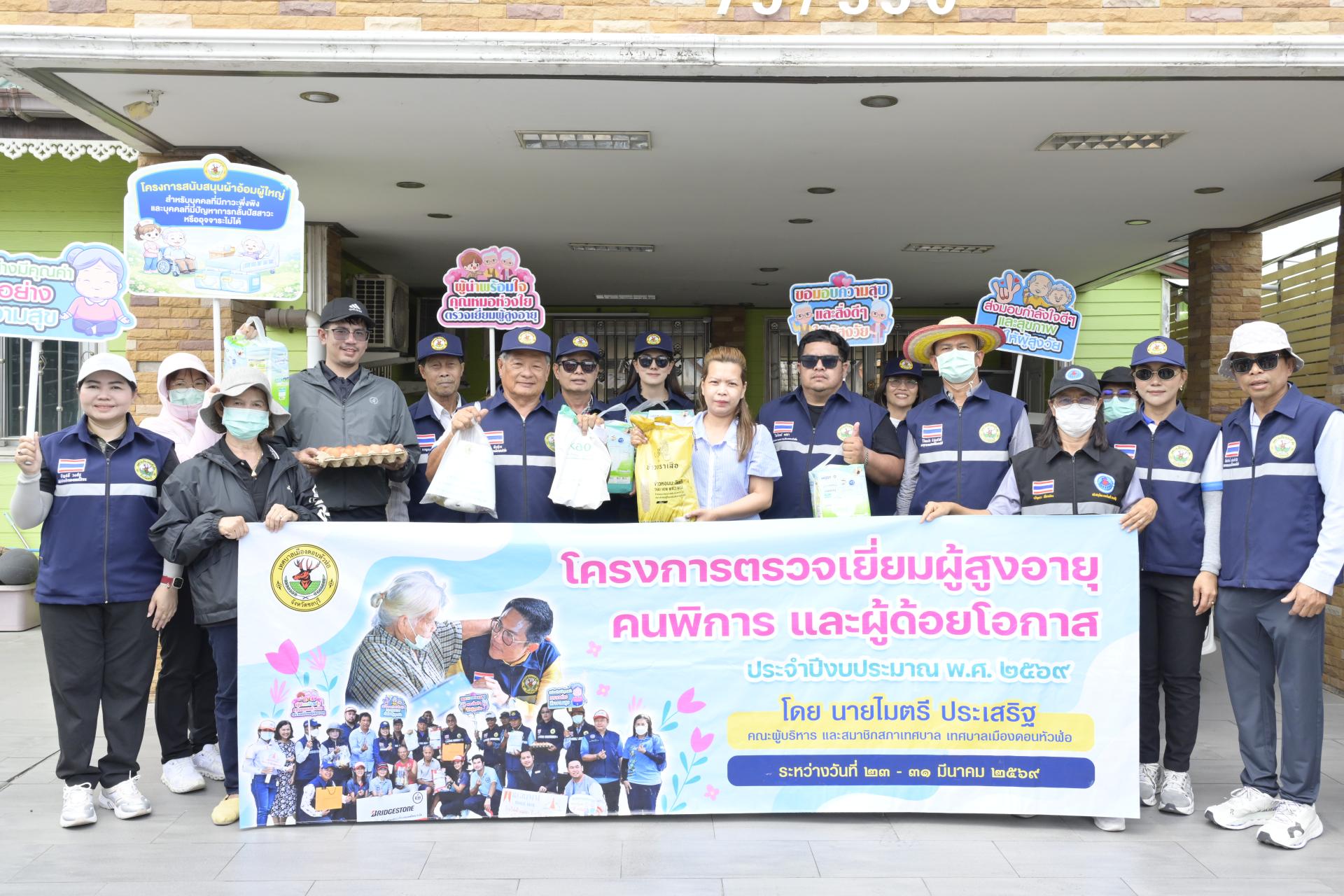 นายธีรศักดิ์ แจ่มจำรัส รองนายกเทศมนตรีเมืองดอนหัวฬ่อ นางสาวสุพิชฌาย์ ปานผดุง รองนายกเทศมนตรีเมืองดอนหัวฬ่อ พร้อมด้วยคณะผู้บริหาร สมาชิกสภาเทศบาล หัวหน้าส่วนราชการ เจ้าหน้าที่เทศบาล อสม. ตำบลดอนหัวฬ่อ ร่วมลงพื้นที่ดำเนินโครงการตรวจเยี่ยมผู้สูงอายุ คนพิการ และผู้ด้อยโอกาส ประจำปีงบประมาณ พ.ศ. 2569 ระหว่างวันที่ 23 - 31 มีนาคม 2569 โดยได้ลงพื้นที่ตรวจเยี่ยม และมอบสิ่งของอุปโภค บริโภค พร้อมตรวจสุขภาพให้แก่ผู้สูงอายุ (อายุ 70 ปีขึ้นไป) คนพิการ และผู้ด้อยโอกาส ที่อาศัยอยู่ในเขตพื้นที่หมู่ที่ 3 ตำบลดอนหัวฬ่อ อำเภอเมืองชลบุรี จังหวัดชลบุรี