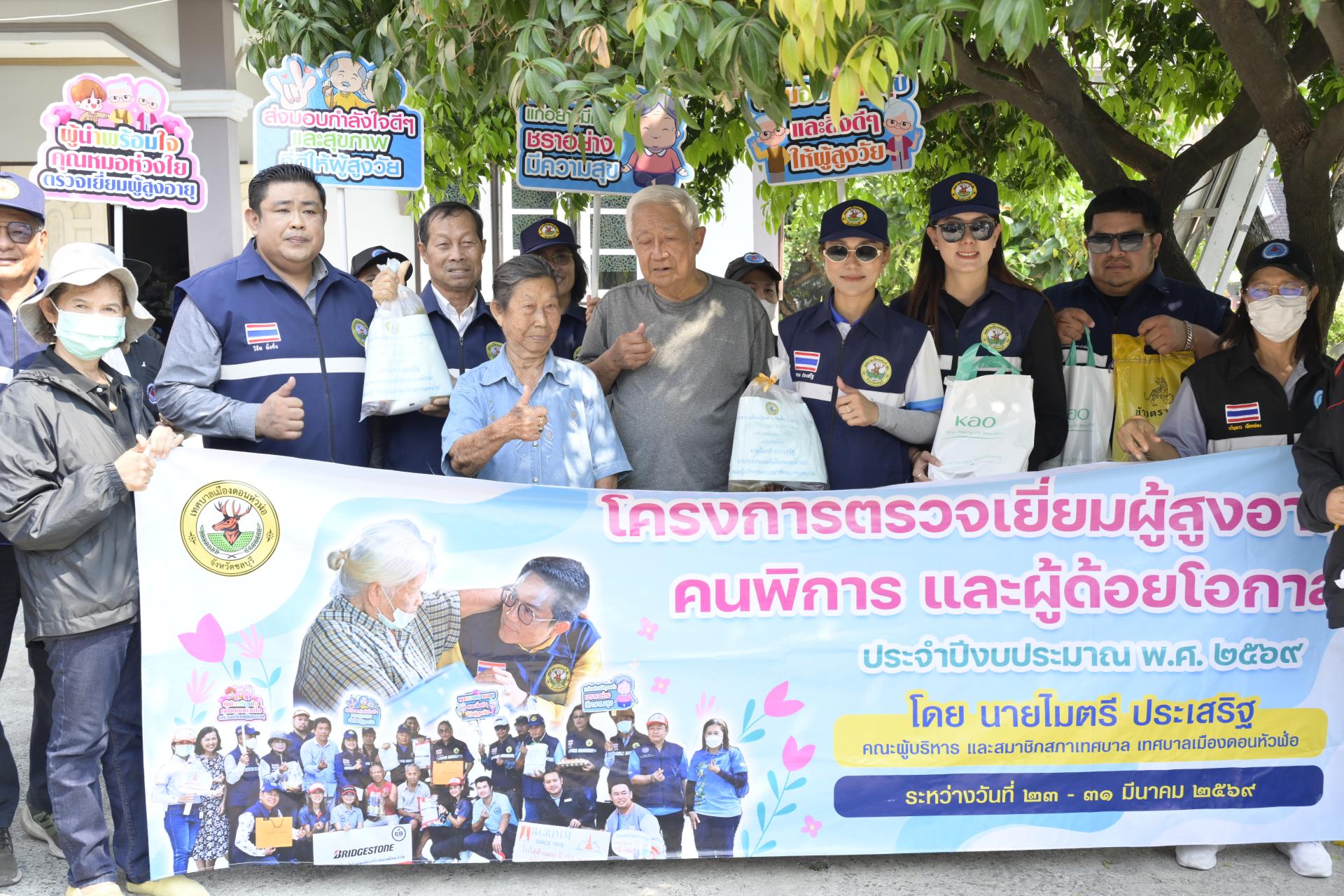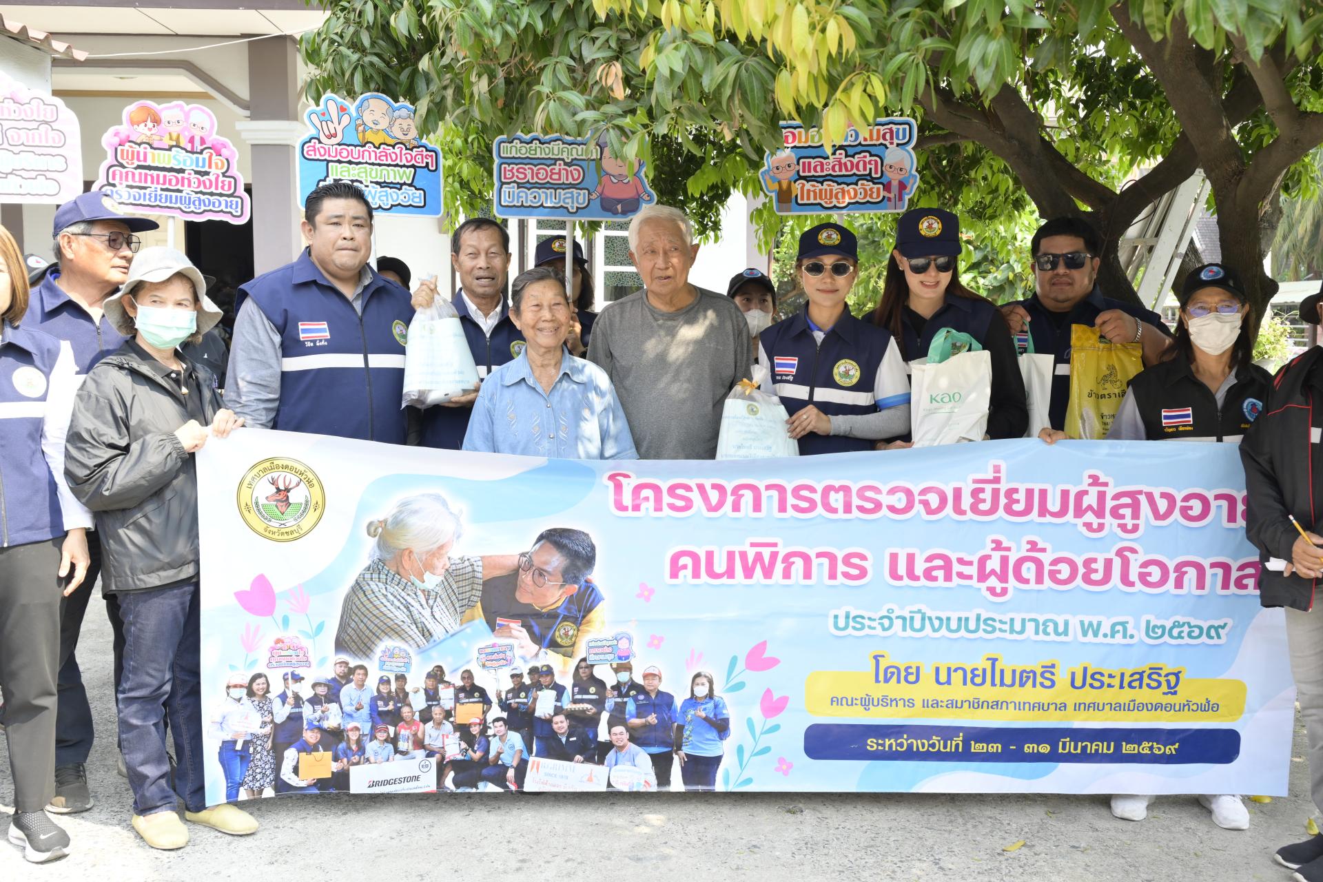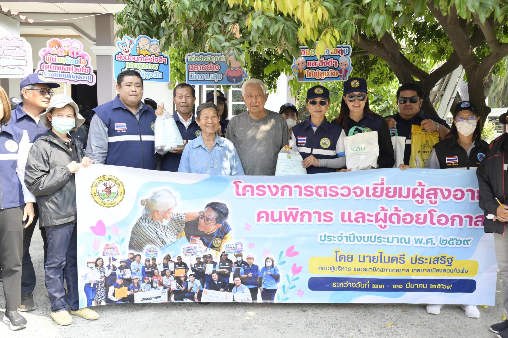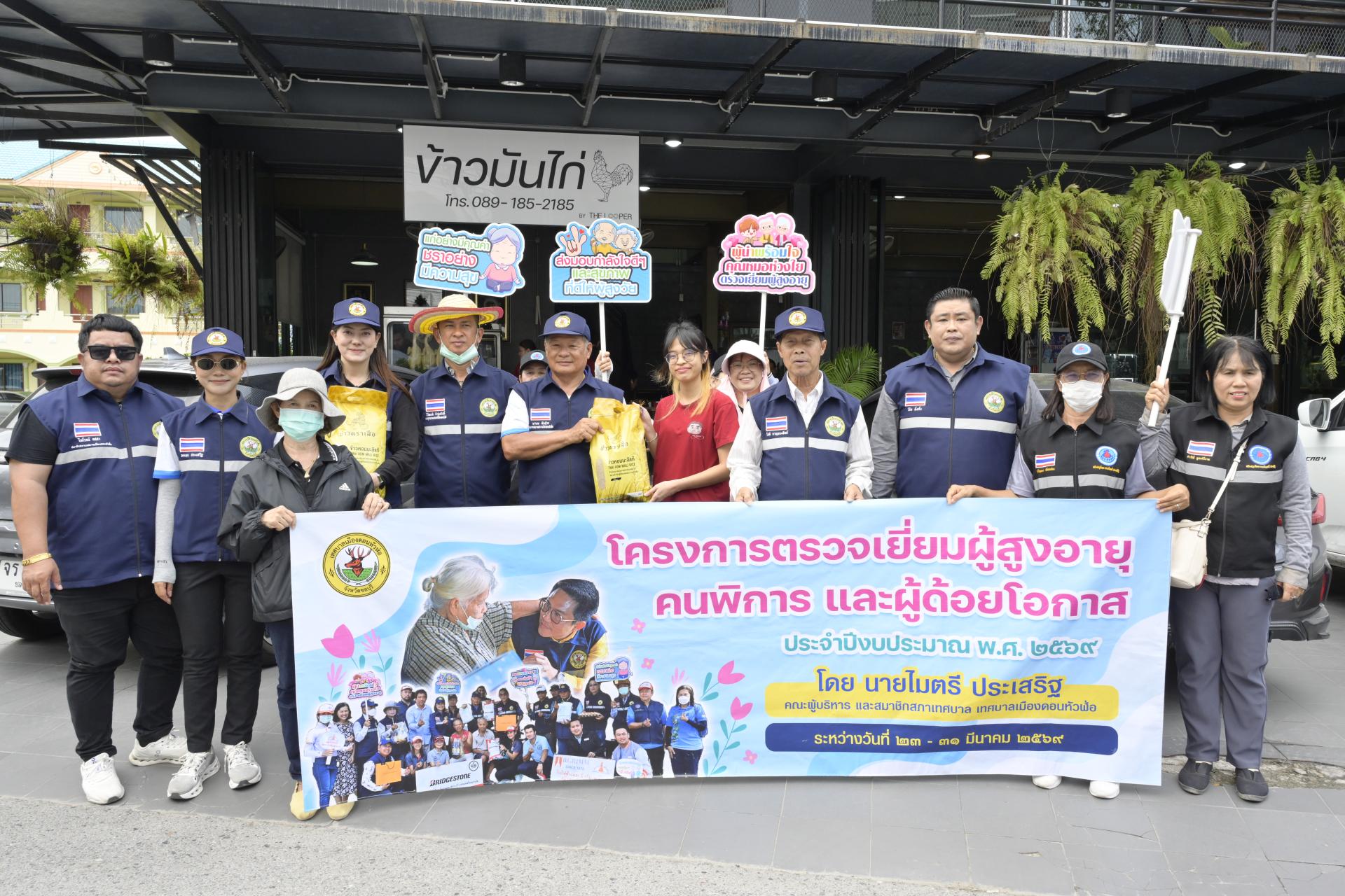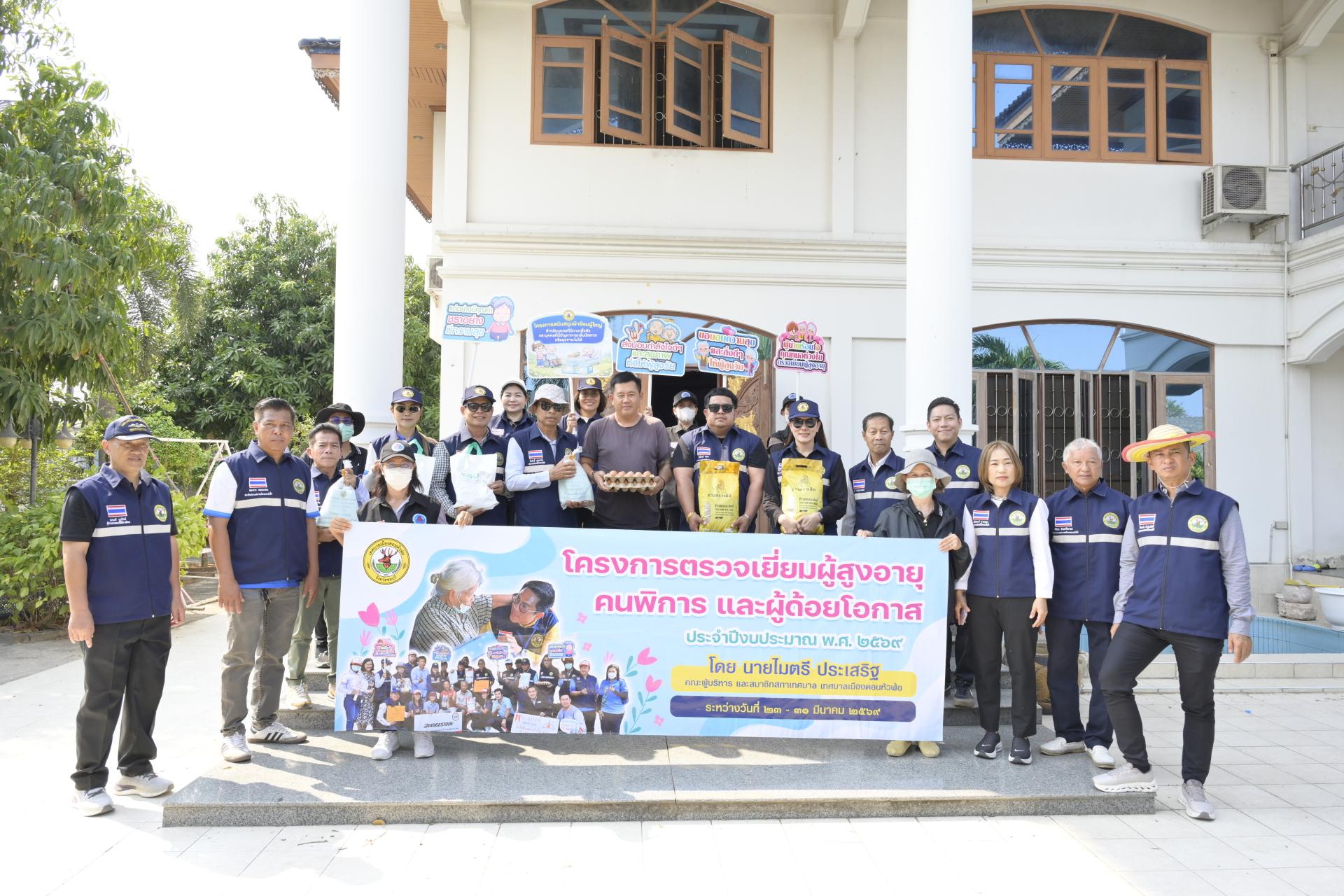 นายธีรศักดิ์ แจ่มจำรัส รองนายกเทศมนตรีเมืองดอนหัวฬ่อ นางสาวสุพิชฌาย์ ปานผดุง รองนายกเทศมนตรีเมืองดอนหัวฬ่อ พร้อมด้วยคณะผู้บริหาร สมาชิกสภาเทศบาล หัวหน้าส่วนราชการ เจ้าหน้าที่เทศบาล อสม. ตำบลดอนหัวฬ่อ ร่วมลงพื้นที่ดำเนินโครงการตรวจเยี่ยมผู้สูงอายุ คนพิการ และผู้ด้อยโอกาส ประจำปีงบประมาณ พ.ศ. 2569 ระหว่างวันที่ 23 - 31 มีนาคม 2569 โดยได้ลงพื้นที่ตรวจเยี่ยม และมอบสิ่งของอุปโภค บริโภค พร้อมตรวจสุขภาพให้แก่ผู้สูงอายุ (อายุ 70 ปีขึ้นไป) คนพิการ และผู้ด้อยโอกาส ที่อาศัยอยู่ในเขตพื้นที่หมู่ที่ 3 ตำบลดอนหัวฬ่อ อำเภอเมืองชลบุรี จังหวัดชลบุรี