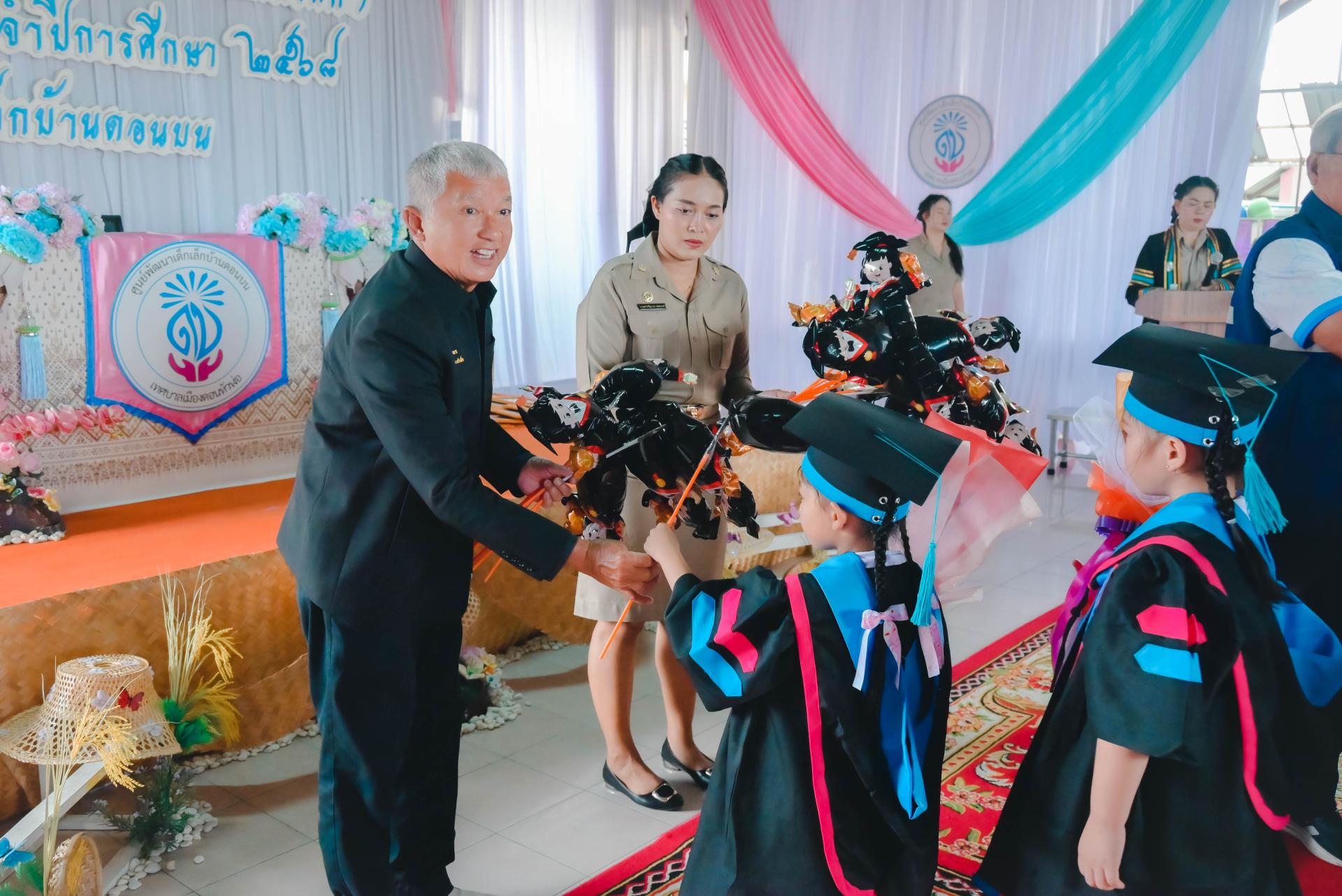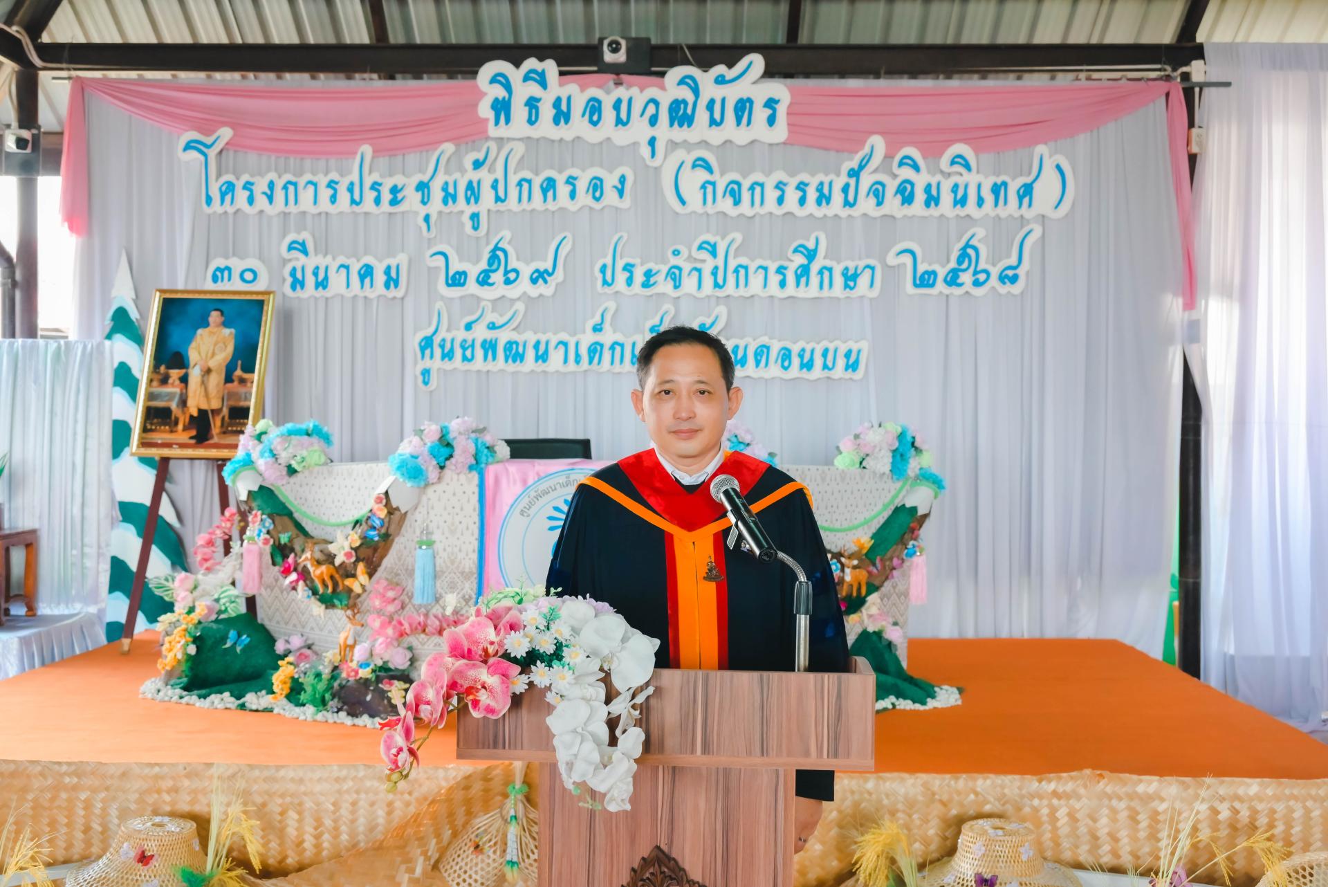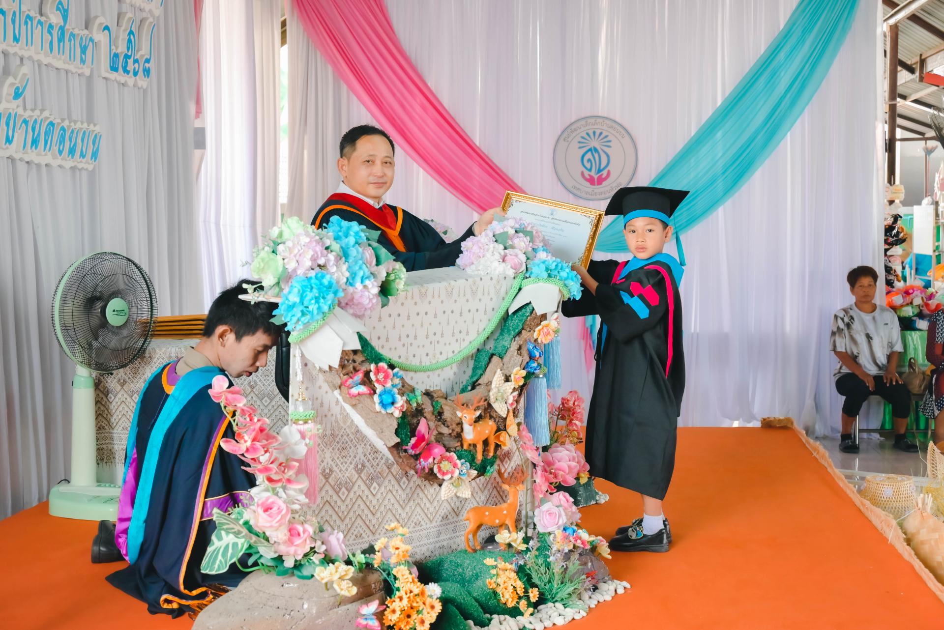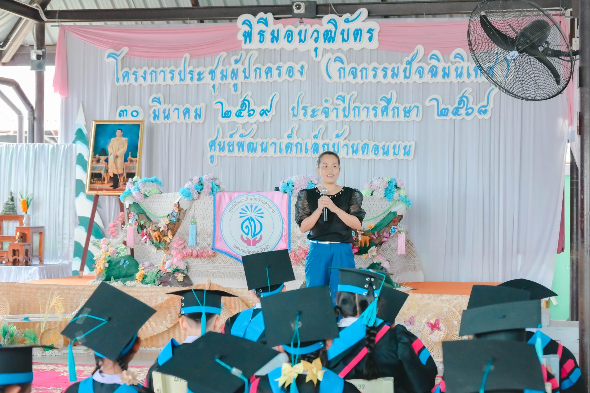 ศูนย์พัฒนาเด็กเล็กบ้านดอนบน จัดพิธีมอบวุฒิบัตรโครงการประชุมผู้ปกครอง (กิจกรรมปัจฉิมนิเทศ) โดยได้รับเกียรติจากนายปภังกร เจริญสมบัติ ผู้อำนวยการกองการศึกษา เป็นประธานในพิธีเปิด นางสาวเสาวลักษณ์ บุญเพียร ครู รักษาการในตำแหน่งผู้อำนวยการศูนย์พัฒนาเด็กเล็กบ้านดอนบน กล่าวรายงานวัตถุประสงค์ของโครงการ พร้อมด้วยสมาชิกสภาเทศบาล ผู้ปกครอง คณะครู และนักเรียน เข้าร่วมกิจกรรม ณ ศูนย์พัฒนาเด็กเล็กบ้านดอนบน