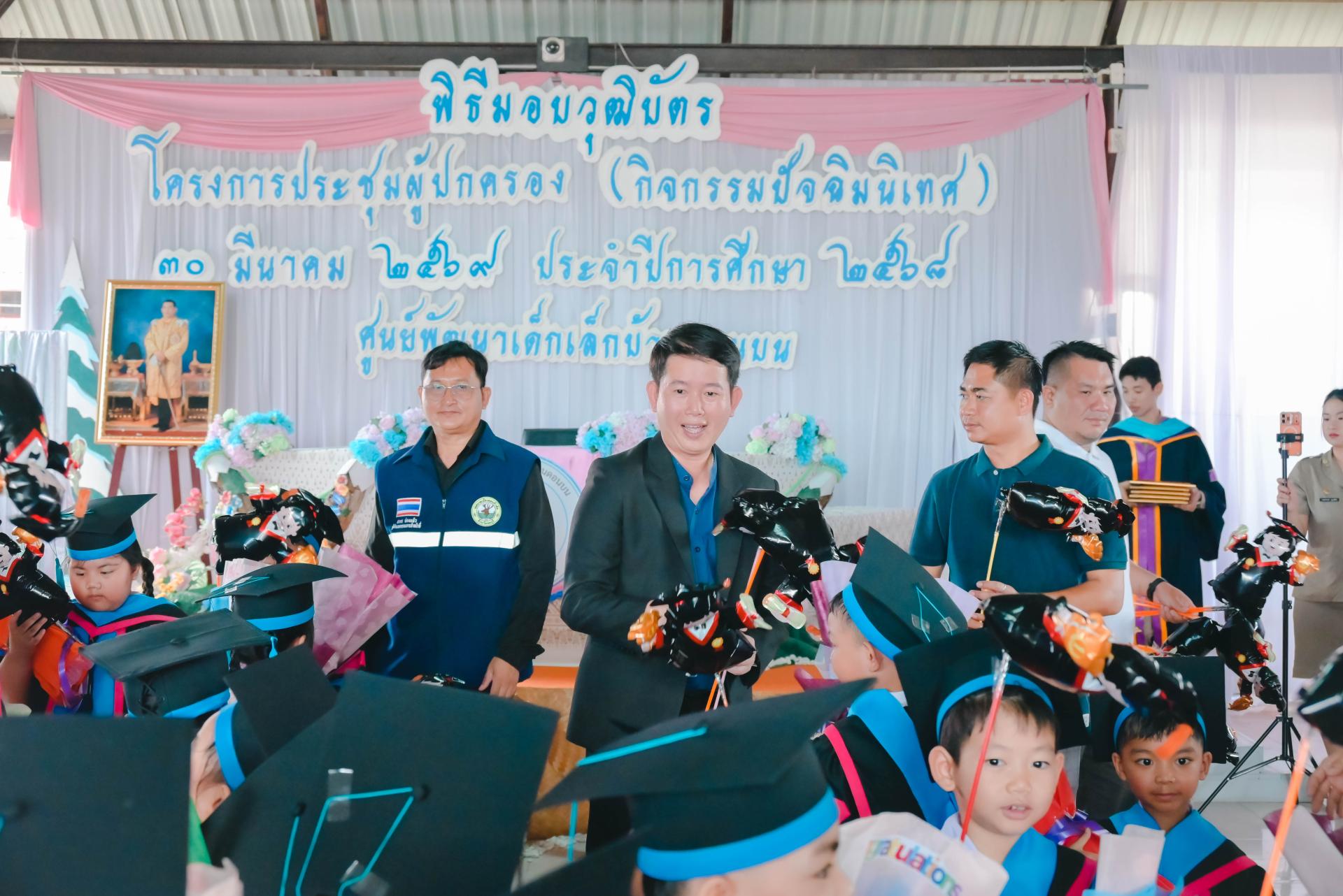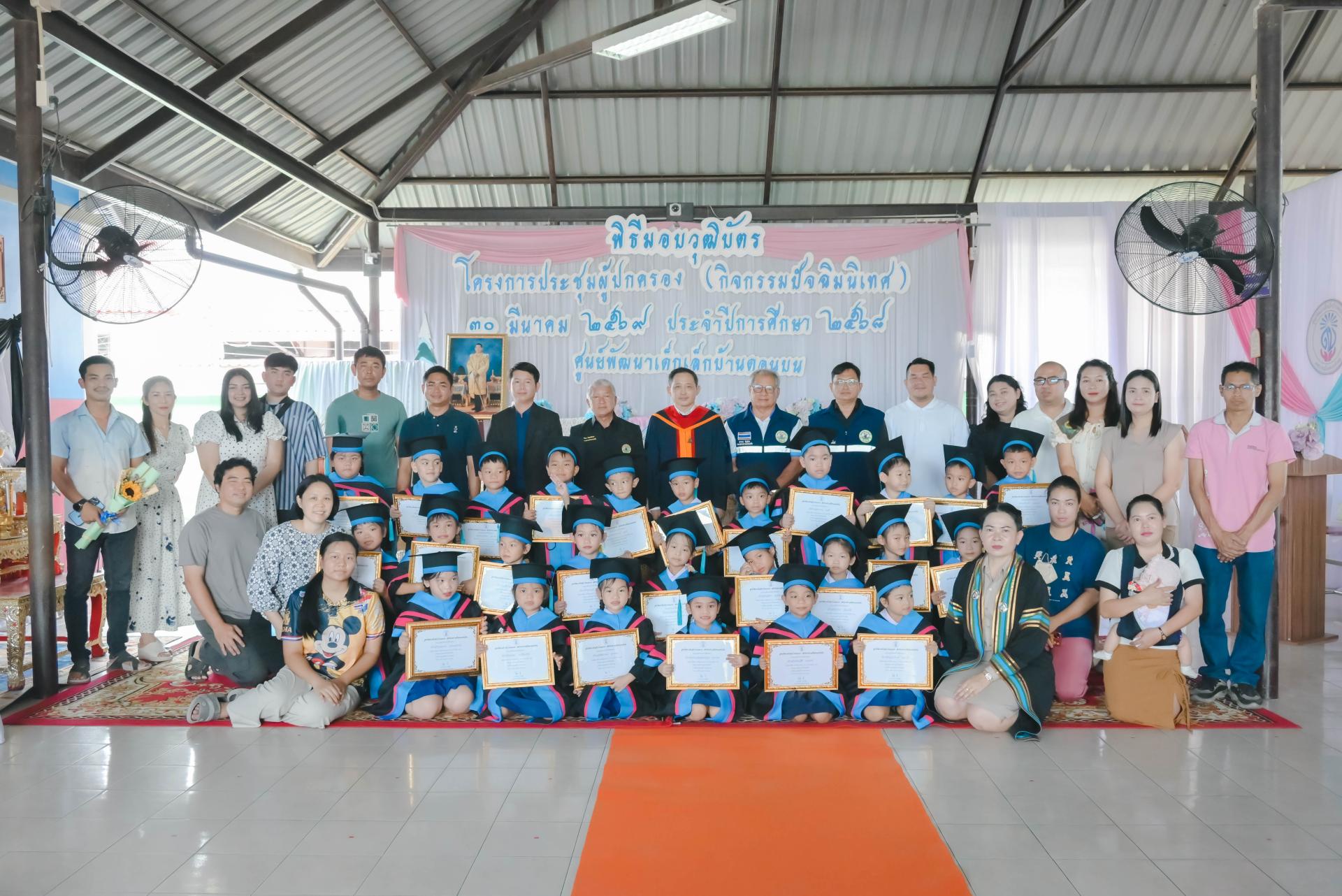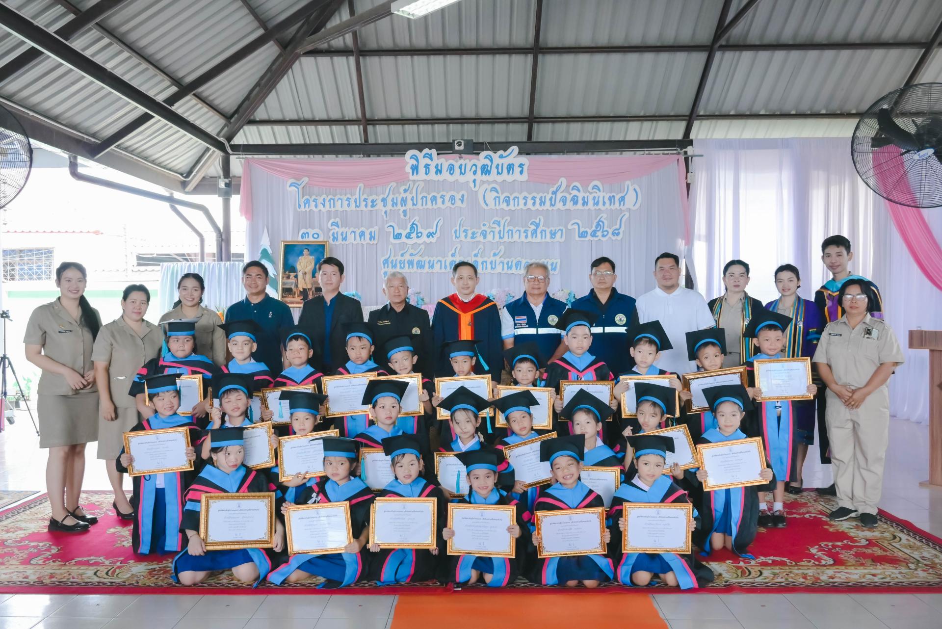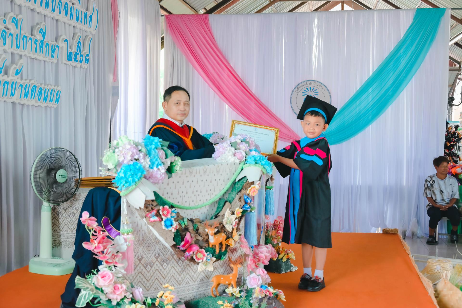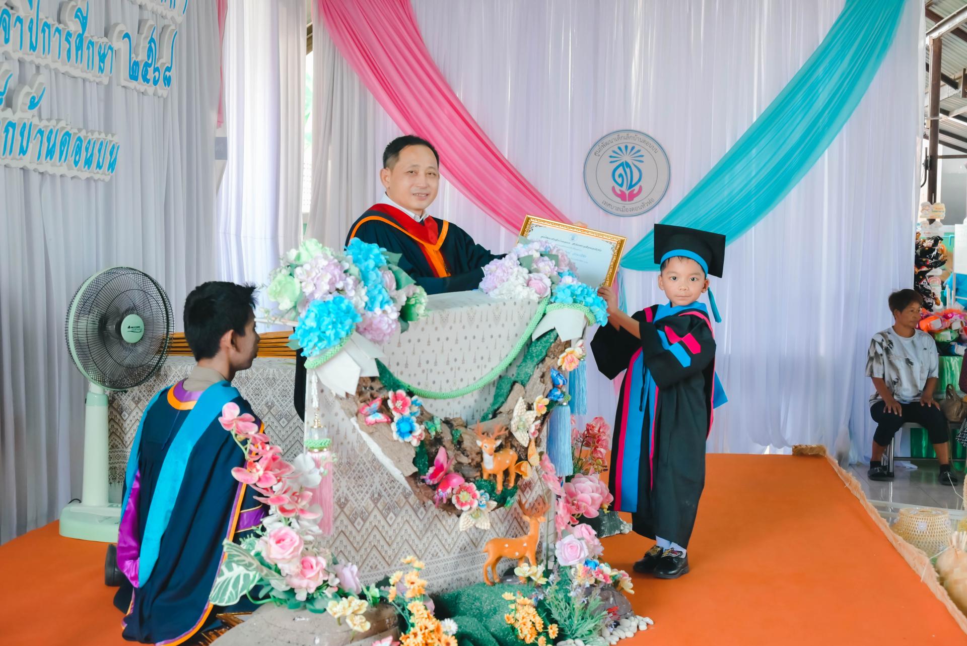 ศูนย์พัฒนาเด็กเล็กบ้านดอนบน จัดพิธีมอบวุฒิบัตรโครงการประชุมผู้ปกครอง (กิจกรรมปัจฉิมนิเทศ) โดยได้รับเกียรติจากนายปภังกร เจริญสมบัติ ผู้อำนวยการกองการศึกษา เป็นประธานในพิธีเปิด นางสาวเสาวลักษณ์ บุญเพียร ครู รักษาการในตำแหน่งผู้อำนวยการศูนย์พัฒนาเด็กเล็กบ้านดอนบน กล่าวรายงานวัตถุประสงค์ของโครงการ พร้อมด้วยสมาชิกสภาเทศบาล ผู้ปกครอง คณะครู และนักเรียน เข้าร่วมกิจกรรม ณ ศูนย์พัฒนาเด็กเล็กบ้านดอนบน
