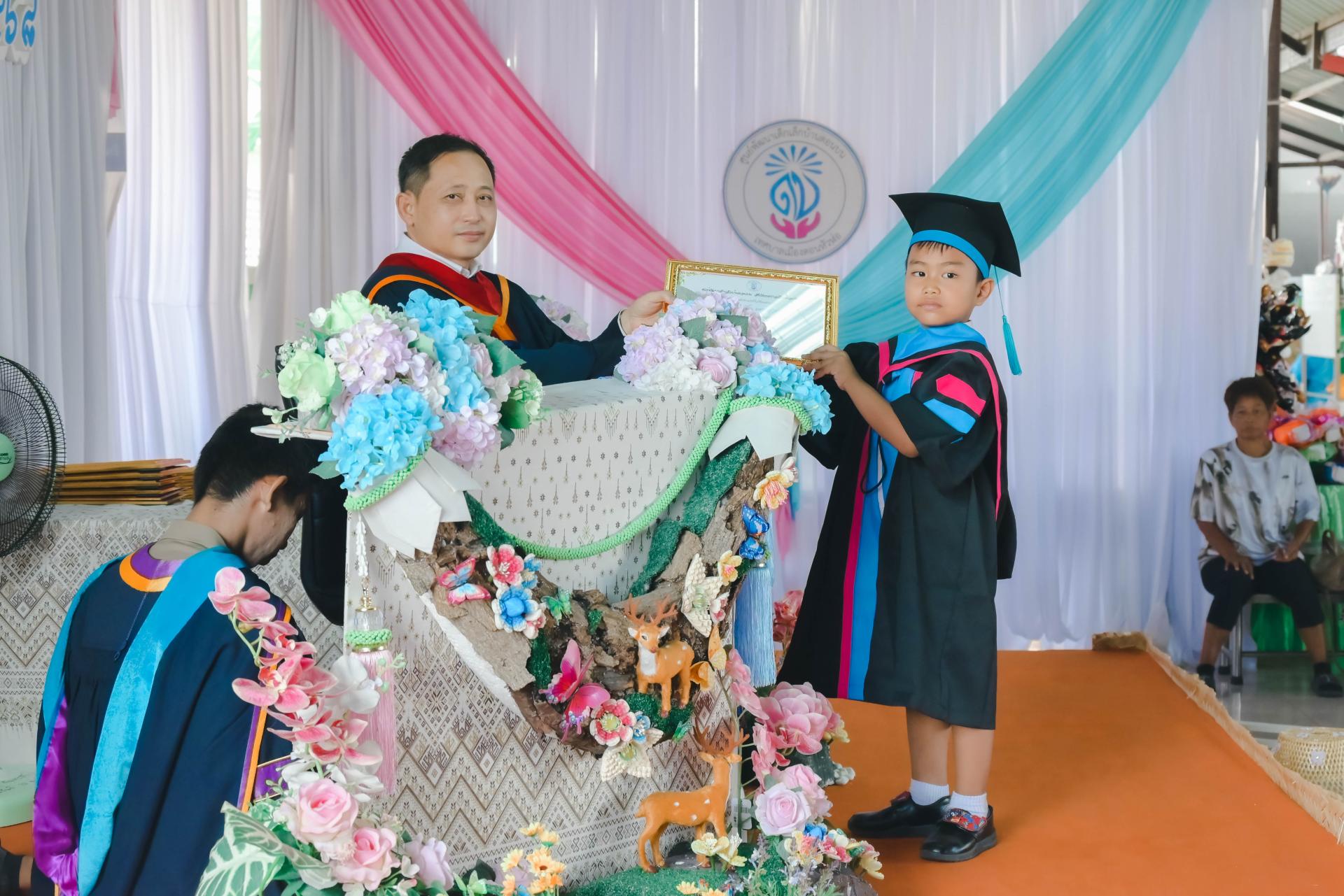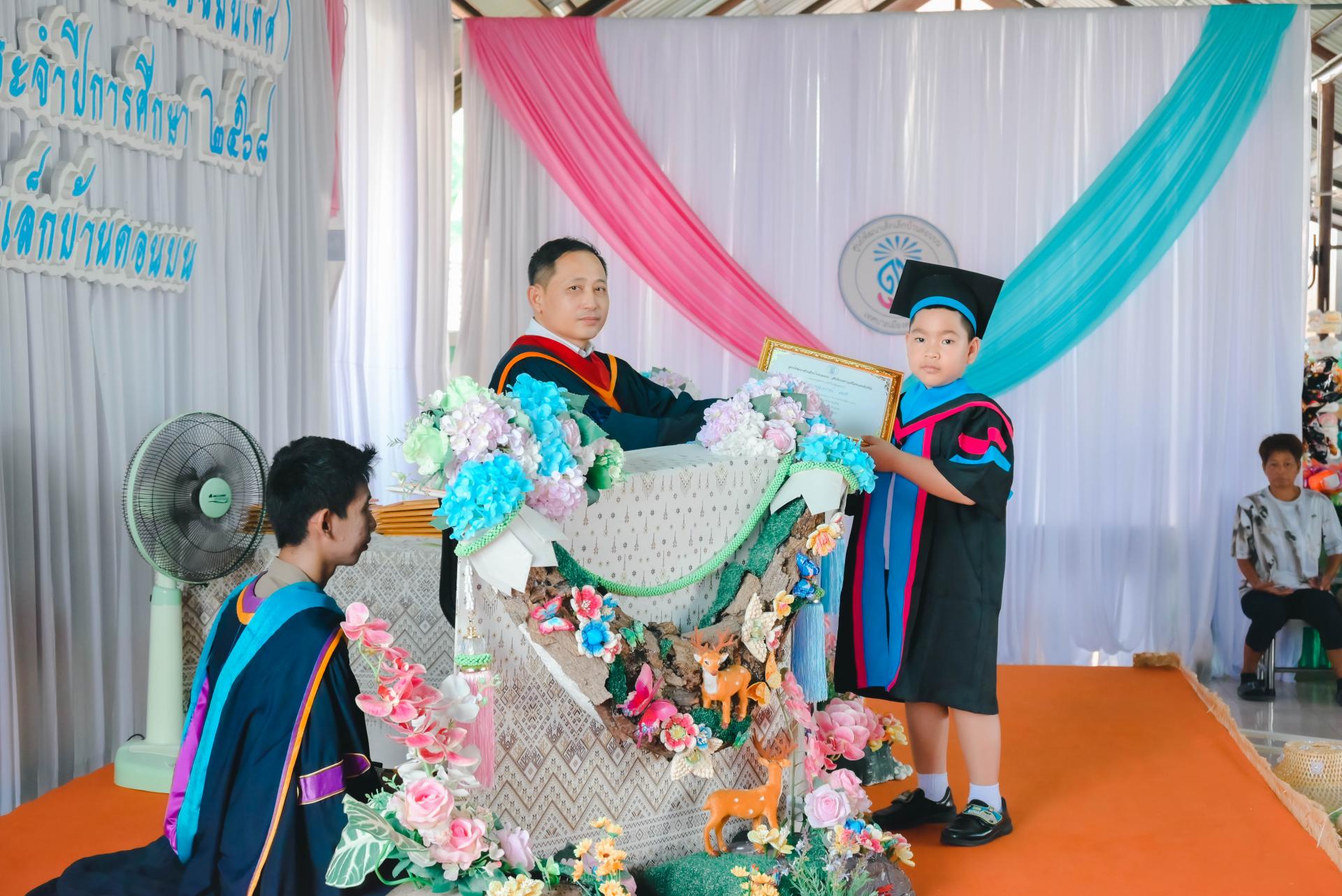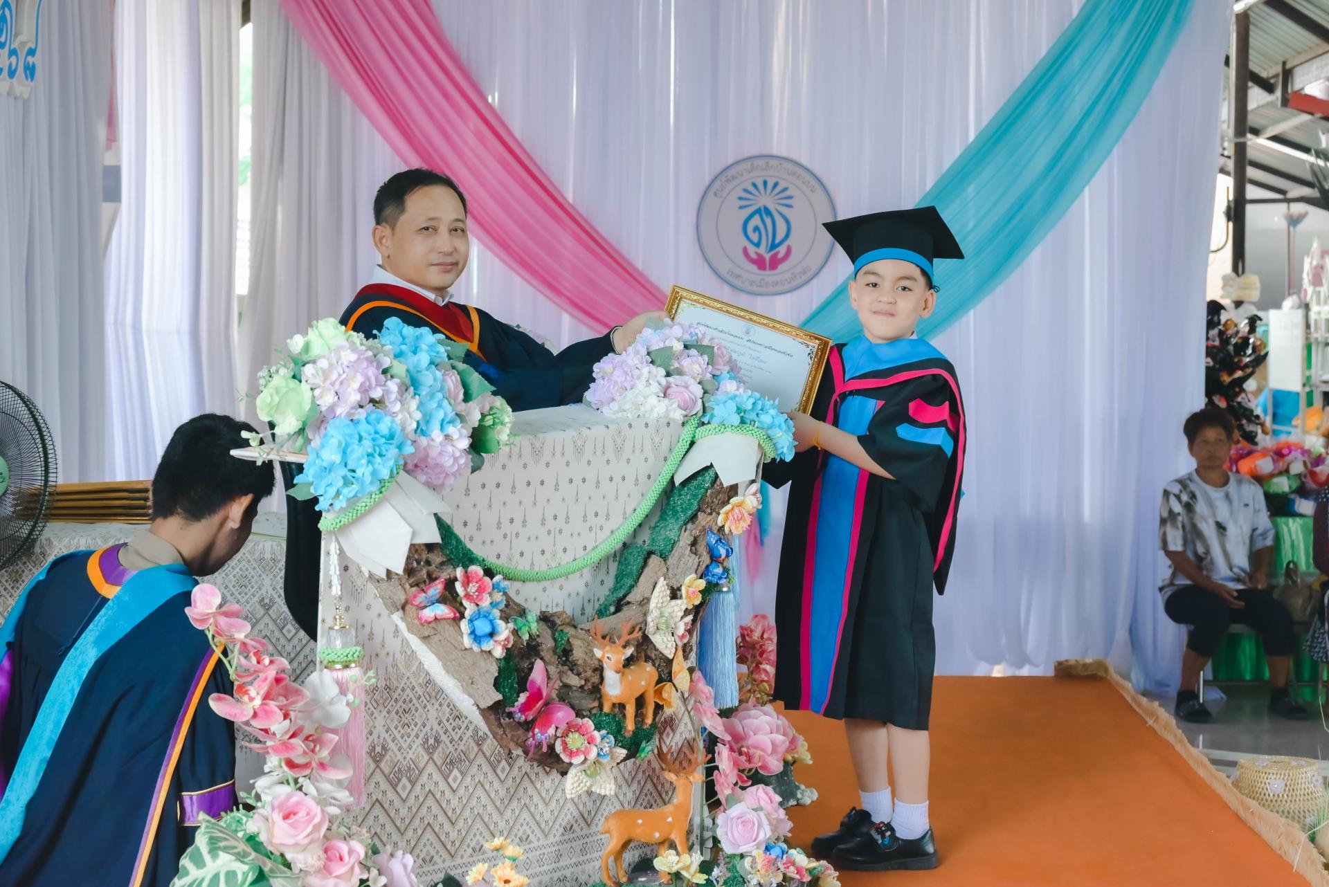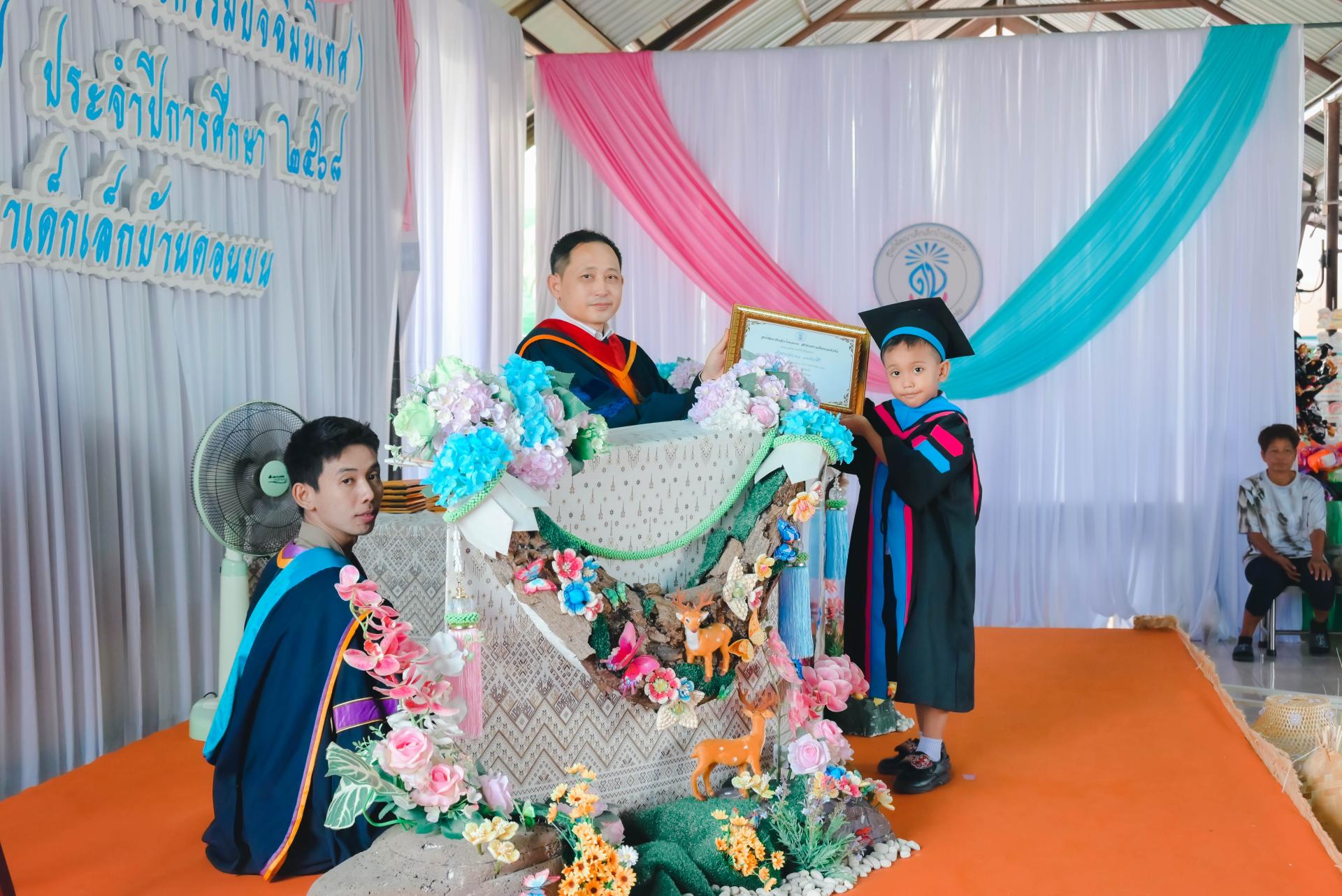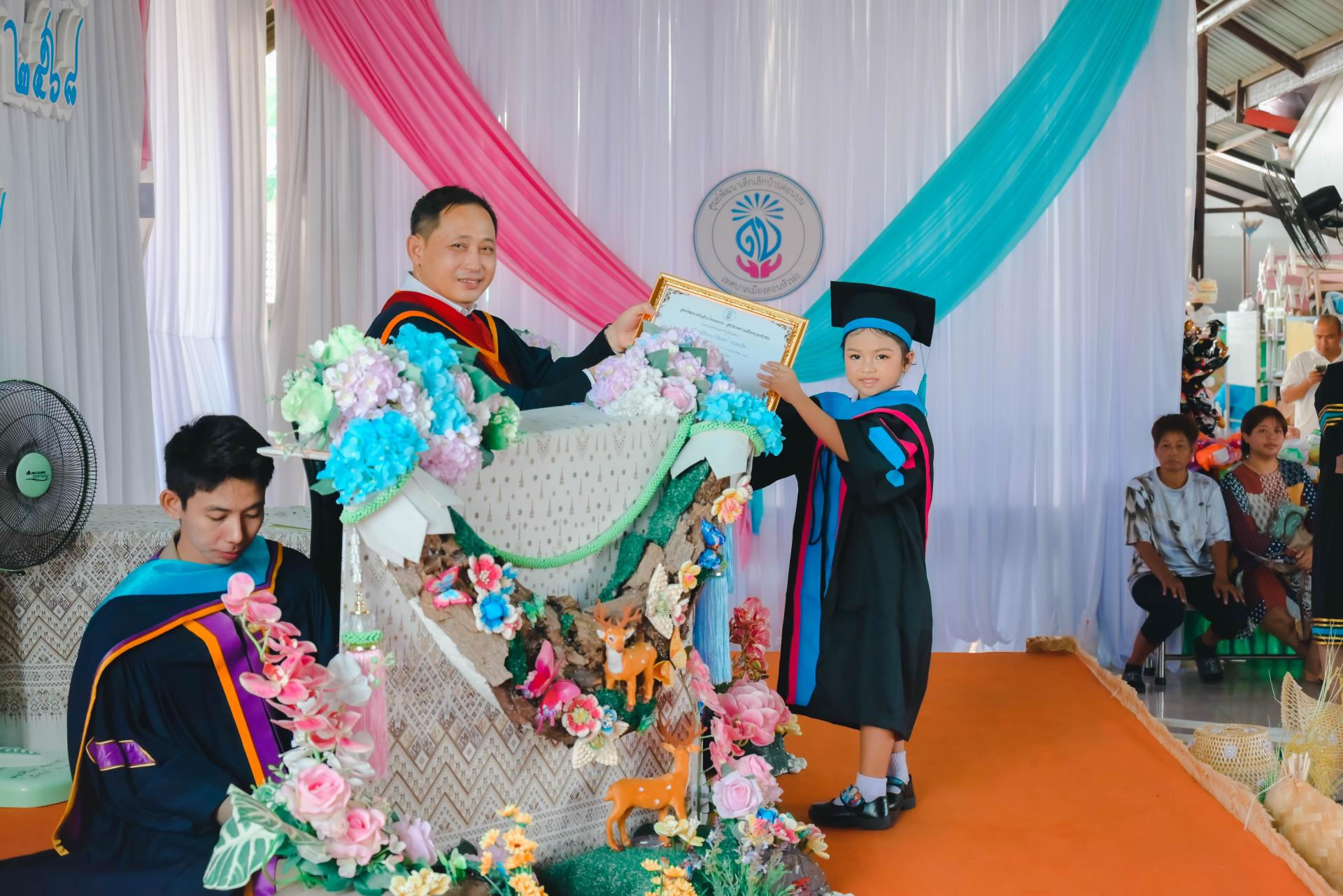 ศูนย์พัฒนาเด็กเล็กบ้านดอนบน จัดพิธีมอบวุฒิบัตรโครงการประชุมผู้ปกครอง (กิจกรรมปัจฉิมนิเทศ) โดยได้รับเกียรติจากนายปภังกร เจริญสมบัติ ผู้อำนวยการกองการศึกษา เป็นประธานในพิธีเปิด นางสาวเสาวลักษณ์ บุญเพียร ครู รักษาการในตำแหน่งผู้อำนวยการศูนย์พัฒนาเด็กเล็กบ้านดอนบน กล่าวรายงานวัตถุประสงค์ของโครงการ พร้อมด้วยสมาชิกสภาเทศบาล ผู้ปกครอง คณะครู และนักเรียน เข้าร่วมกิจกรรม ณ ศูนย์พัฒนาเด็กเล็กบ้านดอนบน