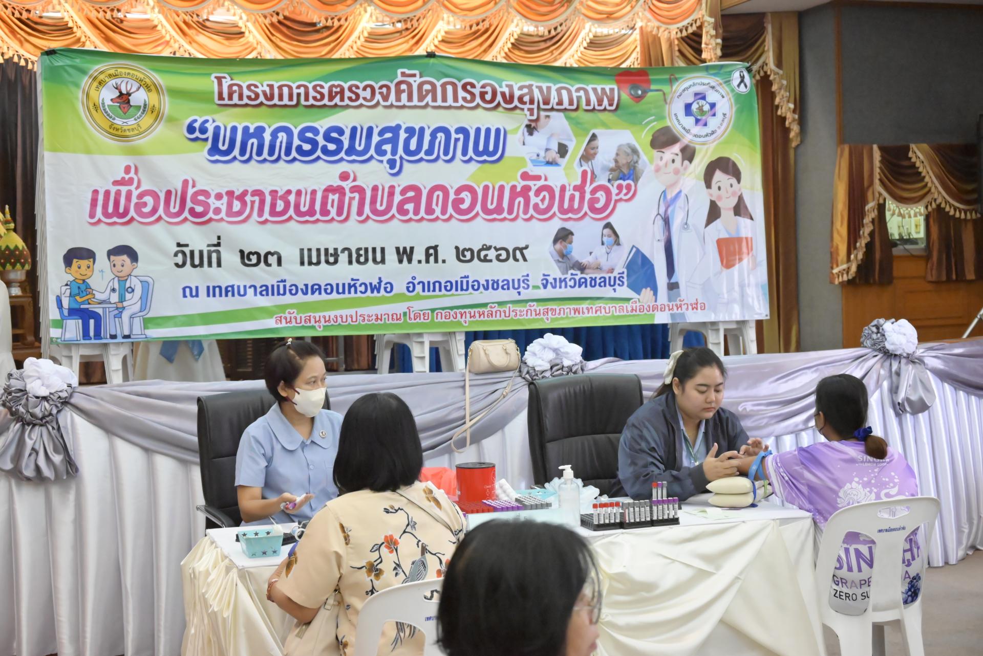 เทศบาลเมืองดอนหัวฬ่อ โดยงานศูนย์บริการสาธารณสุข กองสาธารณสุขและสิ่งแวดล้อม ร่วมกับโรงพยาบาลชลบุรี ให้บริการตรวจคัดกรองสุขภาพแก่ประชาชนในพื้นที่ตำบลดอนหัวฬ่อ ตามโครงการตรวจคัดกรองสุขภาพ “มหกรรมสุขภาพเพื่อประชาชนตำบลดอนหัวฬ่อ” ประจำปีงบประมาณ 2569 กิจกรรมในครั้งนี้มีประชาชนเข้ารับบริการตรวจสุขภาพ จำนวน 124 คน