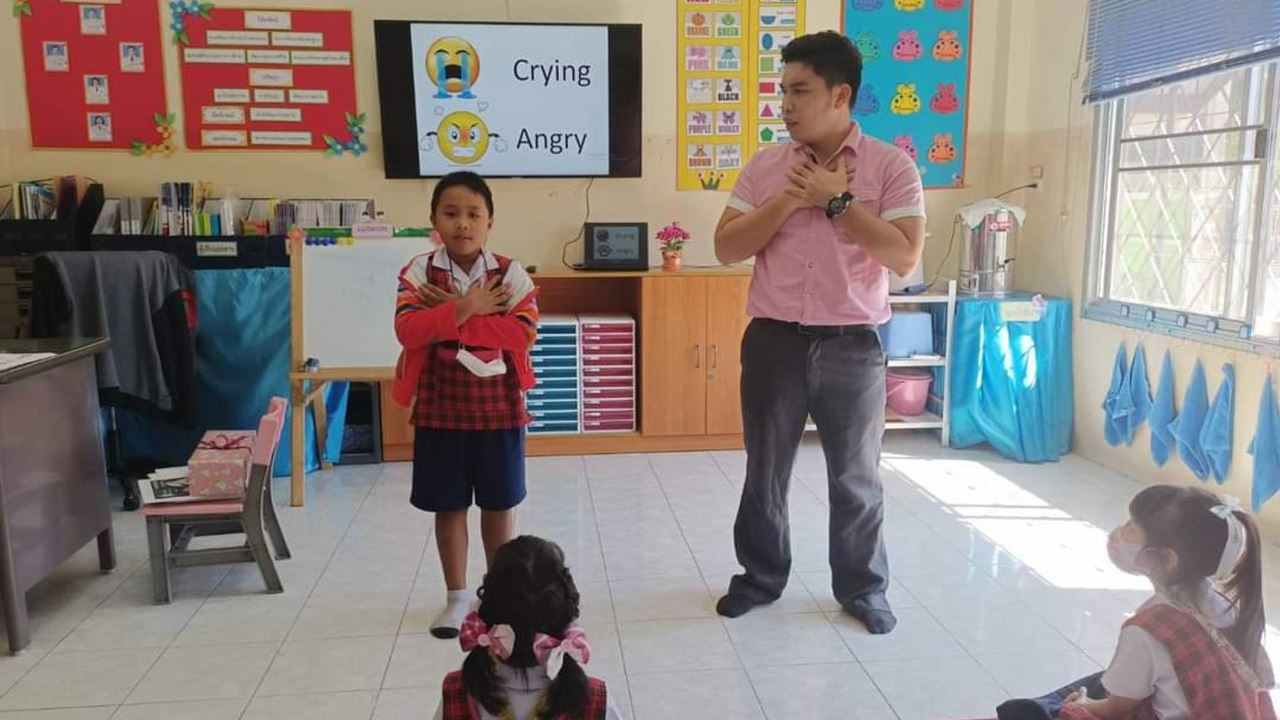 นักเรียนศูนย์พัฒนาเด็กเล็กบ้านดอนบน ได้เรียนรู้ภาษาอังกฤษ โดยครูชาวต่างชาติ ตามนโยบายนายกเทศมนตรีตำบลดอนหัวฬ่อ ด้านที่ 2 การพัฒนาส่งเสริมและสนับสนุนการจัดการเรียนการสอนภาษาอังกฤษเพื่อการสื่อสาร โดยครูชาวต่างชาติอย่างพอเพียงและทั่วถึงในทุกระดับชั้น เด็กปฐมวัยอายุ 3-5 ปี กล้าแสดงออกในการสื่อสารภาษาอังกฤษเพิ่มมากยิ่งขึ้น ให้ความร่วมมือ และตั้งใจทำกิจกรรมด้วยความสนุกสนานสมวัย
