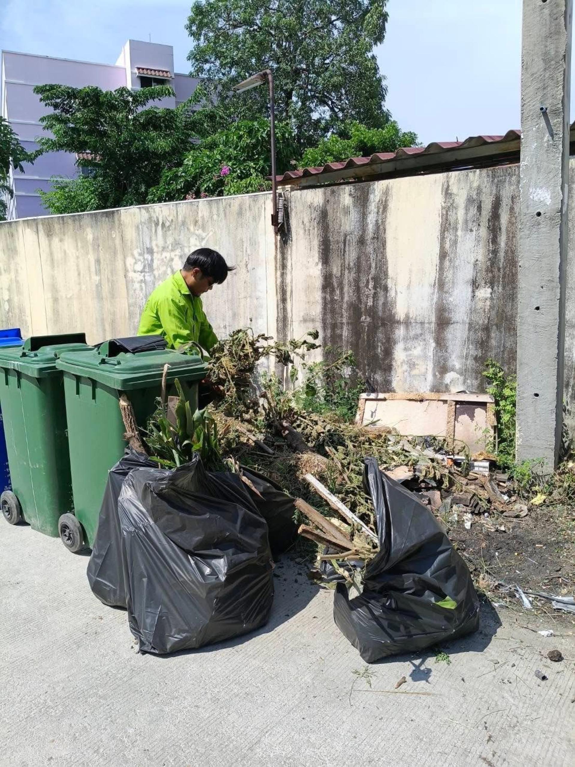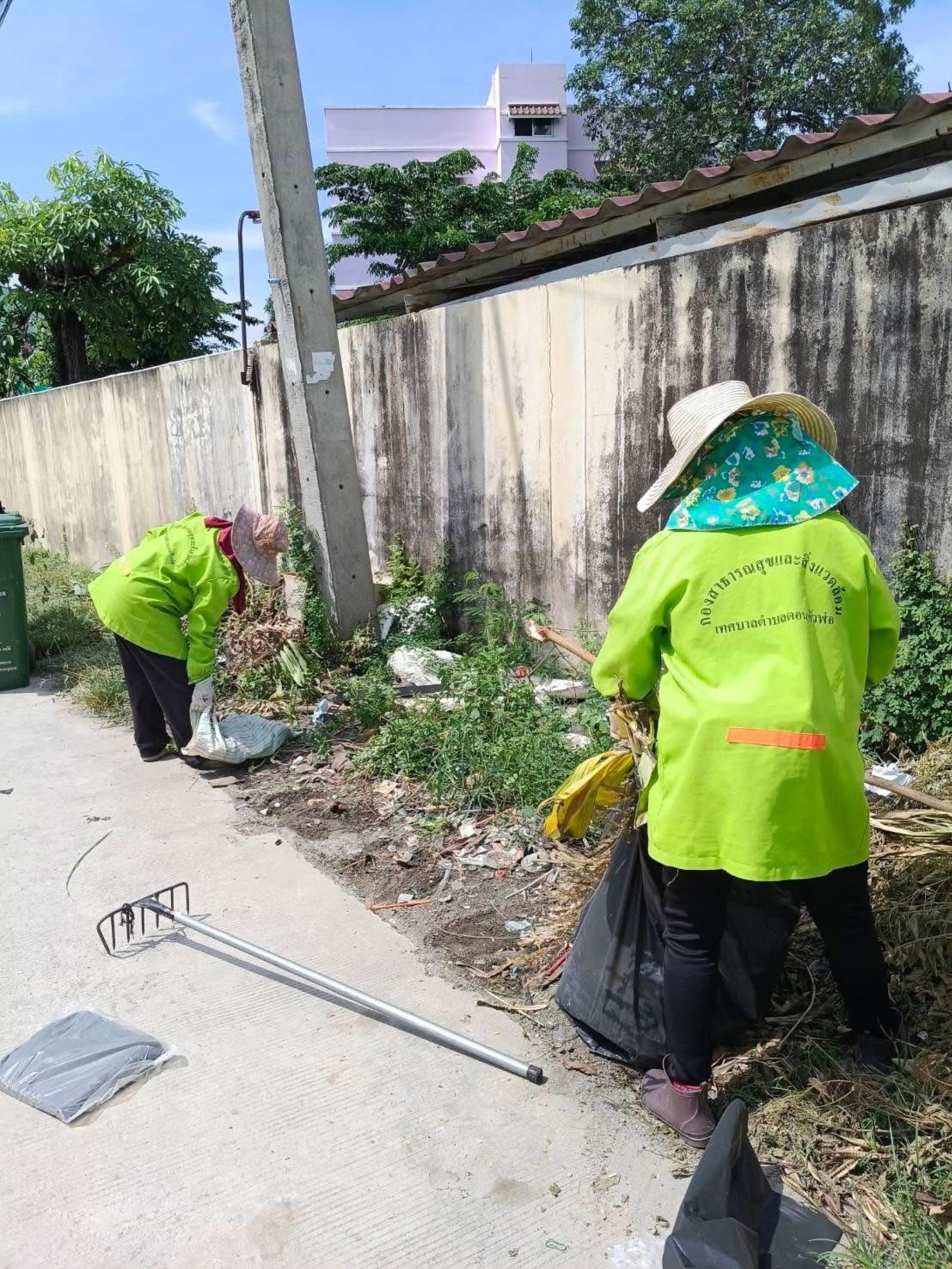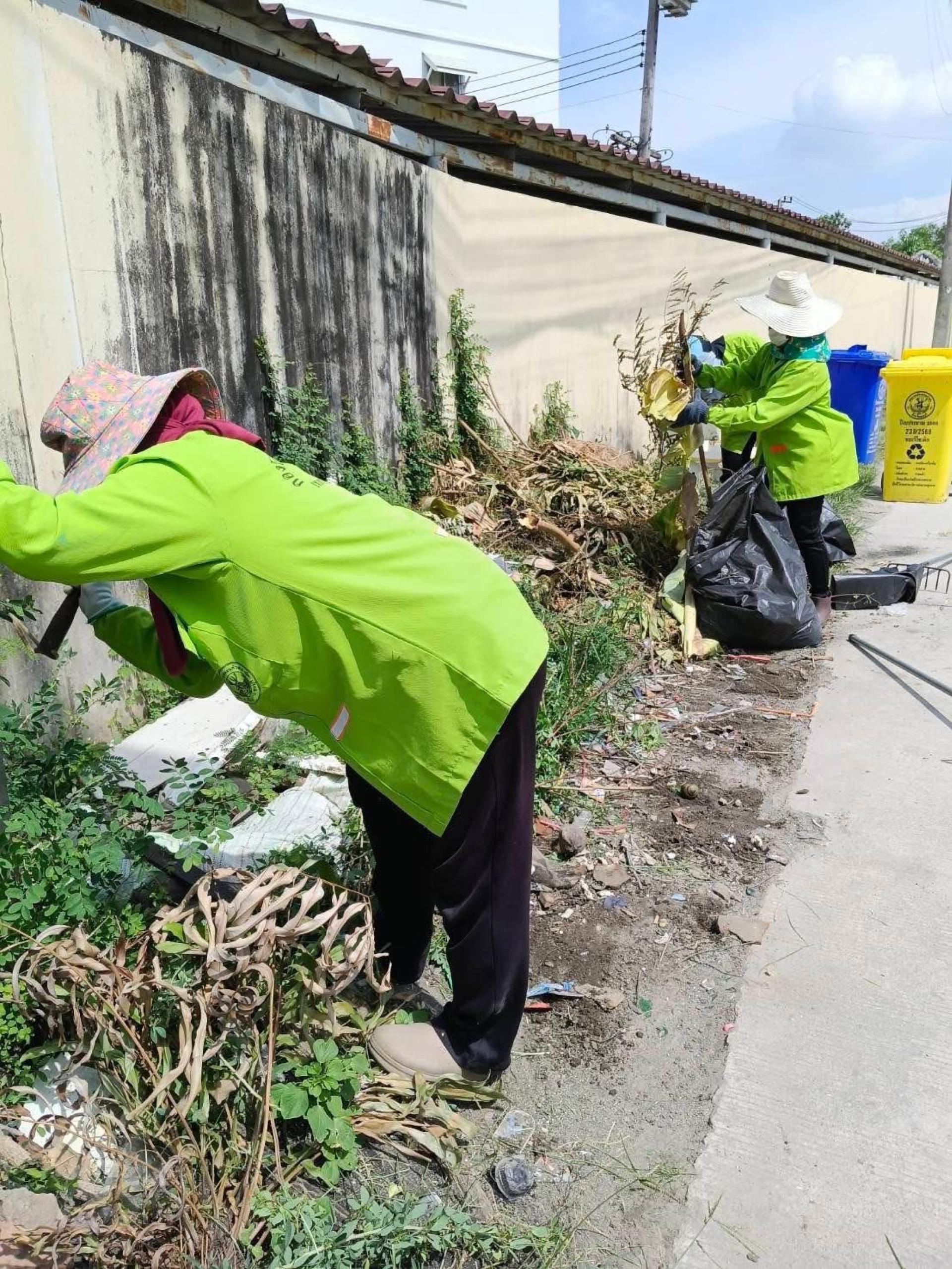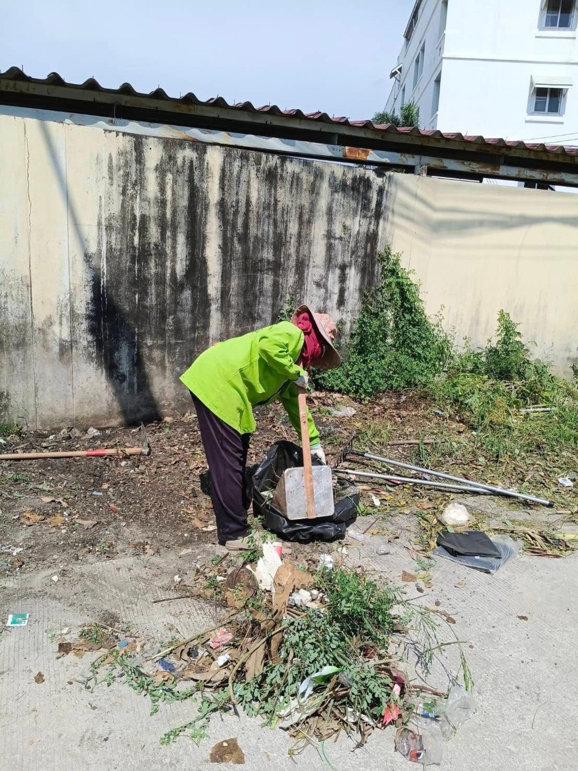 กองสาธารณสุขและสิ่งแวดล้อม ฝ่ายจัดการมูลฝอยและสิ่งปฏิกูล ดำเนินการปรับปรุงภูมิทัศน์ บริเวณจุดตั้งถังรองรับมูลฝอย บริเวณถนนดอนหัวฬ่อ 16/1 (ซอยหนองปักษี) ดำเนินการเก็บกิ่งไม้และดำเนินการทำความสะอาด