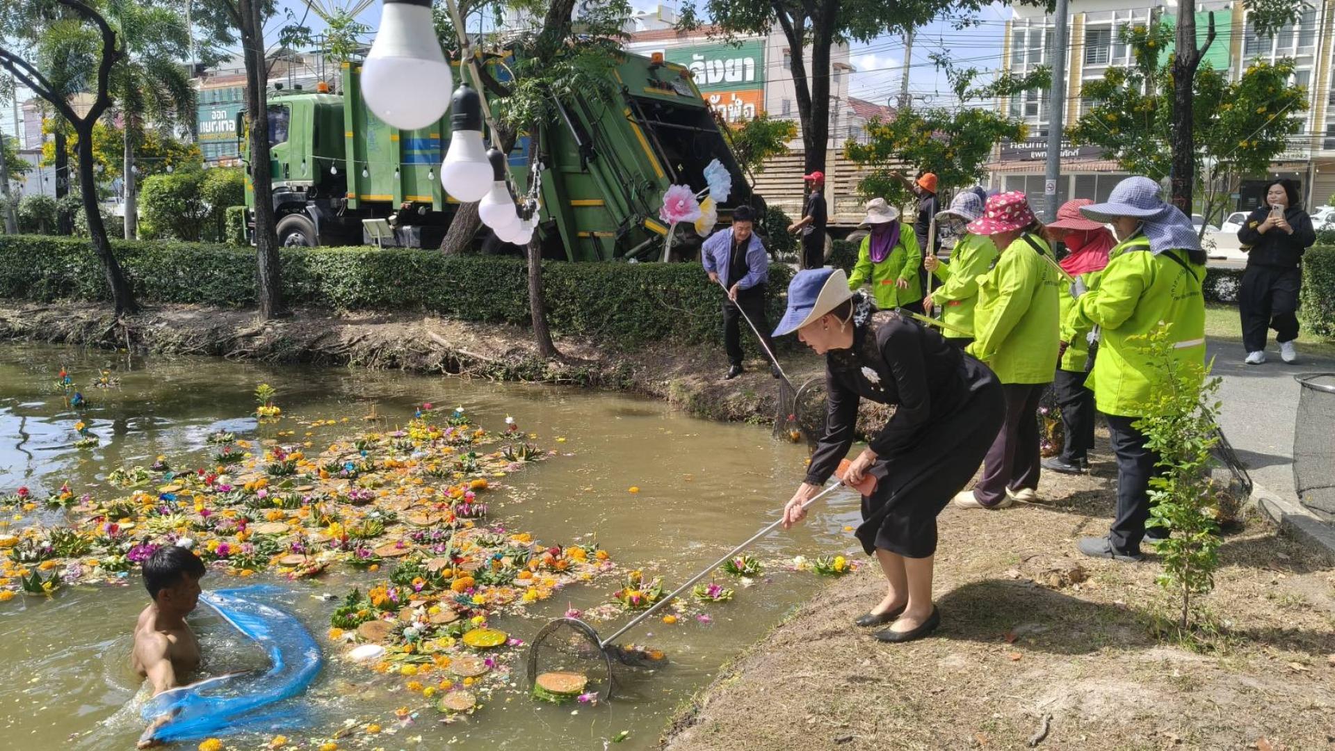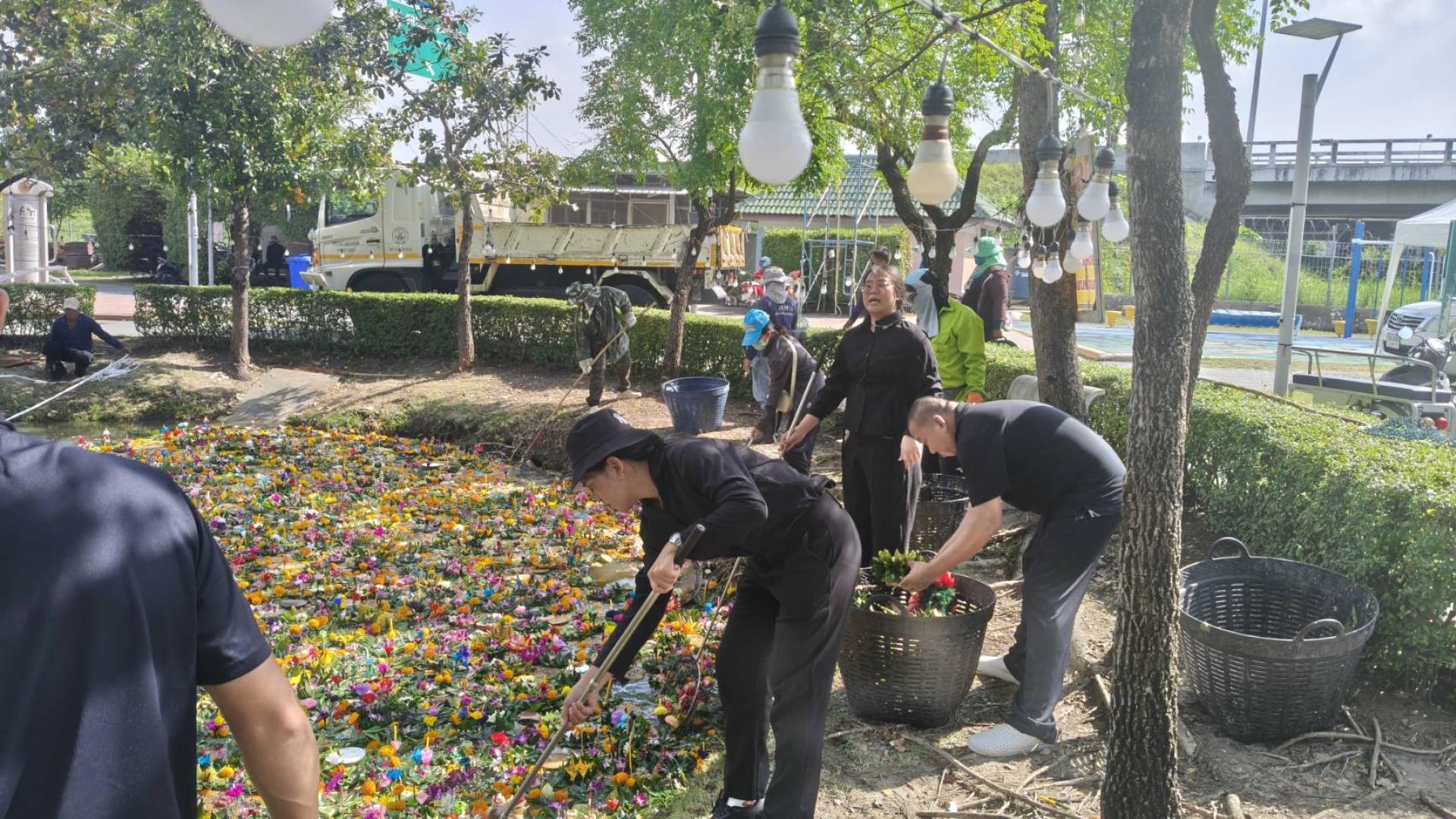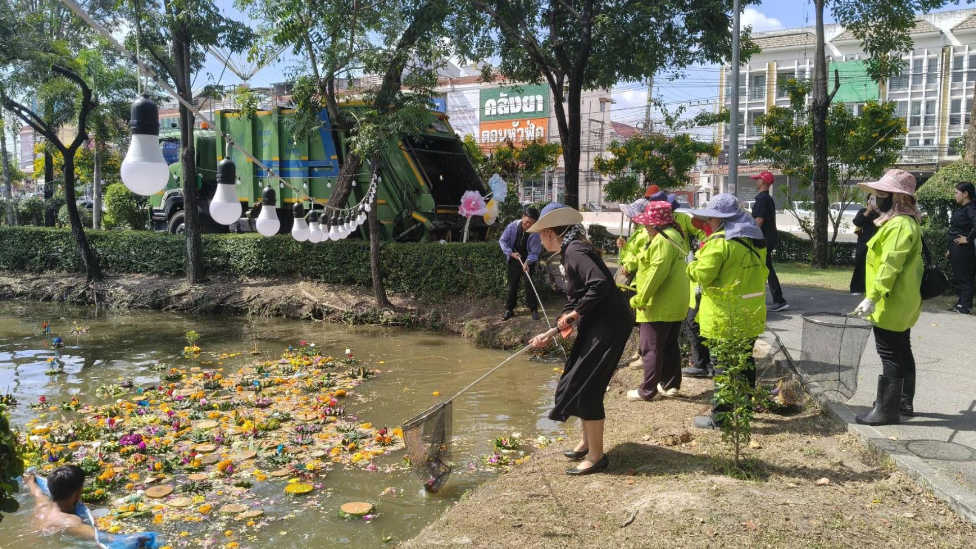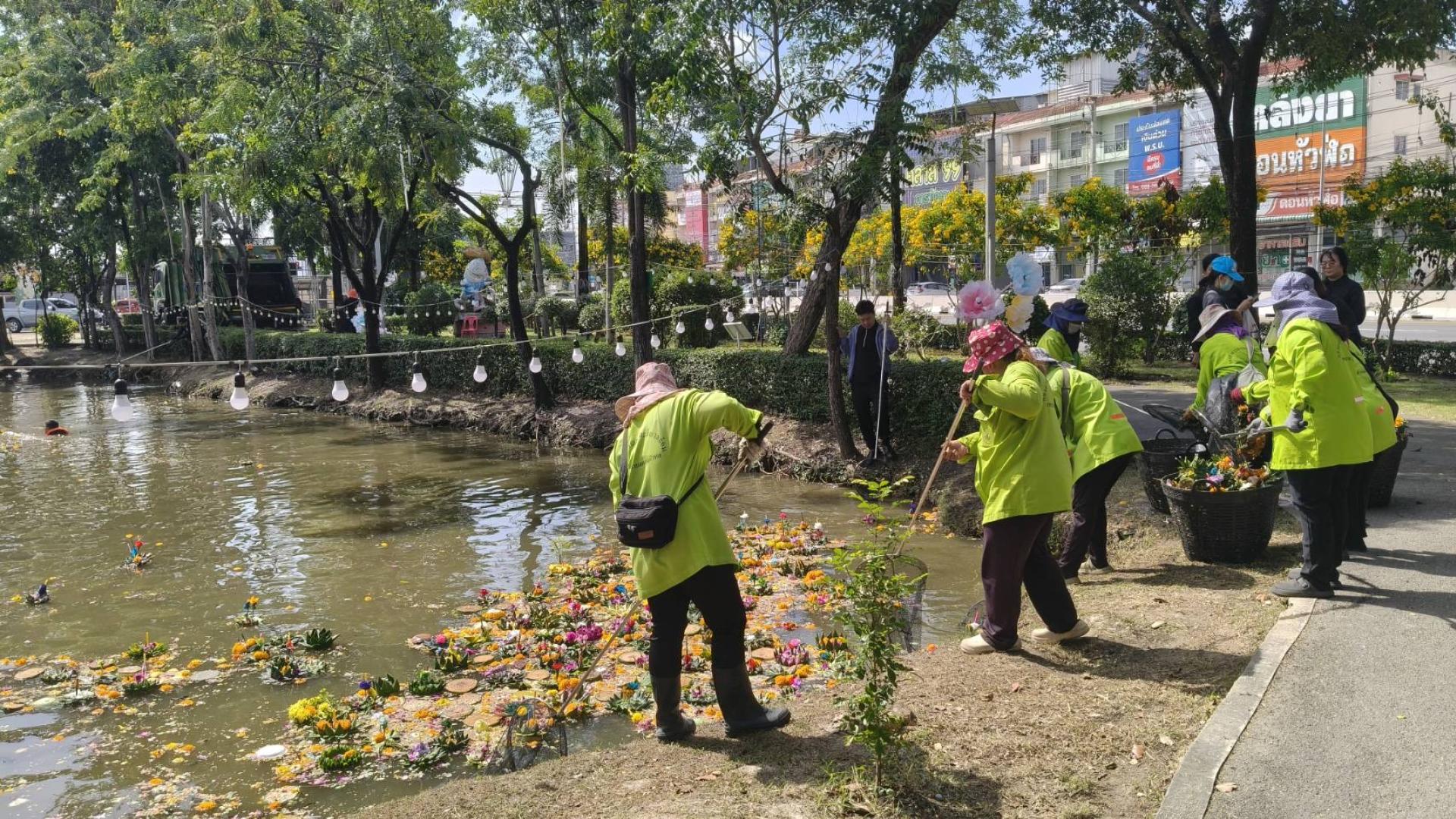 นายไมตรี ประเสริฐ นายกเทศมนตรีเมืองดอนหัวฬ่อ มอบหมายให้กองช่าง และกองสาธารณสุขและสิ่งแวดล้อม เทศบาลเมืองดอนหัวฬ่อ ลงพื้นที่ทำความสะอาดภายในสวนสุขภาพ หมู่ที่ 4 หลังจากเสร็จสิ้นการจัดงานประเพณีลอยกระทง โดยมีผู้อำนวยการกองช่าง และผู้อำนวยการกองสาธารณสุขและสิ่งแวดล้อม พร้อมด้วยเจ้าหน้าที่กองช่าง เจ้าหน้าที่กองสาธารณสุขและสิ่งแวดล้อม เจ้าหน้าที่ป้องกันฯ และเจ้าหน้าที่เทศกิจ ร่วมกันเก็บขยะและกระทงในสระน้ำ ทำความสะอาดพื้นที่โดยรอบ และฉีดล้างบริเวณล็อกขายของภายในงาน เพื่อคืนความสะอาด และความเป็นระเบียบเรียบร้อยให้กับพื้นที่สาธารณะ