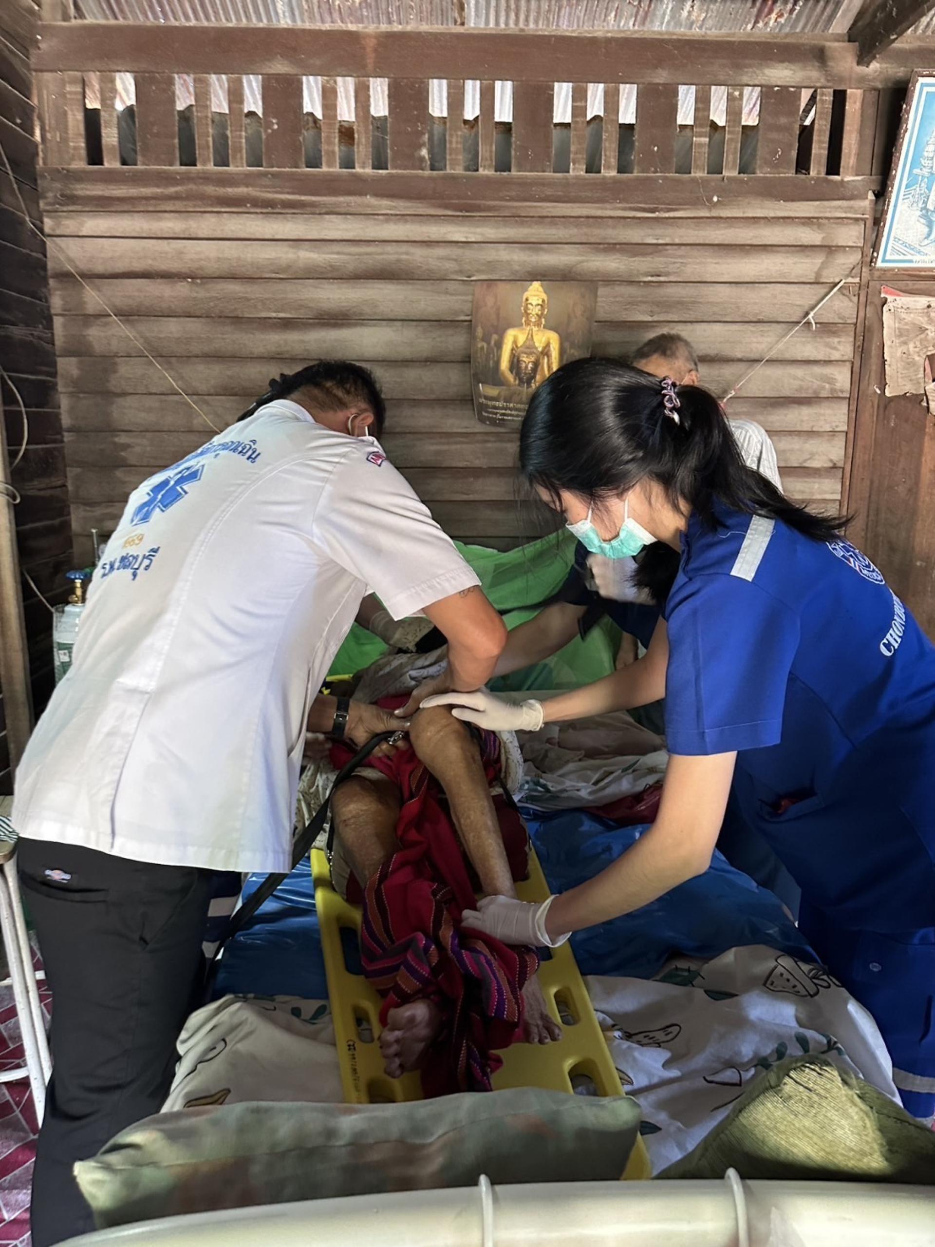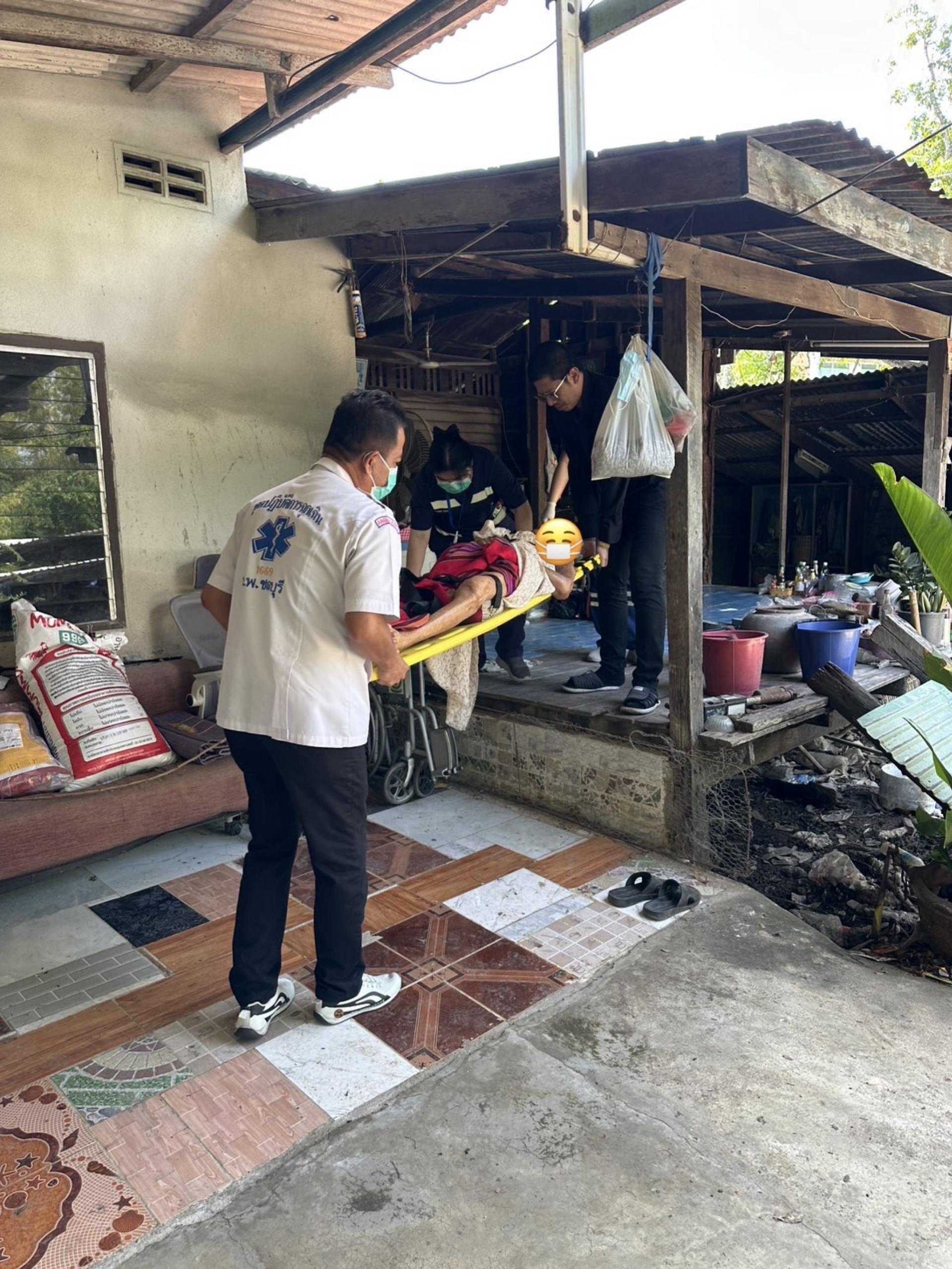 จนท.ศูนย์บริการสาธารณสุขฯ ได้ให้การช่วยเหลือปฐมพยาบาลเบื้องต้นผู้ป่วยที่มีภาวะอุดกลั้นทางเดินหายใจ พร้อมประสาน 1669 เพื่อนำผู้ป่วยส่งโรงพยาบาลชลบุรีต่อไป