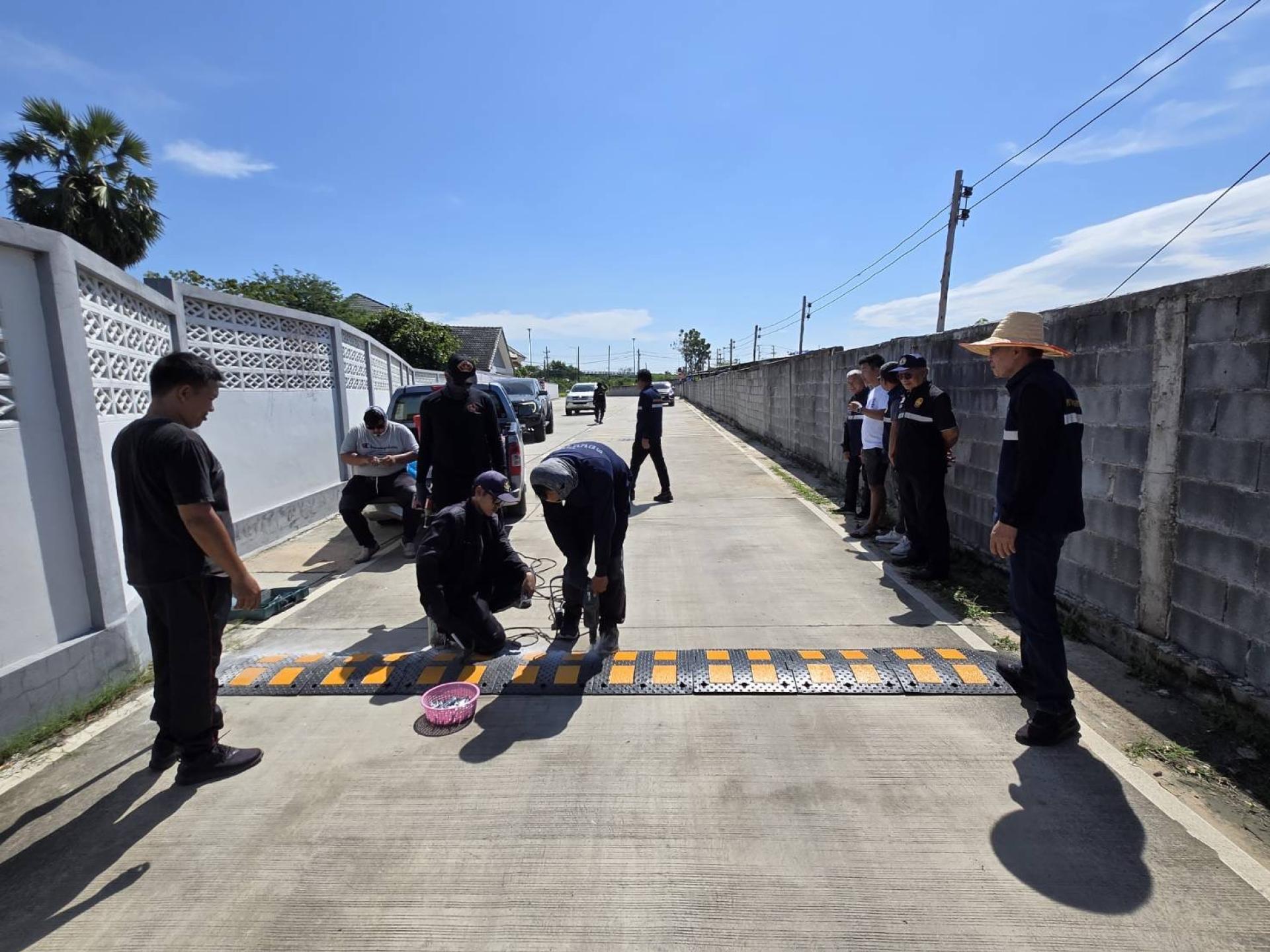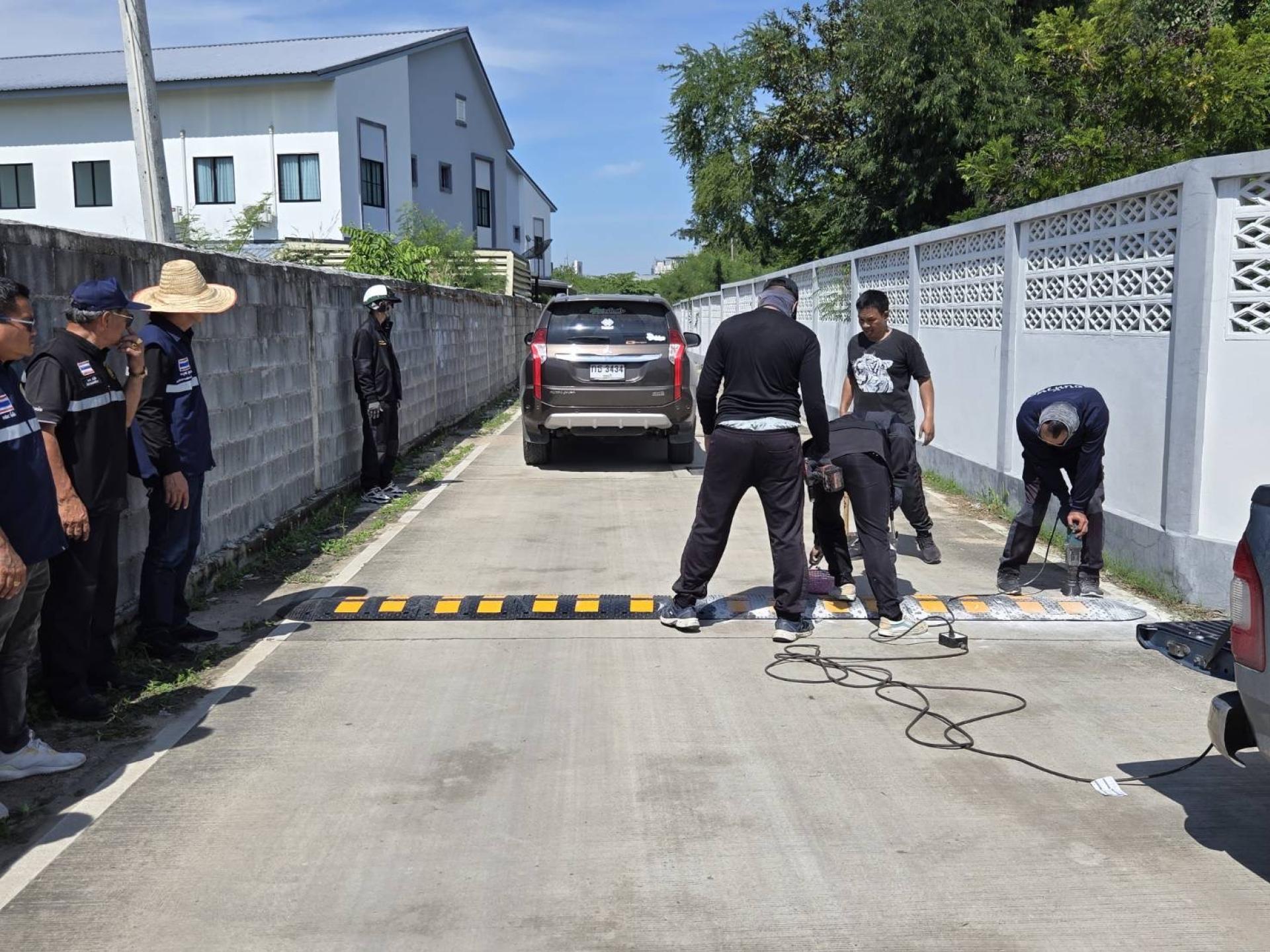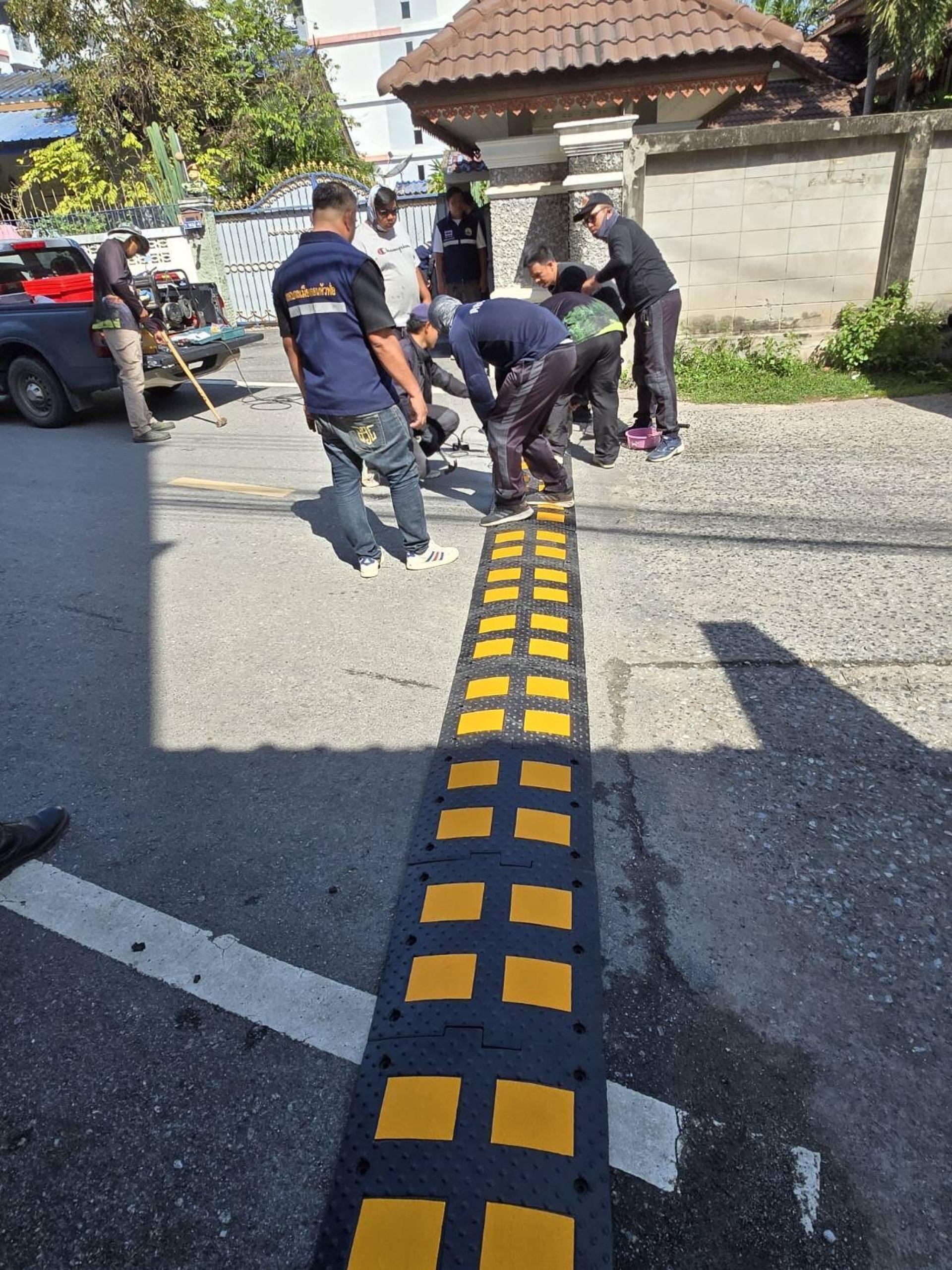 เจ้าหน้าที่เทศกิจและเจ้าหน้าที่ป้องกันพร้อมด้วยคณะสมาชิกสภาผู้แทนเทศบาล ลงพื้นที่ติดตั้งเนินชะลอความเร็ว เพื่อป้องกันและลดอัตราการเกิดอุบัติเหตุภายในซอยสาเหตุจากการขับขี่ที่ใช้ความเร็วในเขตชุมชน หมู่บ้าน และ ซอยคับแคบ หลายจุดดังนี้