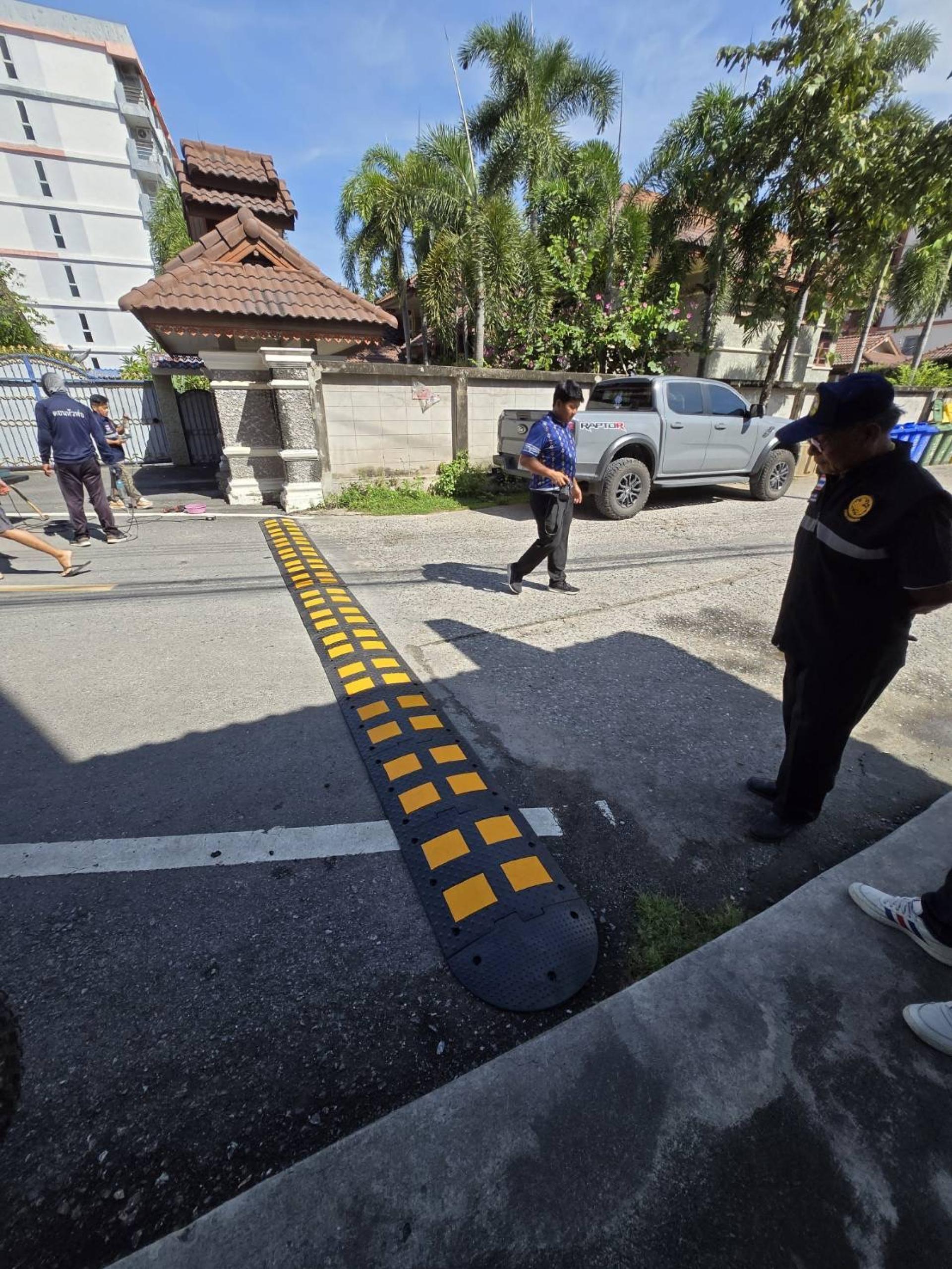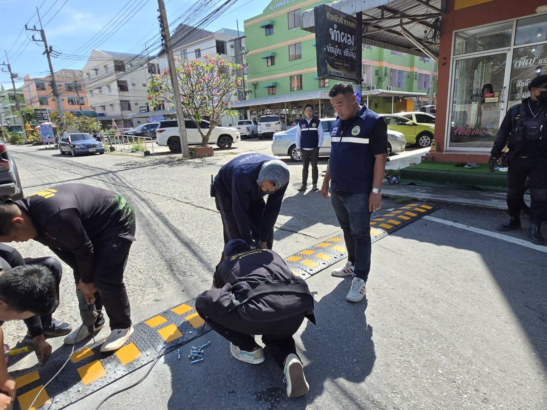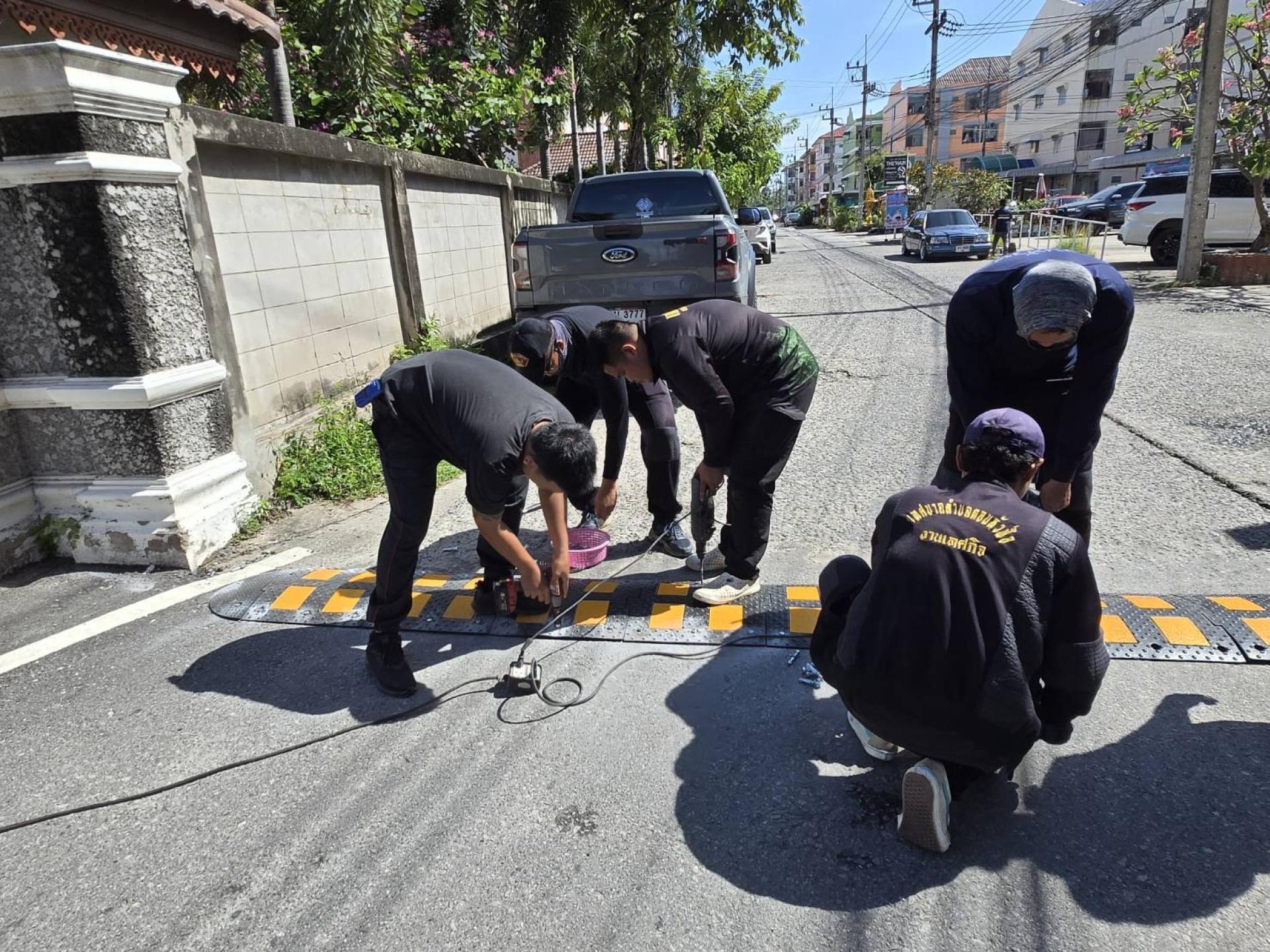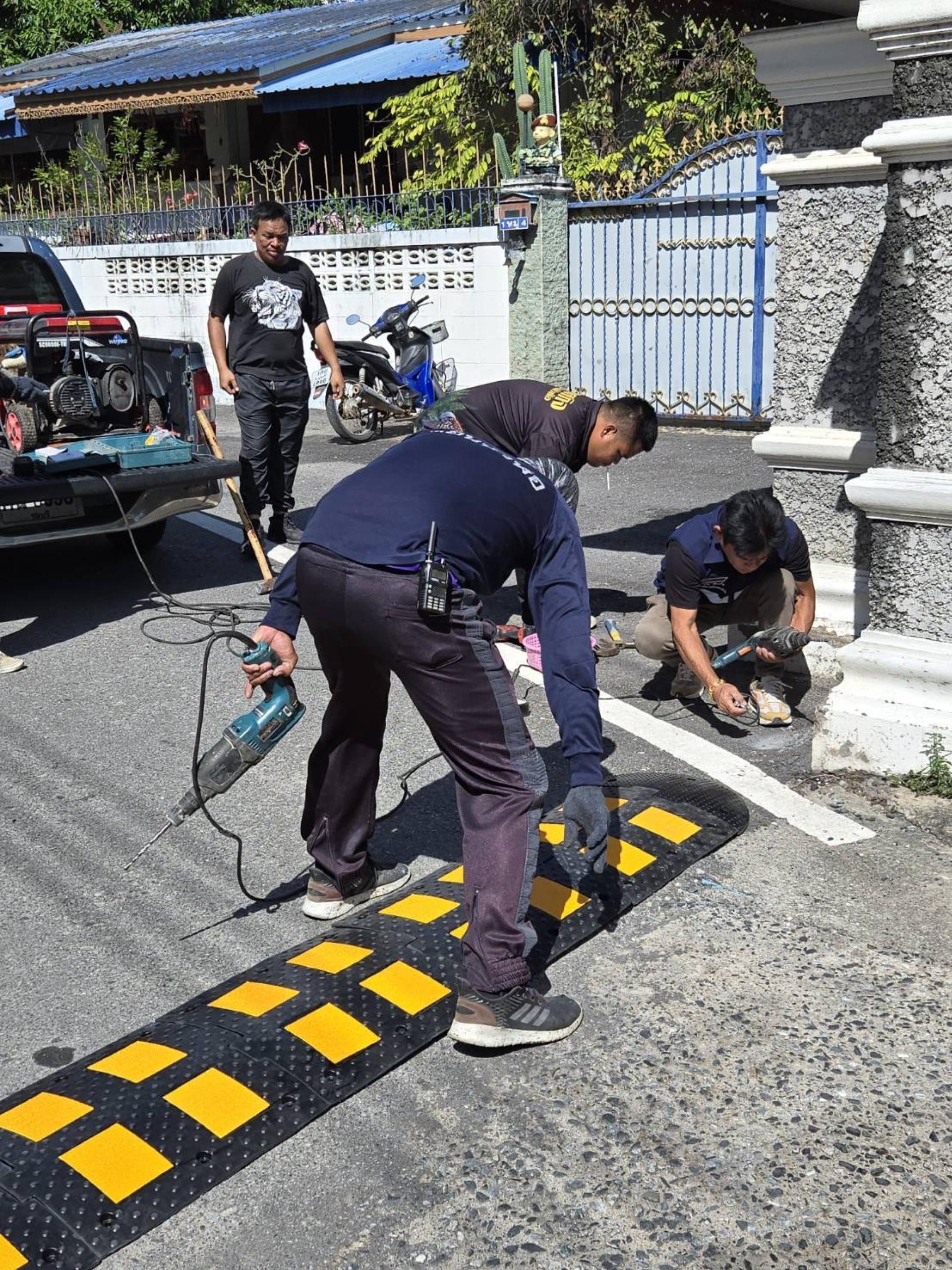 เจ้าหน้าที่เทศกิจและเจ้าหน้าที่ป้องกันพร้อมด้วยคณะสมาชิกสภาผู้แทนเทศบาล ลงพื้นที่ติดตั้งเนินชะลอความเร็ว เพื่อป้องกันและลดอัตราการเกิดอุบัติเหตุภายในซอยสาเหตุจากการขับขี่ที่ใช้ความเร็วในเขตชุมชน หมู่บ้าน และ ซอยคับแคบ หลายจุดดังนี้