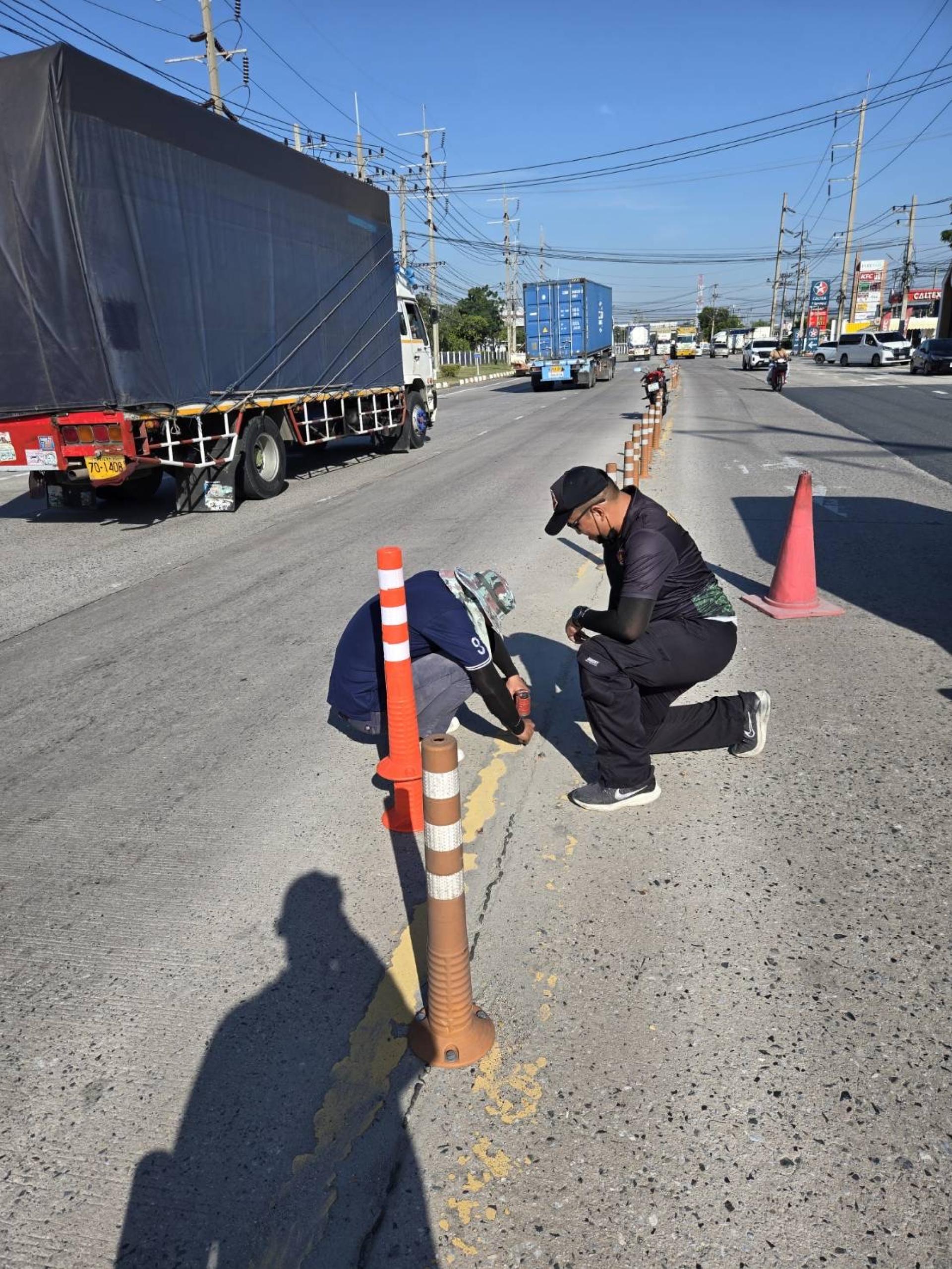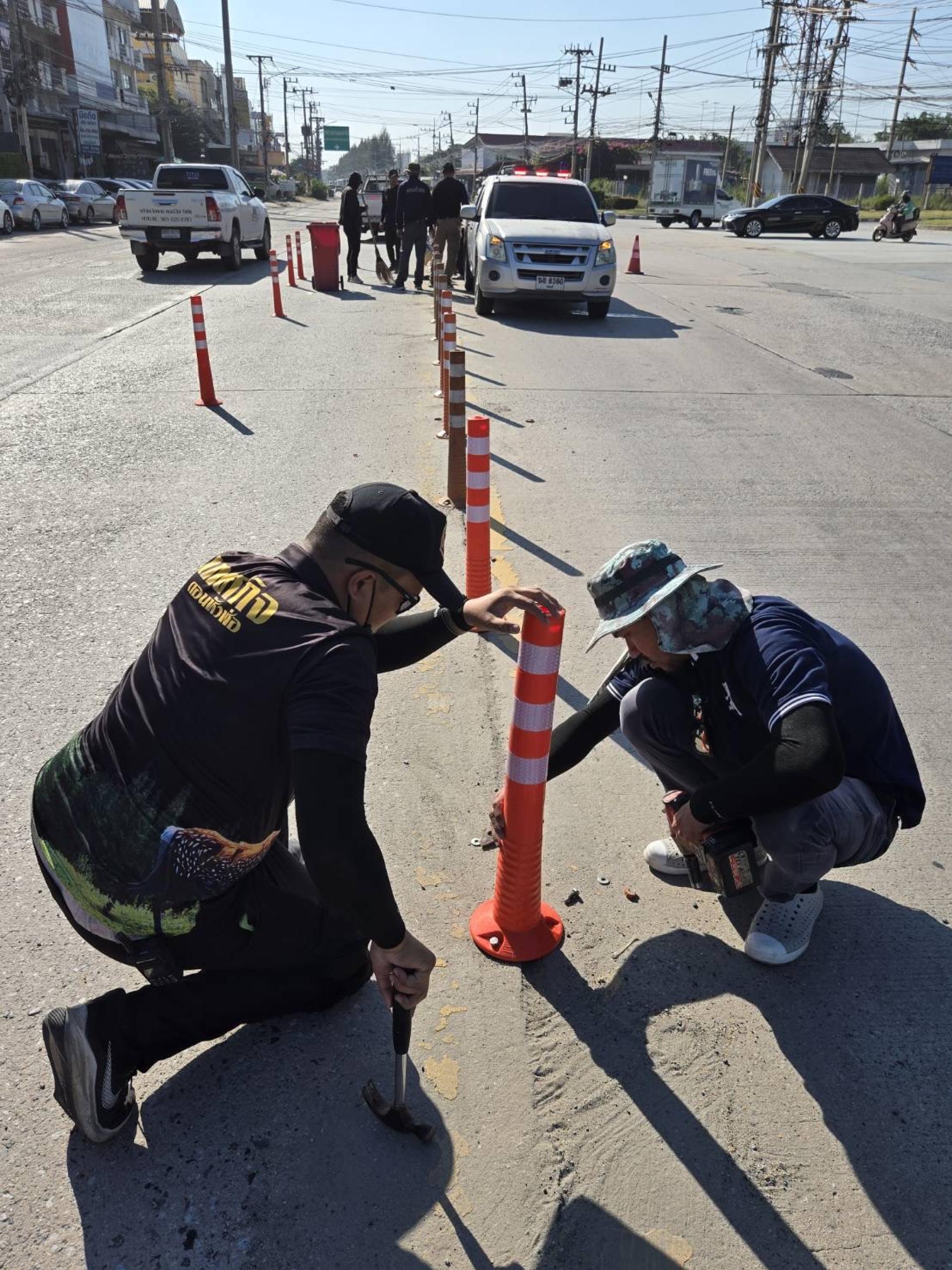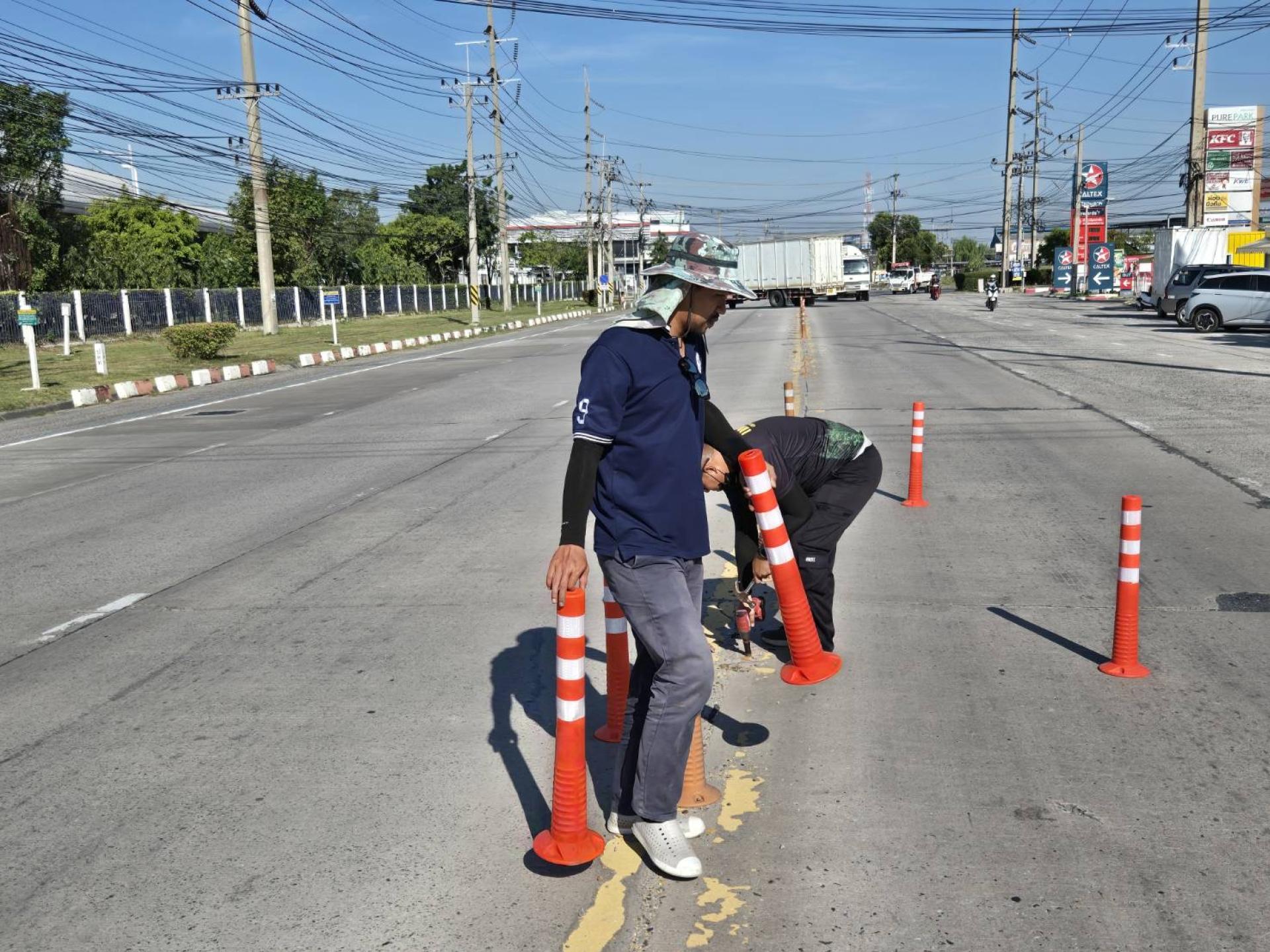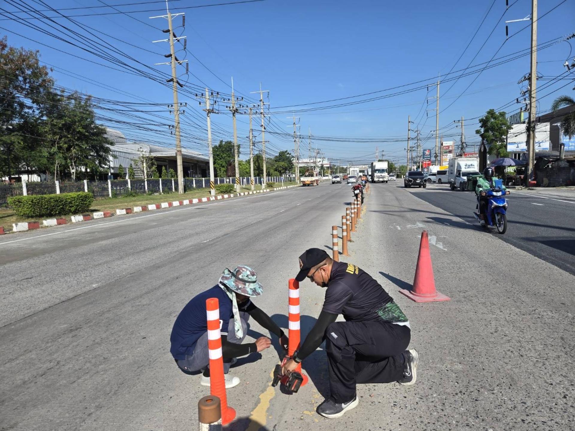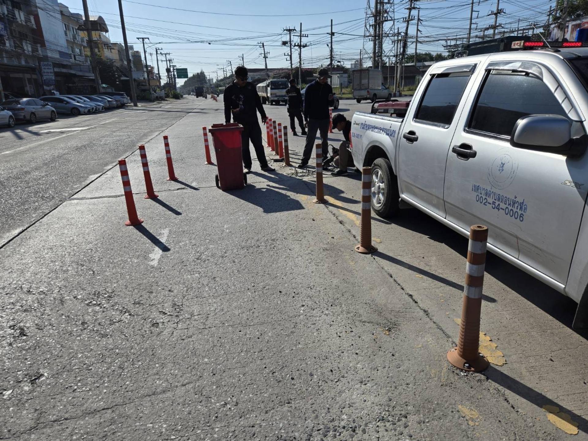 เทศบาลเมืองดอนหัวฬ่อ โดยฝ่ายป้องกันและรักษาความสงบ (งานเทศกิจ) ได้ดำเนินการลงพื้นที่ตรวจสอบและติดตั้งเสาล้มลุกจราจรทดแทนวัสดุเดิมที่ชำรุดเสียหาย เพื่อความเป็นระเบียบเรียบร้อยและเพิ่มประสิทธิภาพในการสัญจร ทั้งนี้ เพื่อเป็นการเตรียมความพร้อมในการอำนวยความสะดวกและป้องกันการเกิดอุบัติเหตุบนท้องถนน ให้แก่ประชาชนและผู้ใช้รถใช้ถนนในช่วงเทศกาลปีใหม่