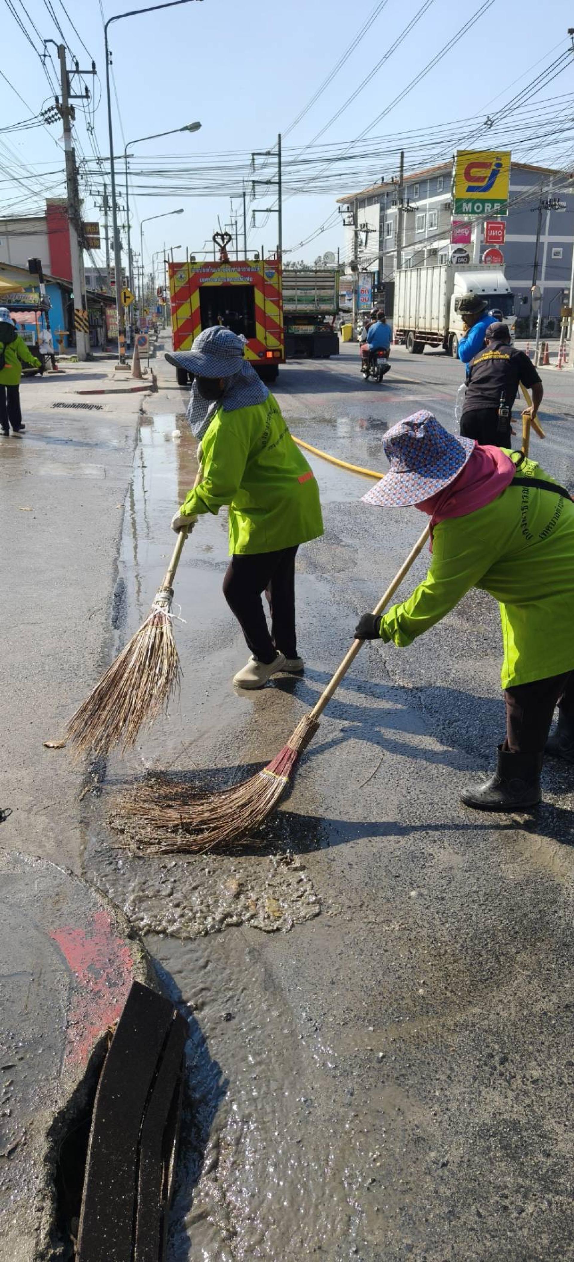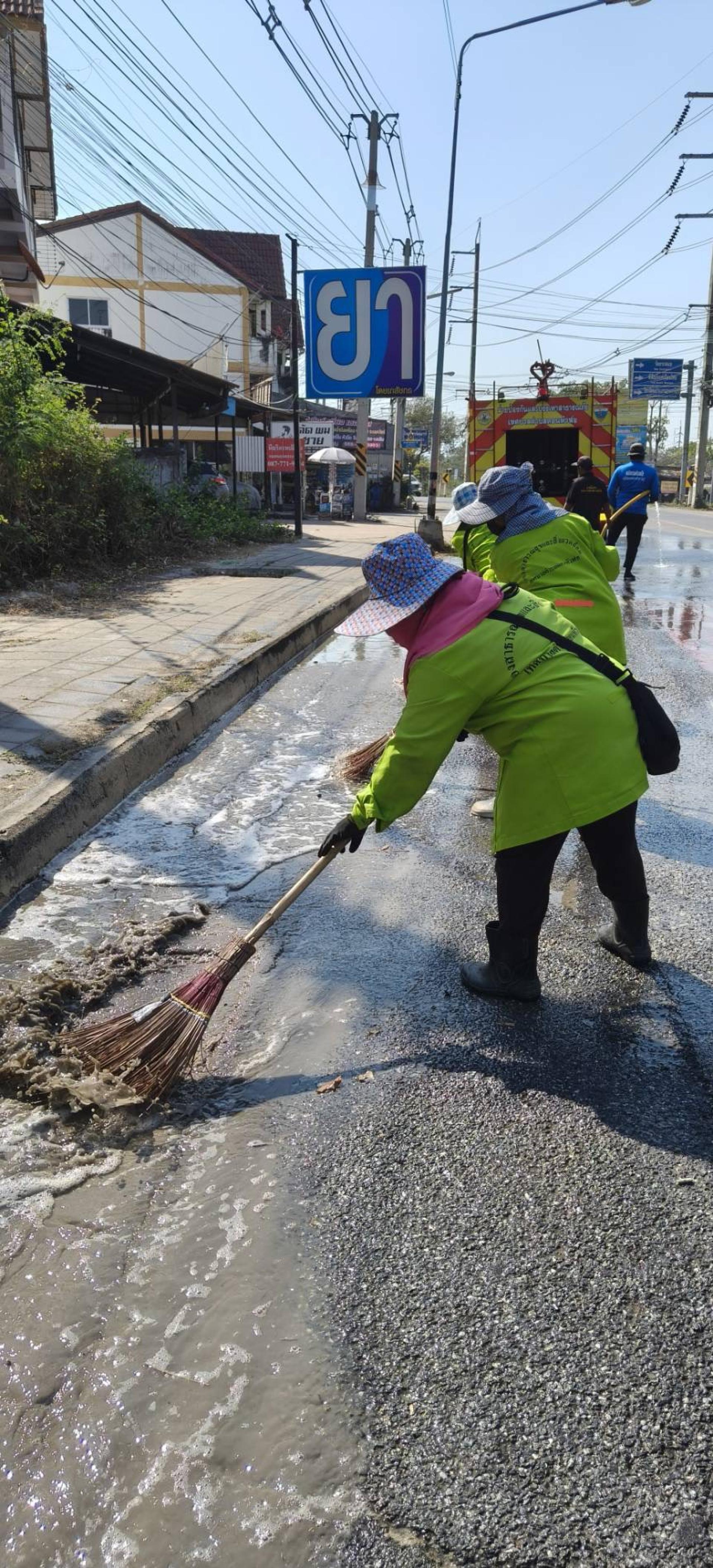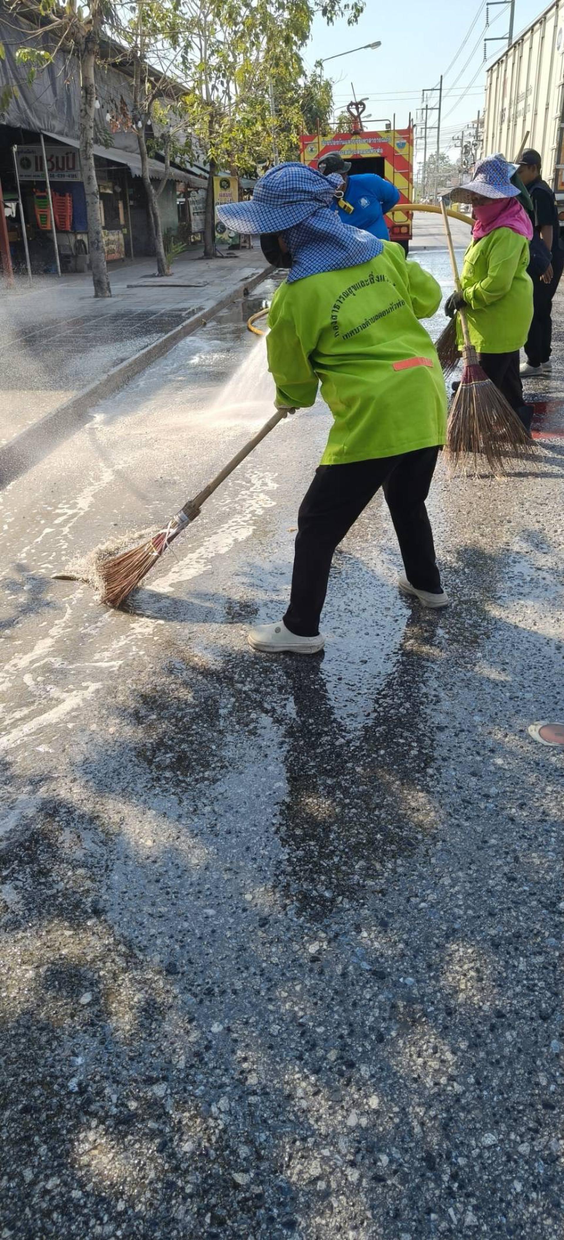 ดำเนินการล้างถนนเพื่อลดปริมาณฝุ่นละอองขนาดเล็ก (PM 2.5)