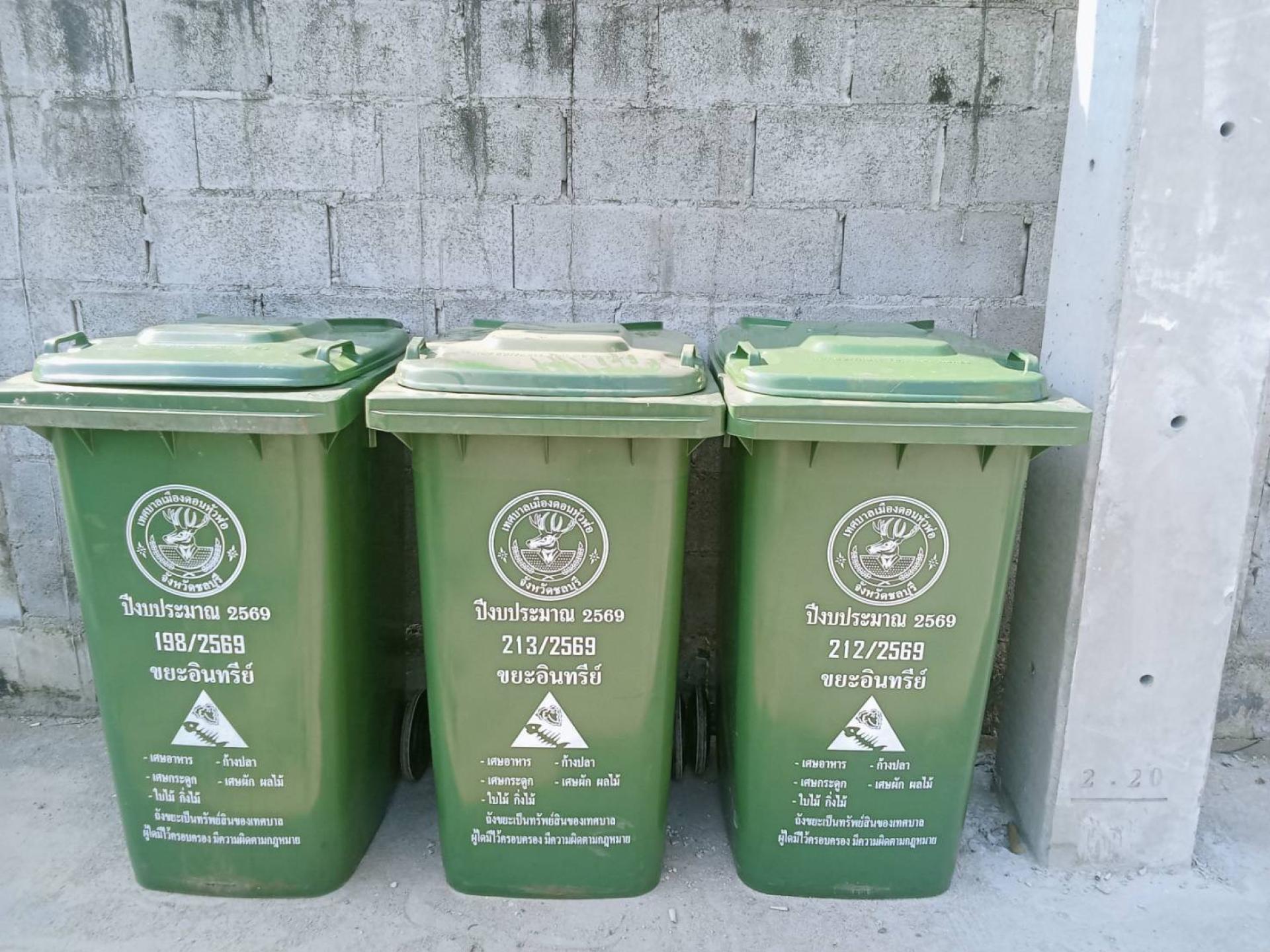 ดำเนินการส่งถังขยะให้กับประชาชนในเขตพื้นที่ตำบลดอนหัวฬ่อ ณ จุดวางถังขยะบริเวณถนนบ้านเก่า-หนองตำลึง หน้าซอยมาบสามเกลียว 14 หมู่ 7 จำนวน 3 ถัง, บริเวณถนนดอนหัวฬ่อ (ถ.บ้านเก่า 5) หมู่ 6 จำนวน 1ถัง และเก็บถังแตก ชำรุด 1ถัง