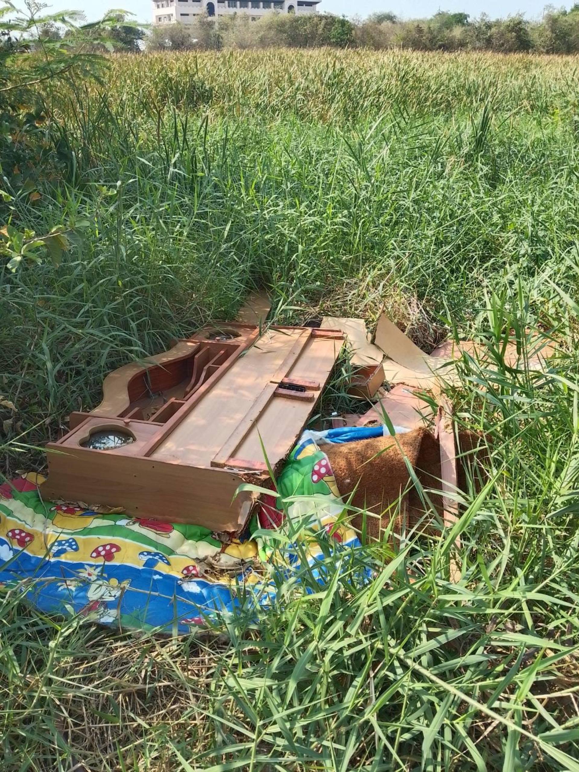 กองสาธารณสุขและสิ่งแวดล้อม ฝ่ายจัดการมูลฝอยและสิ่งปฏิกูล ดำเนินการเก็บขยะชิ้นใหญ่ที่มีการลักลอบมาทิ้ง เพื่อความสะอาดและความเป็นระเบียบเรียบร้อย บริเวณป่าหญ้าริมถนนหนองไผ่กลางดอน 11 (ซอยหนองไผ่กลางดอน - มาบสามเกลียว) หมู่ 2, ถนนมาบสามเกลียว 15 (ซอยเนินคุณหลวง) หมู่ 7