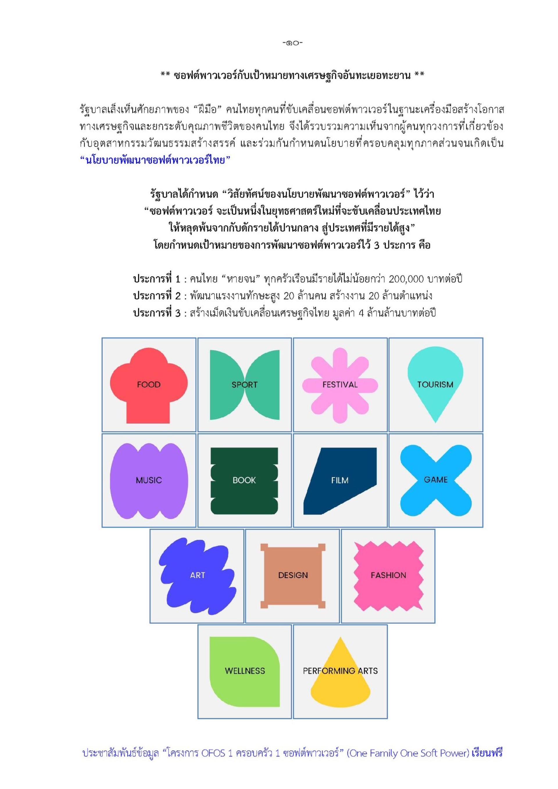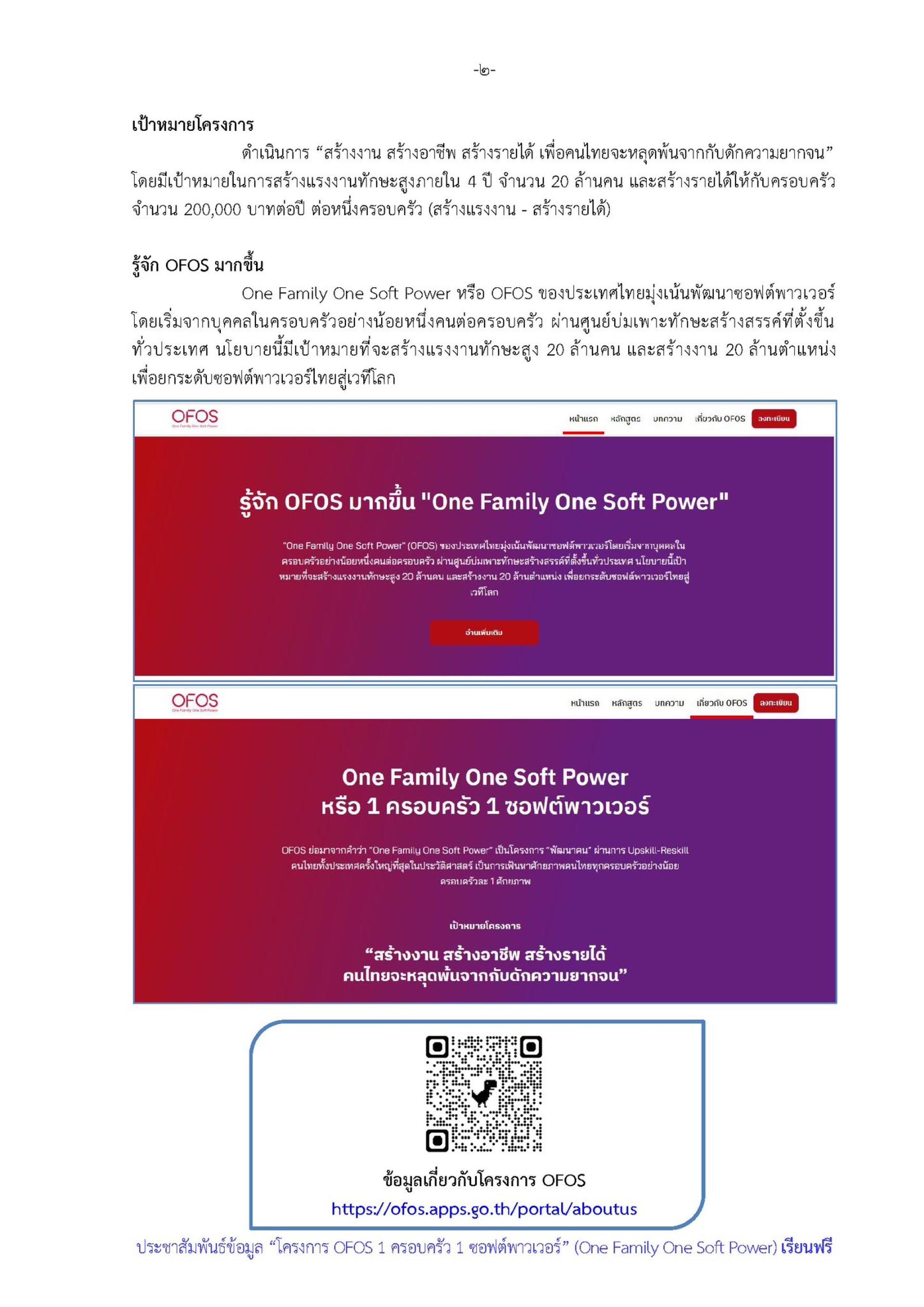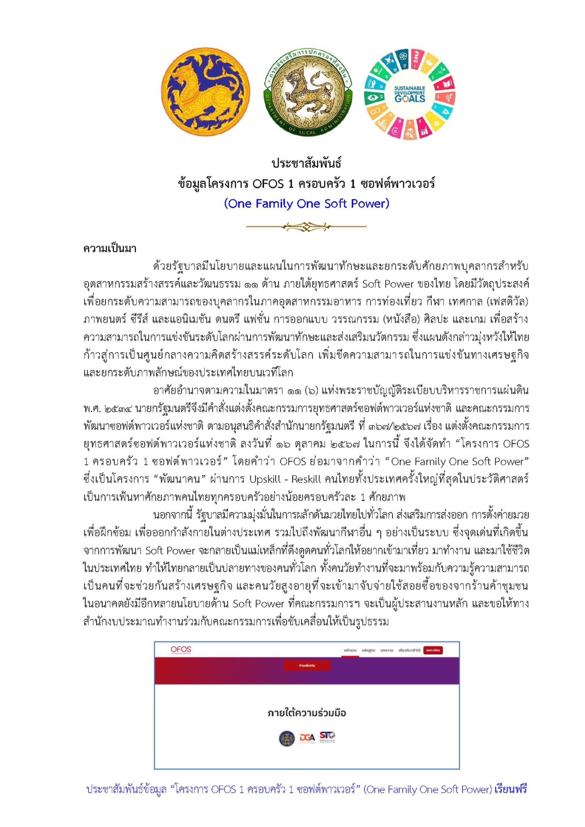ประชาสัมพันธ์โครงการจากรัฐบาล เพิ่มขีดความสามารถในการแข่งขันทางเศรษฐกิจ"โครงการ OFOS 1 ครอบครัว 1 ซอฟต์พาวเวอร์ (One Family One Soft Power)