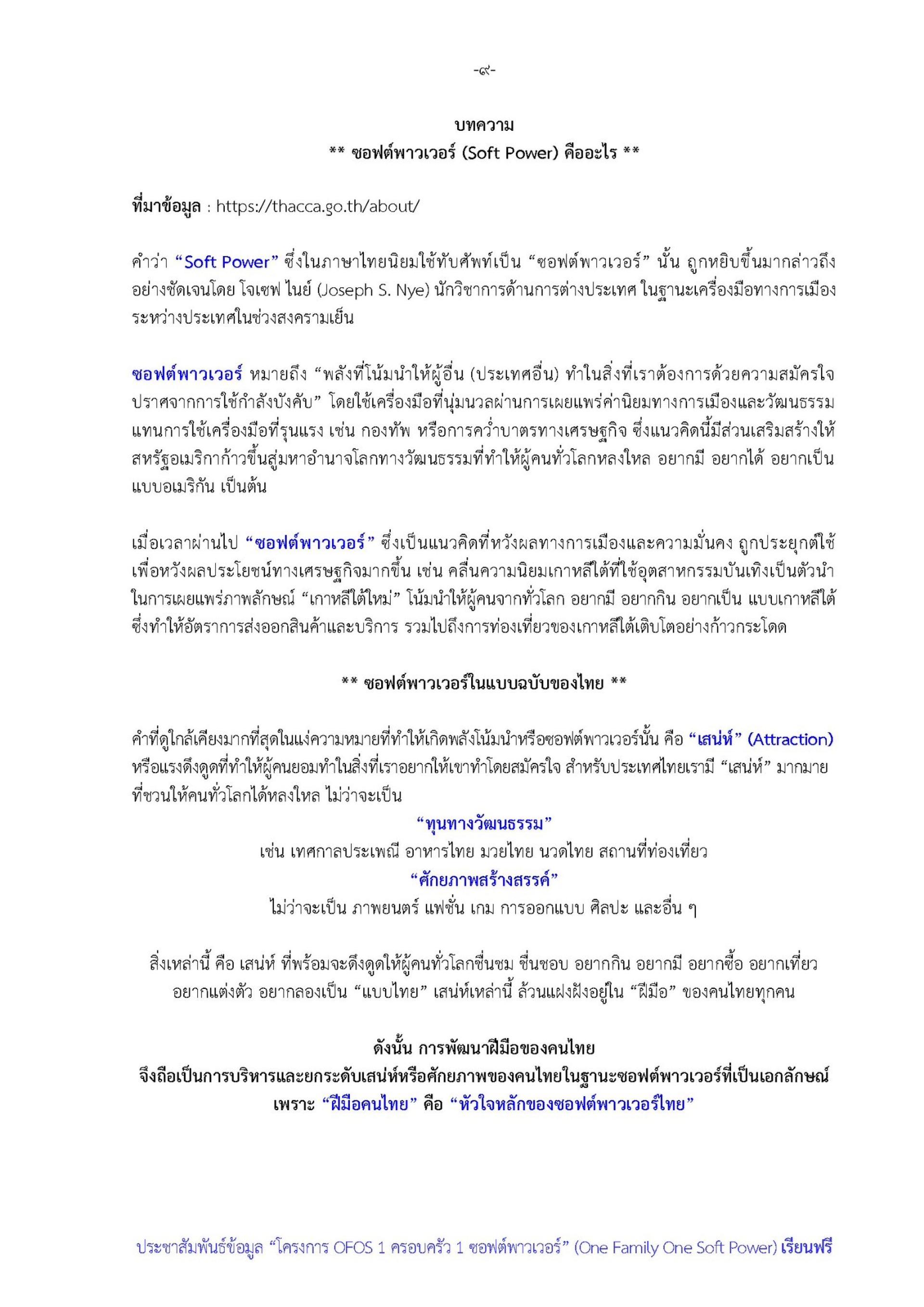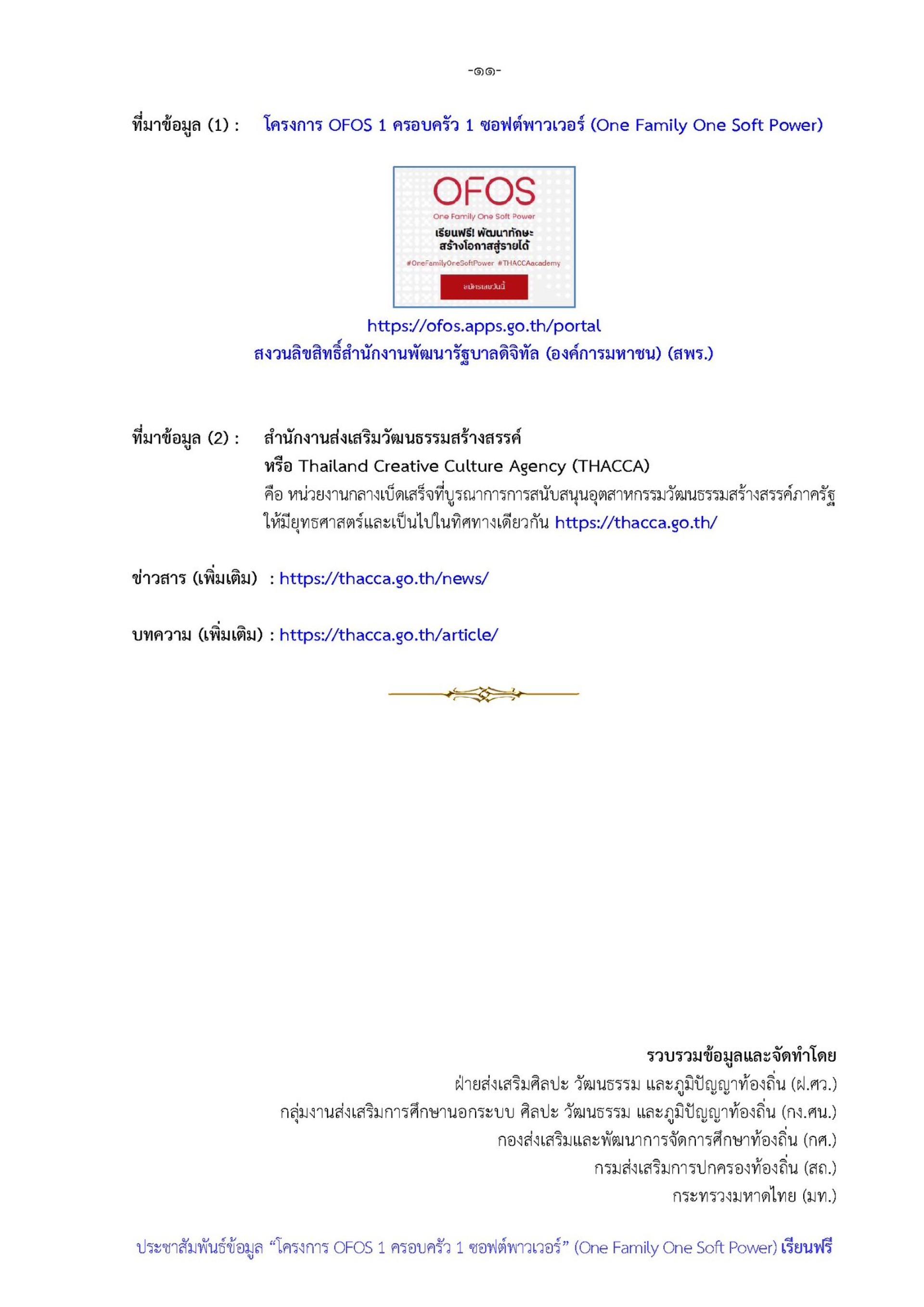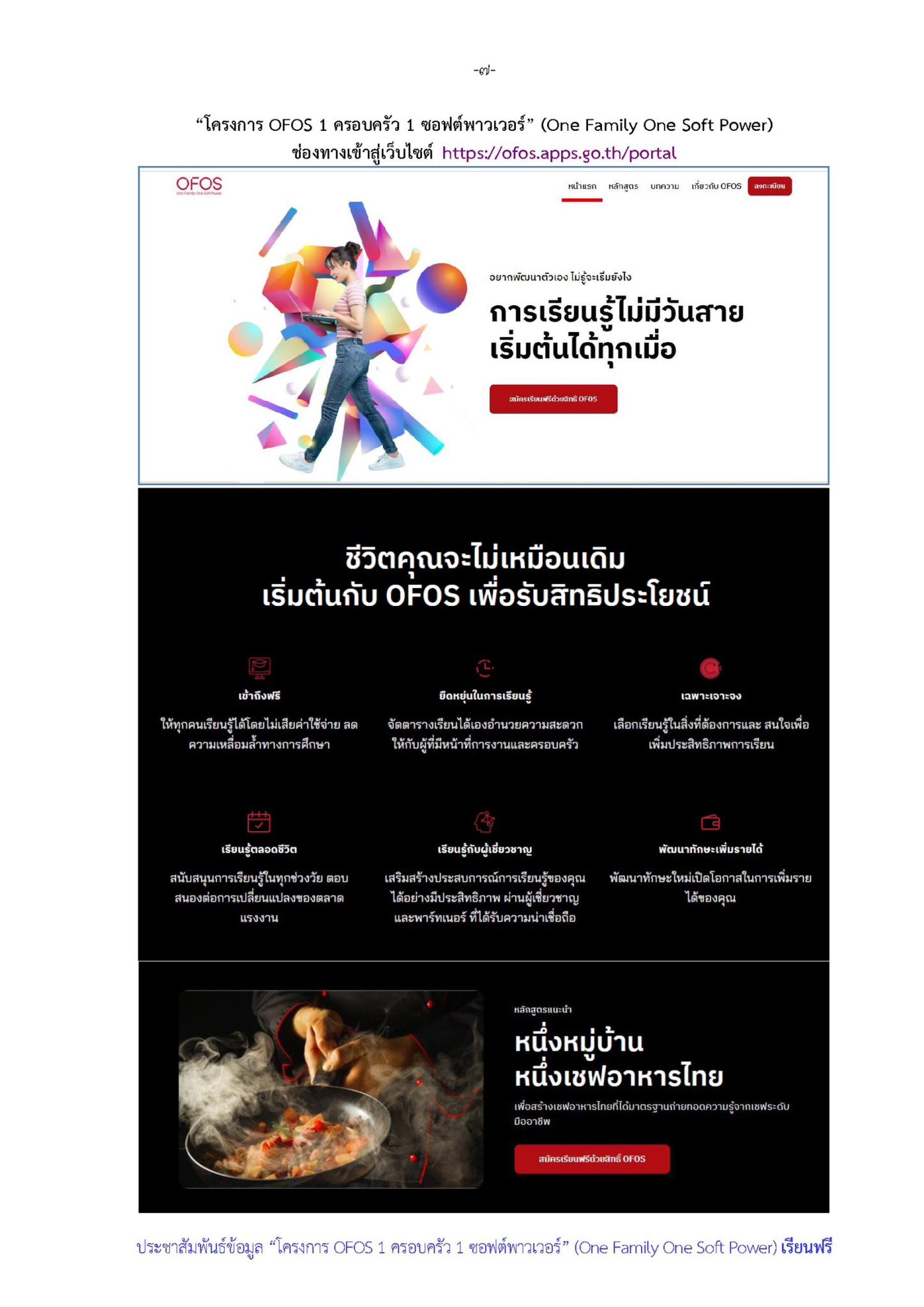 ประชาสัมพันธ์โครงการจากรัฐบาล เพิ่มขีดความสามารถในการแข่งขันทางเศรษฐกิจ"โครงการ OFOS 1 ครอบครัว 1 ซอฟต์พาวเวอร์ (One Family One Soft Power)