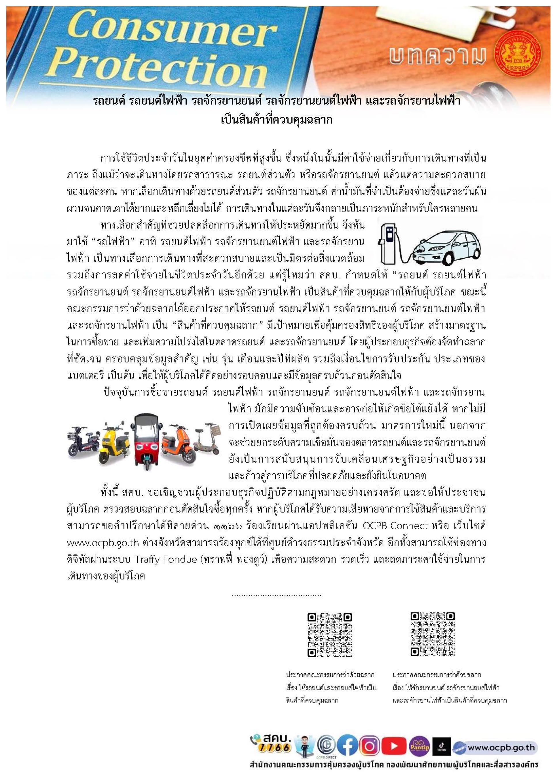 สำนักงานคณะกรรมการคุ้มครองผู้บริโภค (สคบ.) ประชาสัมพันธ์ข่าวสารจำนวน 5 เรื่องสำคัญ ดังนี้