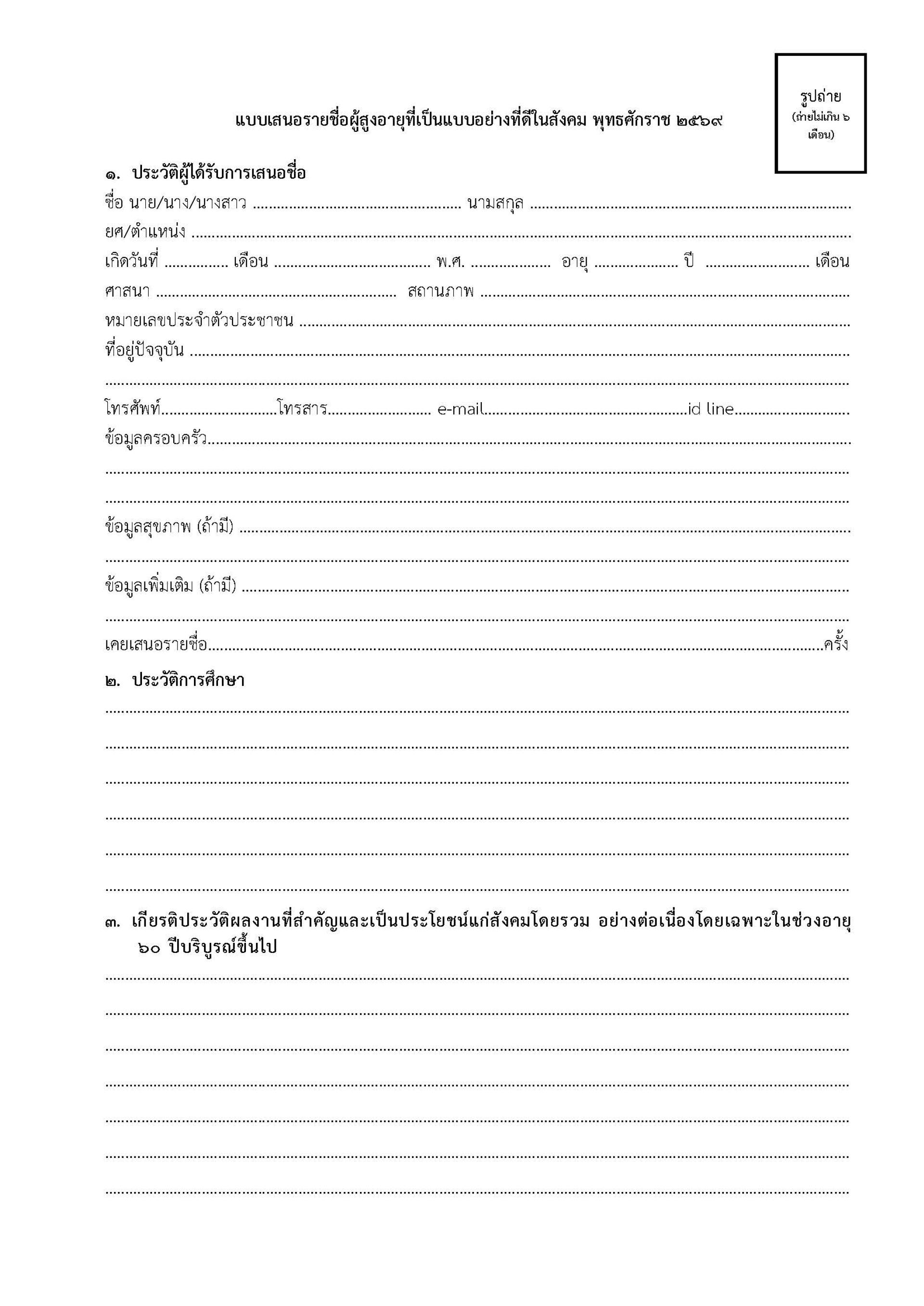 ประชาสัมพันธ์การสรรหาผู้สูงอายุที่เป็นแบบอย่างที่ดีในสังคม ประจำปีพุทธศักราช 2569 คณะอนุกรรมการสรรหาผู้สูงอายุที่เป็นแบบอย่างที่ดีในสังคม ในคณะกรรมการผู้สูงอายุแห่งชาติ (กผส.)