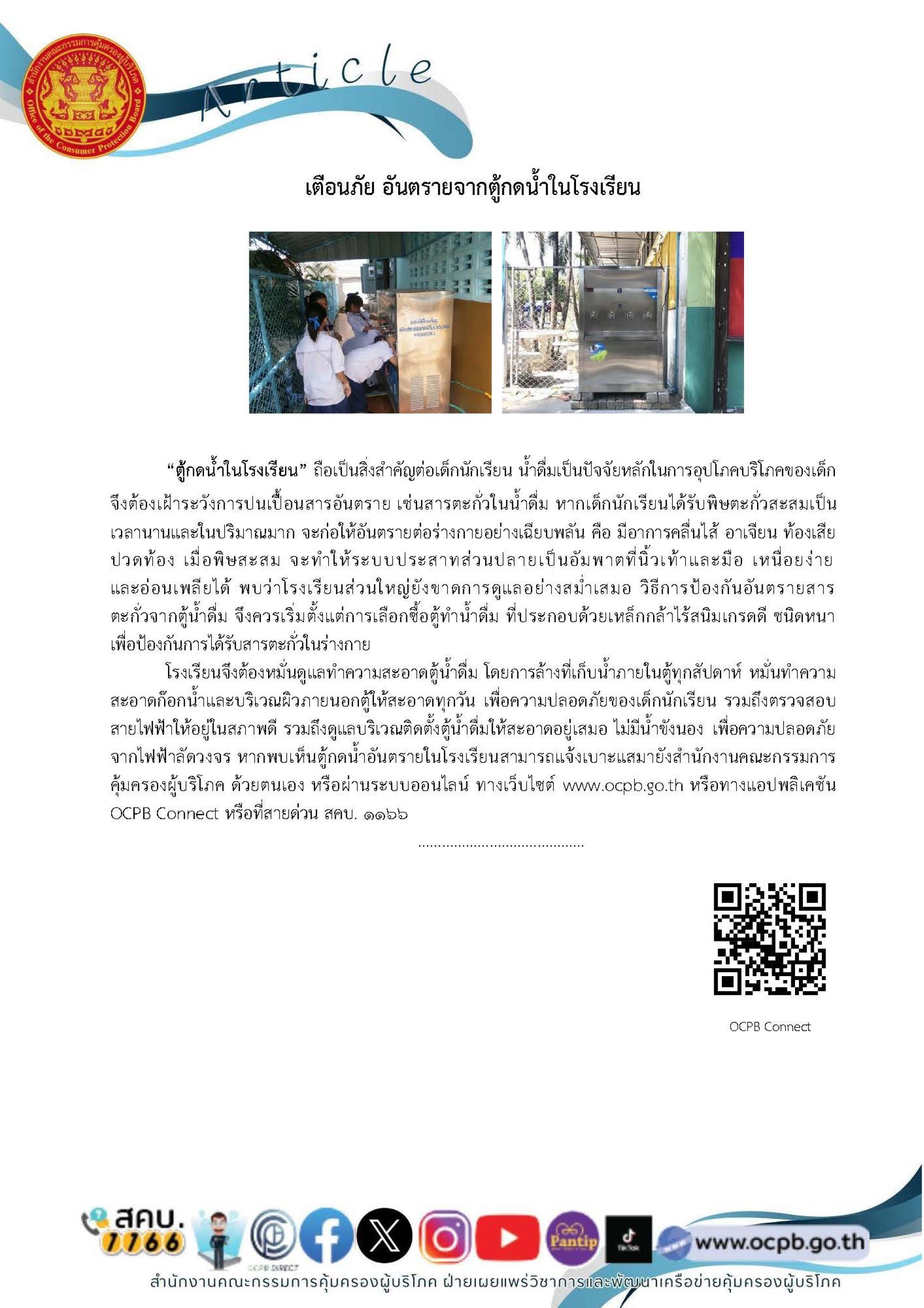 สำนักงานคณะอนุกรรมการคุ้มครองผู้บริโภคประจำจังหวัดชลบุรี ได้รับข้อมูลข่าวสารด้านการคุ้มครองผู้บริโภคจากสำนักงานคณะกรรมการคุ้มครองผู้บริโภค จำนวน 7 เรื่อง แบ่งเป็นบทความ 4 เรื่อง และอินโฟกราฟิก 3 เรื่อง อาทิ ภัยกลโกงออนไลน์ อันตรายจากตู้กดน้ำในโรงเรียน และสารบอแรกซ์ซึ่งเป็นสินค้าที่ควบคุมฉลาก เพื่อให้หน่วยงานนำไปใช้ประโยชน์และเผยแพร่ประชาสัมพันธ์แก่ประชาชนต่อไป