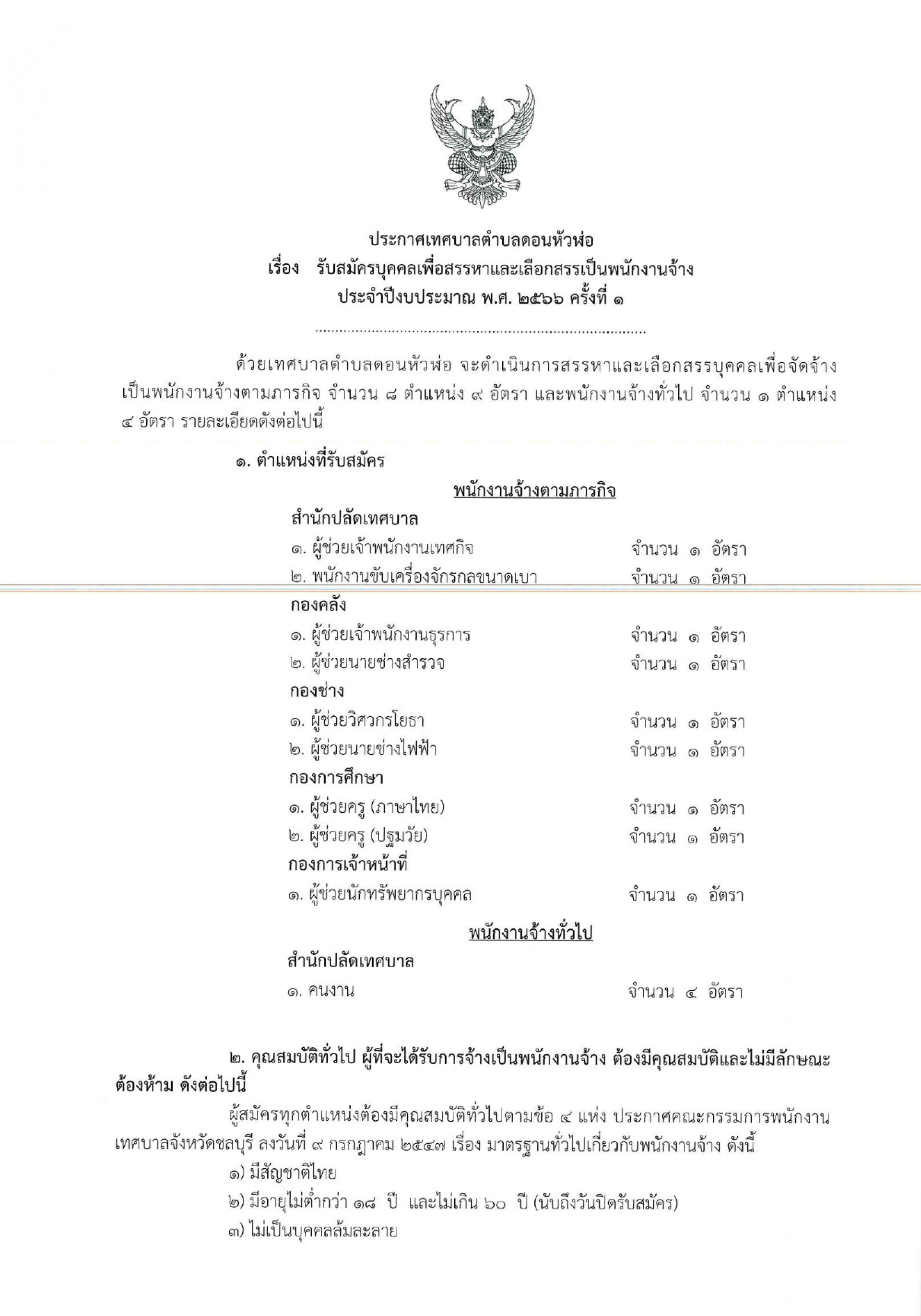 - พนักงานจ้างทั่วไป จำนวน 1 ตำแหน่ง 4 อัตรา