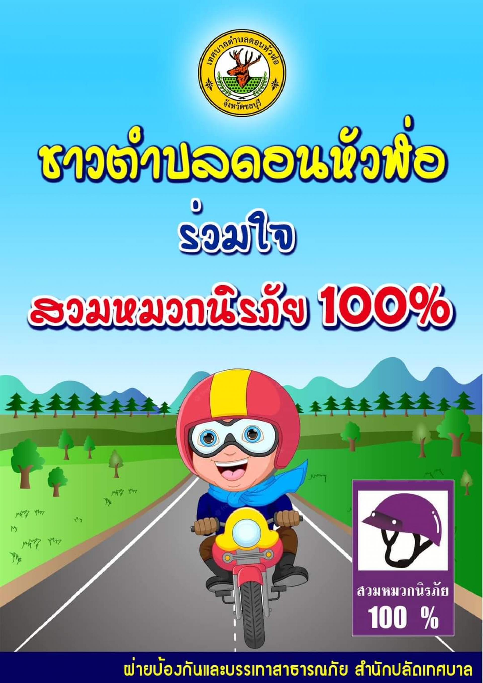 เขิญชวนพี่น้องชาวดอนหัวฬ่อ ร่วมใจสวมหมวกนิรภัย 100%