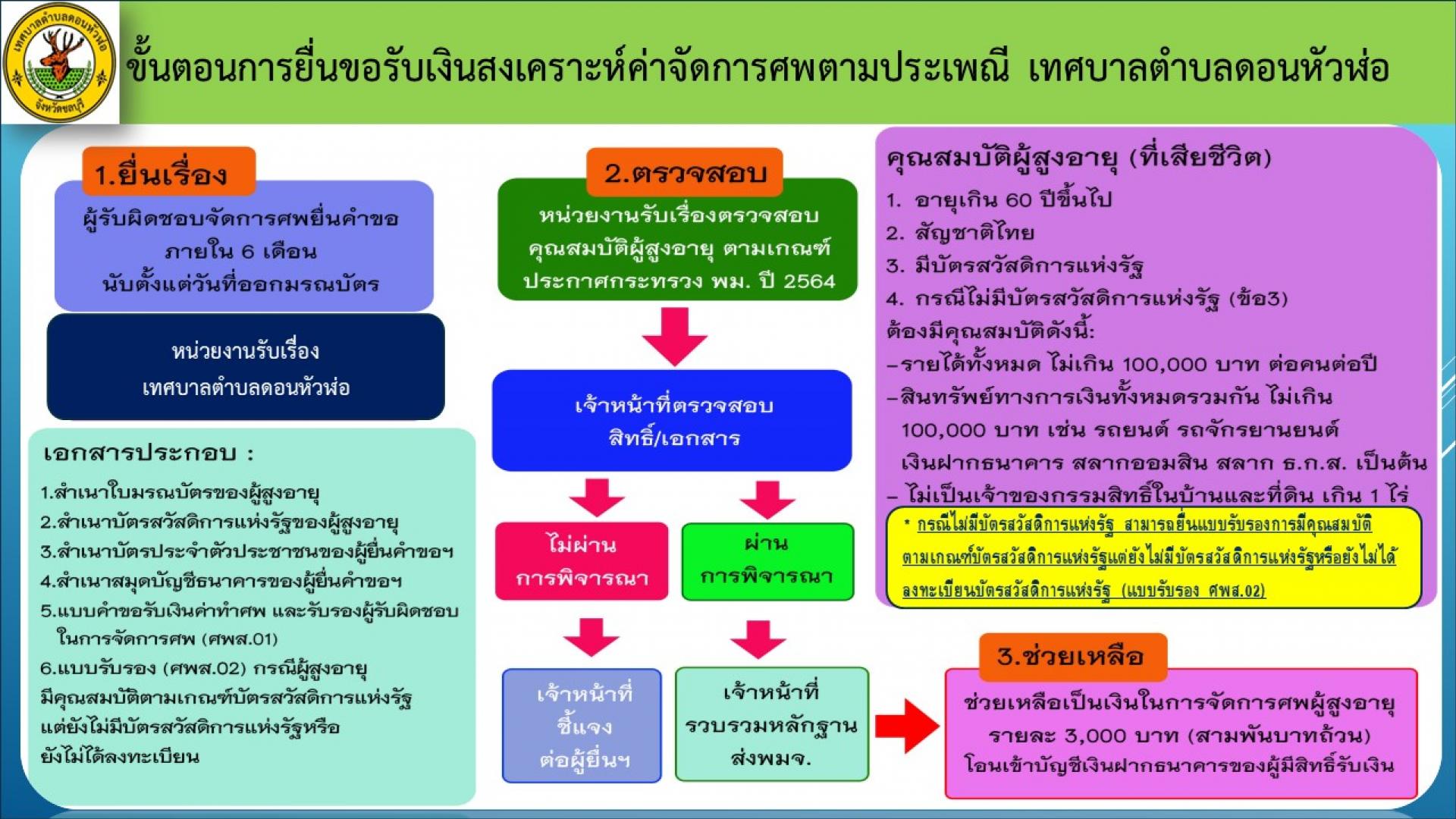 ประชาสัมพันธ์ ขั้นตอนการยื่นขอรับเงินสงเคราะห์ค่าจัดการศพตามประเพณี เทศบาลตำบลดอนหัวฬ่อ