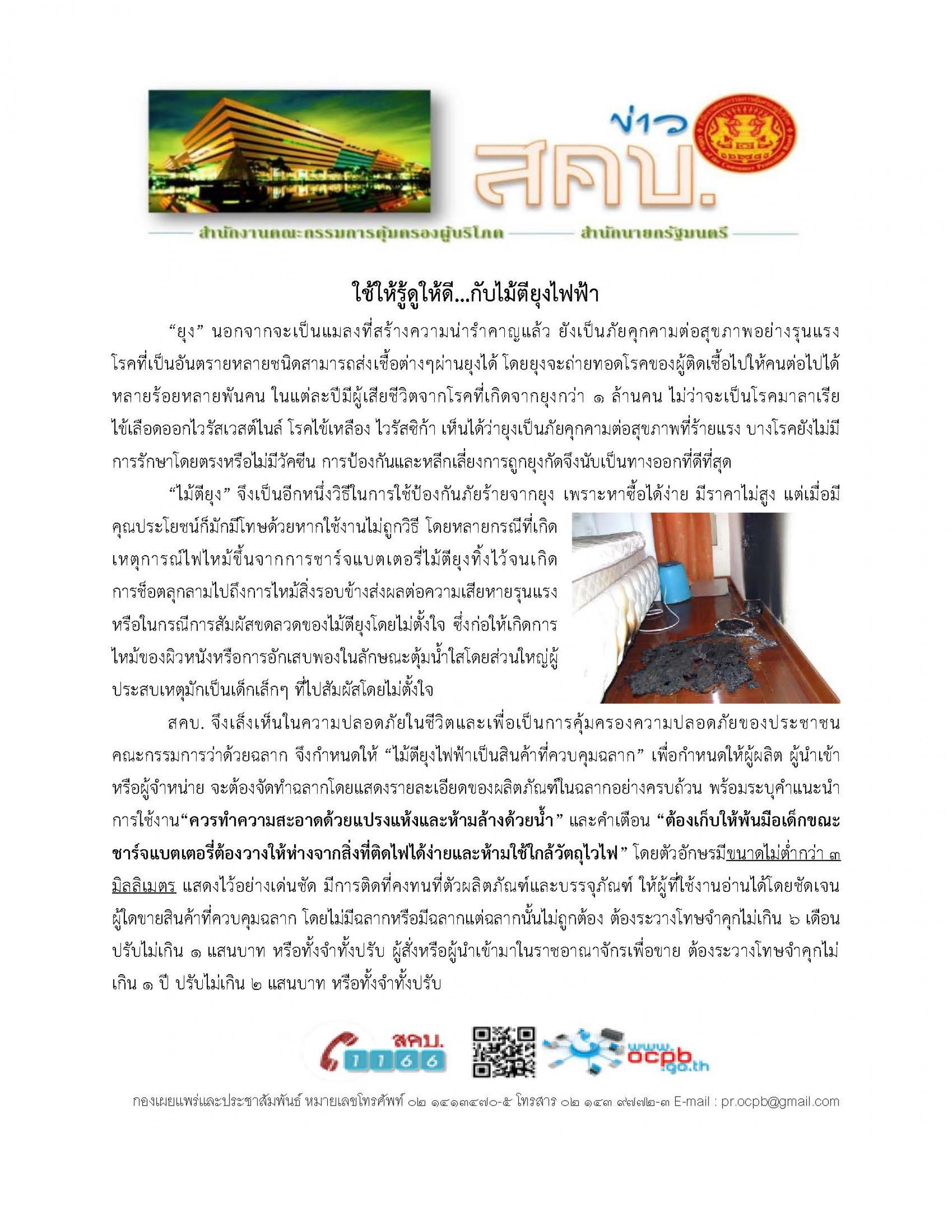 จึงขอประชาสัมพันธ์ข้อมูลข่าวสารด้านการคุ้มครองผู้บริโภค จำนวน 4 เรื่อง ดังนี้ (ตามไฟล์