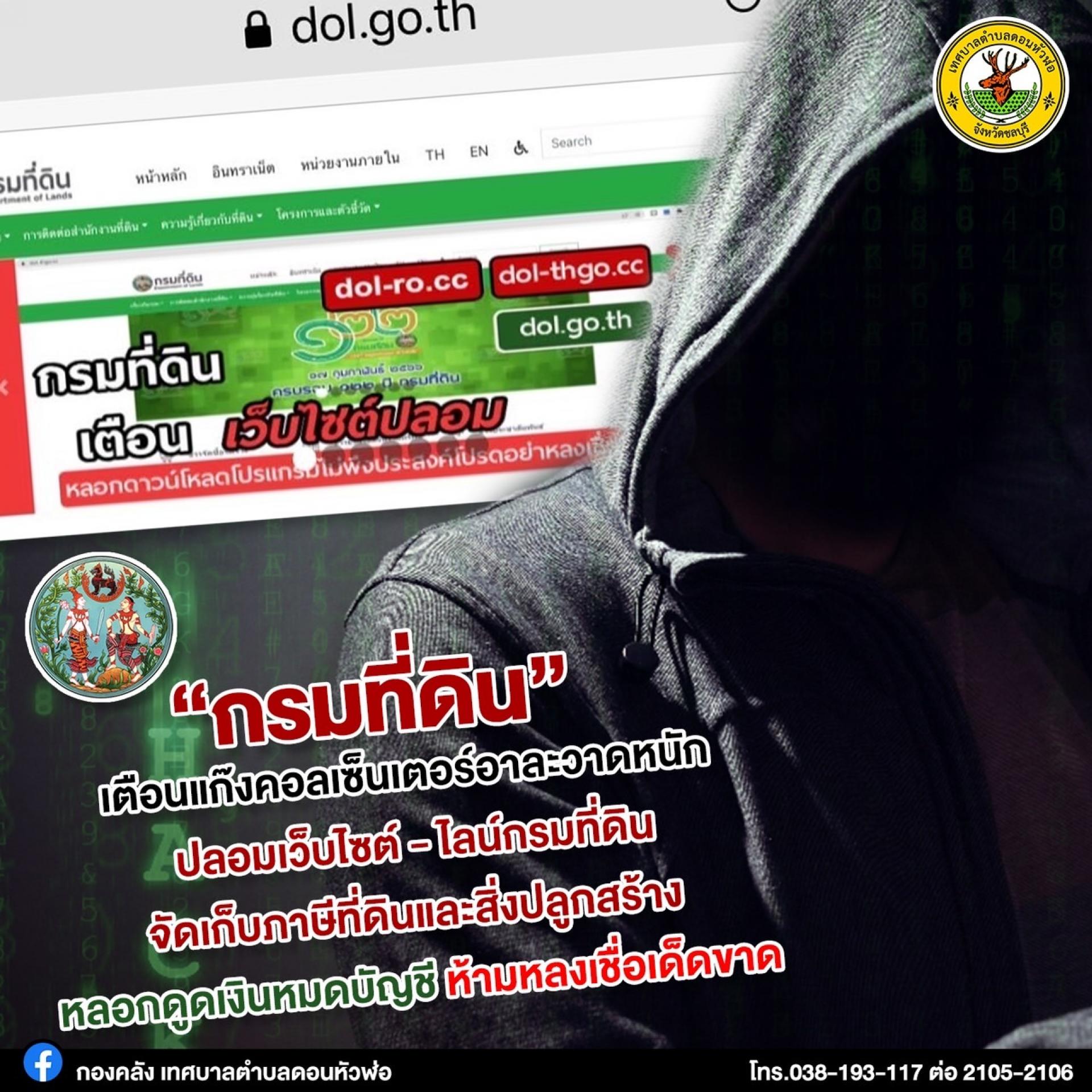 ขณะนี้มีแก๊งคอลเซ็นเตอร์แอบอ้างเป็นเจ้าหน้าที่กรมที่ดินสอบถามการเป็นเจ้าของอาคารชุดและการใช้ประโยชน์ของอาคารเพื่อปรับฐานข้อมูลของกรมที่ดิน อีกทั้งแอบอ้างจัดทำหนังสือราชการของกรมที่ดินเพื่อสำรวจฐานข้อมูลผู้เสียภาษีที่ดินและสิ่งปลูกสร้างและให้ชำระภาษี โดยให้ประชาชนติดตั้งแอปพลิเคชั่นปลอมเพื่อหลอกดูดเงิน