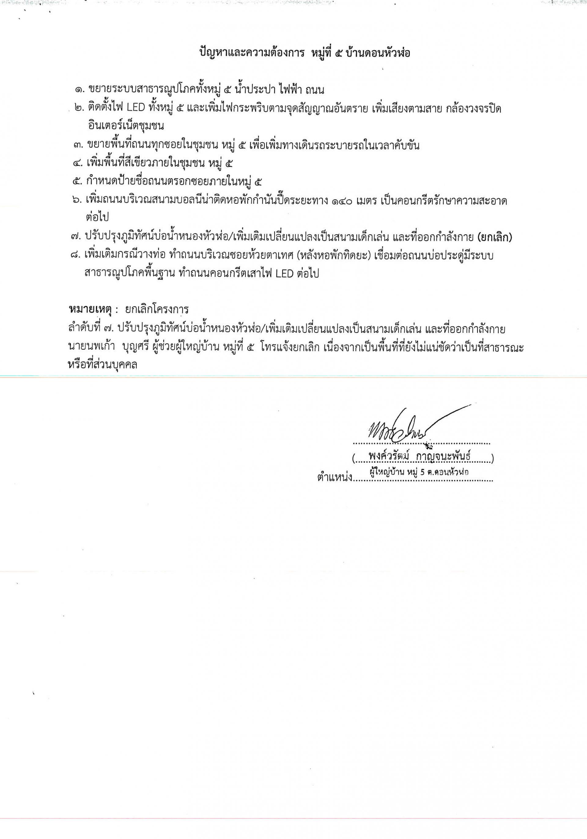 ทั้งนี้ เทศบาลตำบลดอนหัวฬ่อ ได้รวบรวมโครงการ/กิจกรรมจากความต้องการของประชาชน เชื่อมโยงกับแผนพัฒนาท้องถิ่น (พ.ศ.2566 – 2570) เทศบาลตำบลดอนหัวฬ่อ และใช้เป็นข้อมูลในการดำเนินการจัดทำ/ทบทวนและเพิ่มเติมแผนพัฒนาท้องถิ่นฯครั้งต่อไป เพื่อให้เกิดประสิทธิภาพในการพัฒนาและประชาชนได้ประโยชน์สูงสุด ตามนโยบายของคณะผู้บริหารเทศบาลตำบลดอนหัวฬ่อ